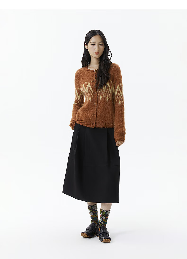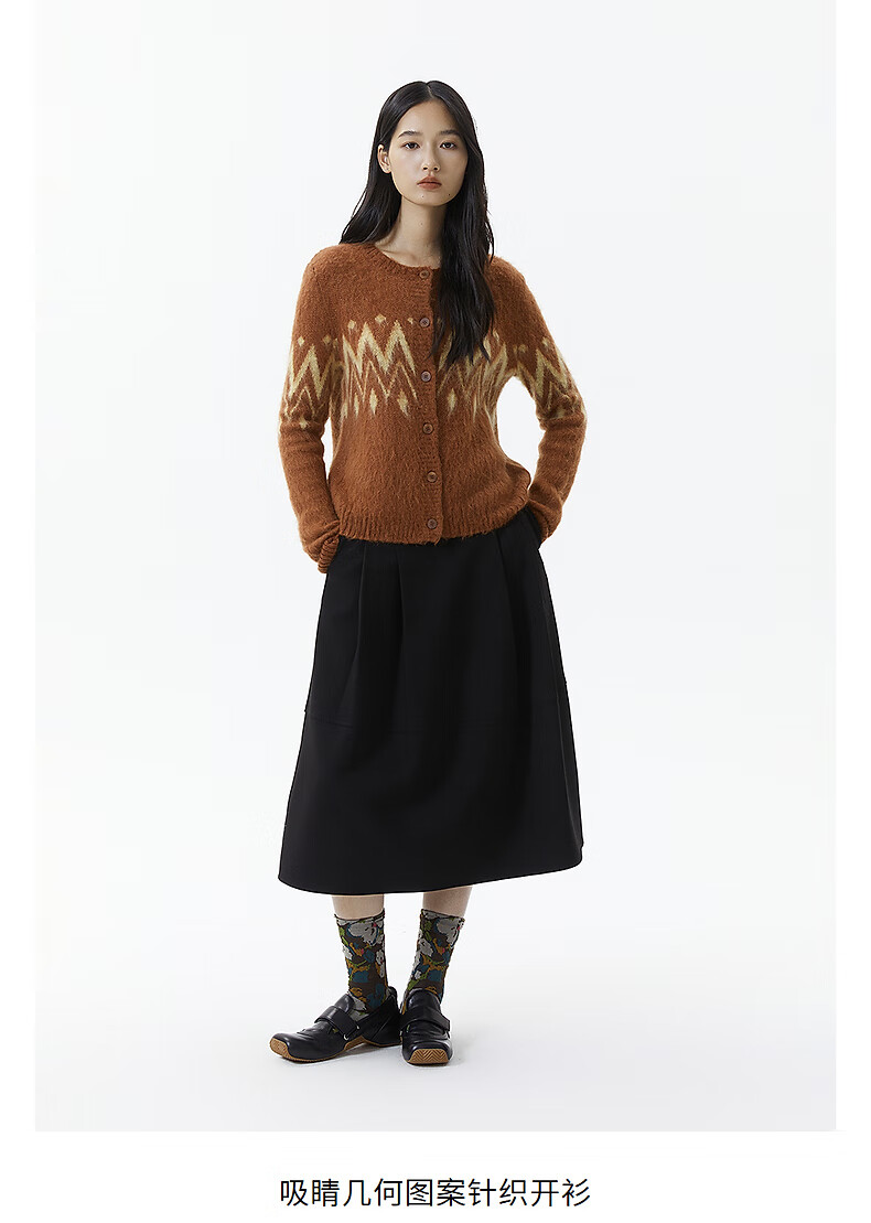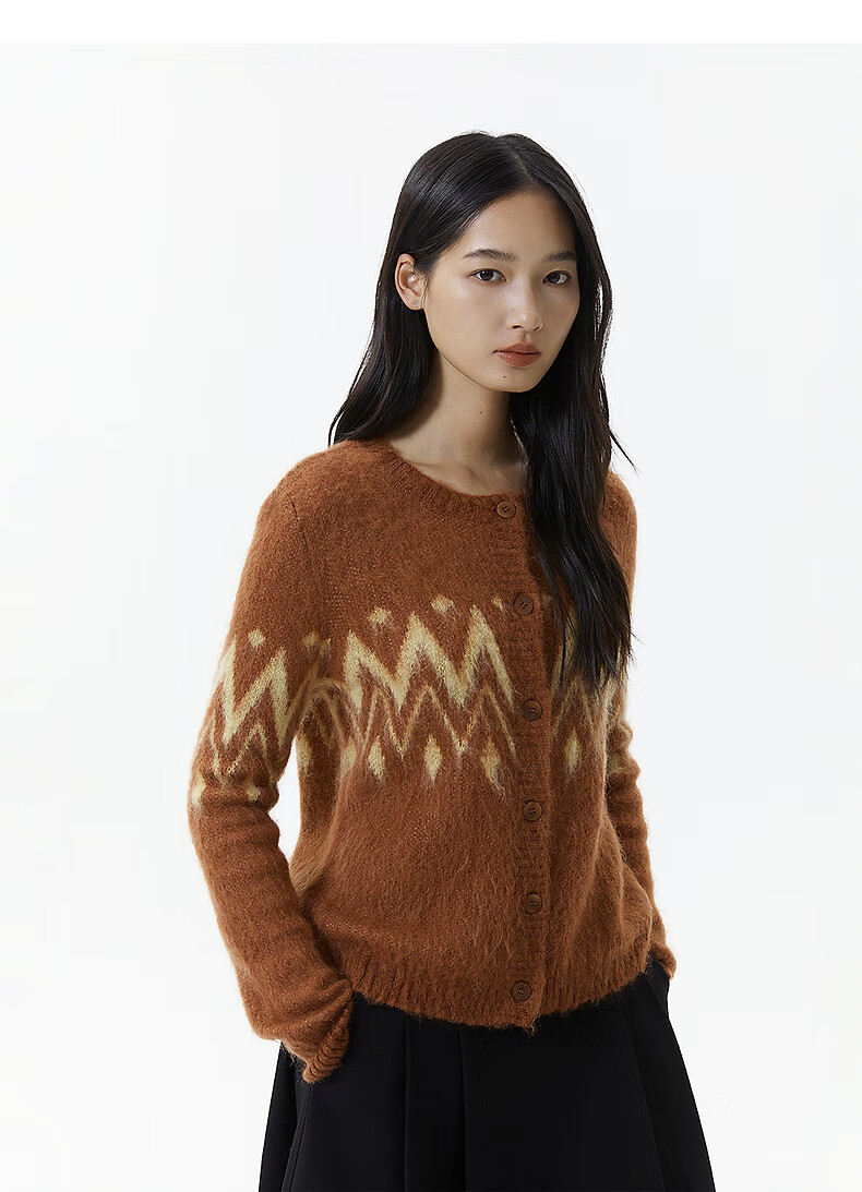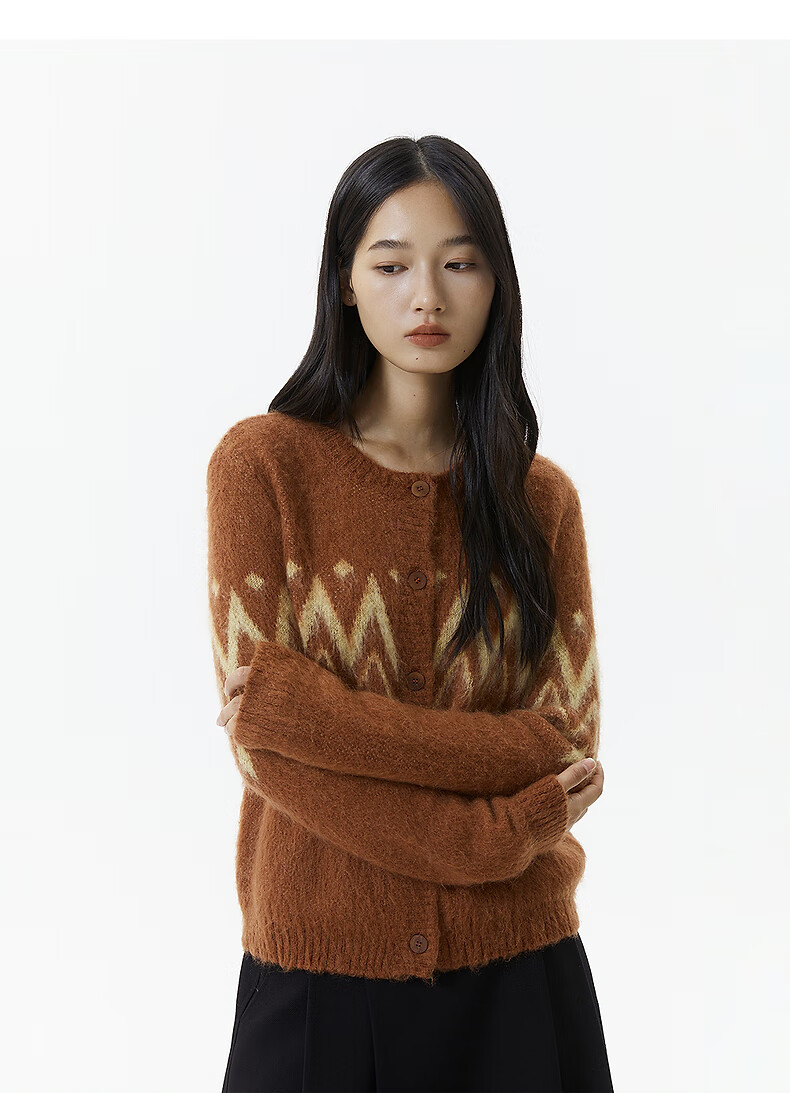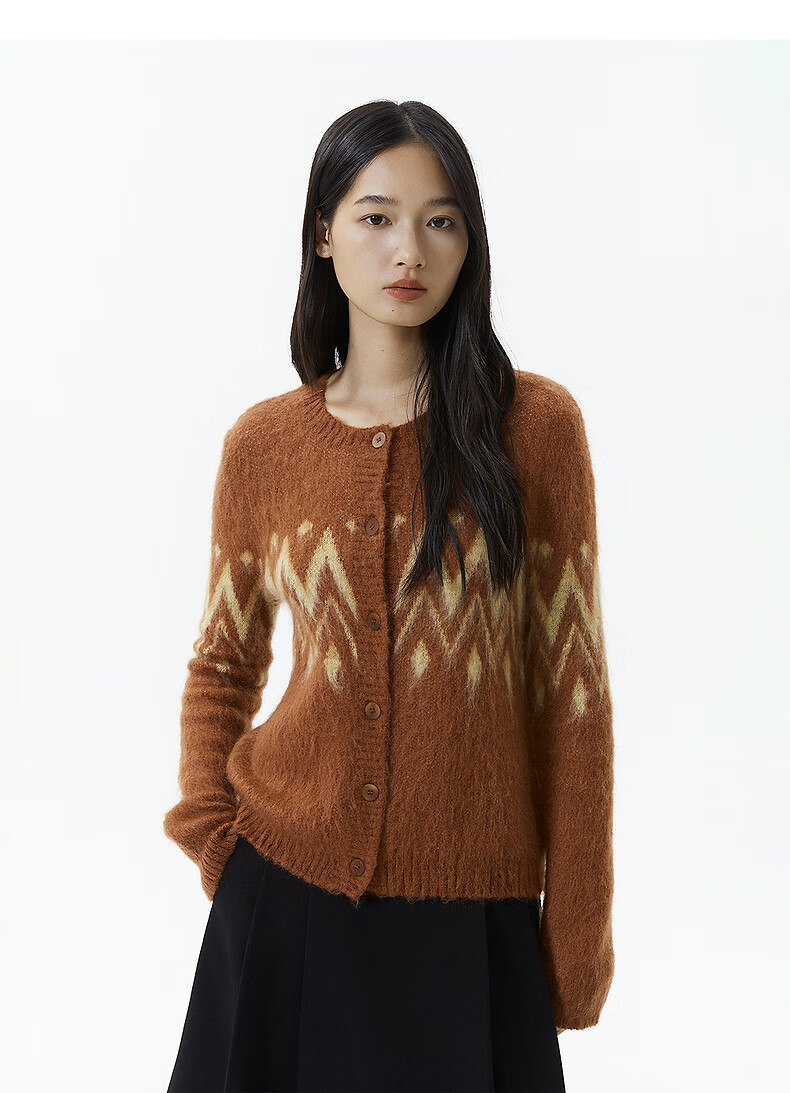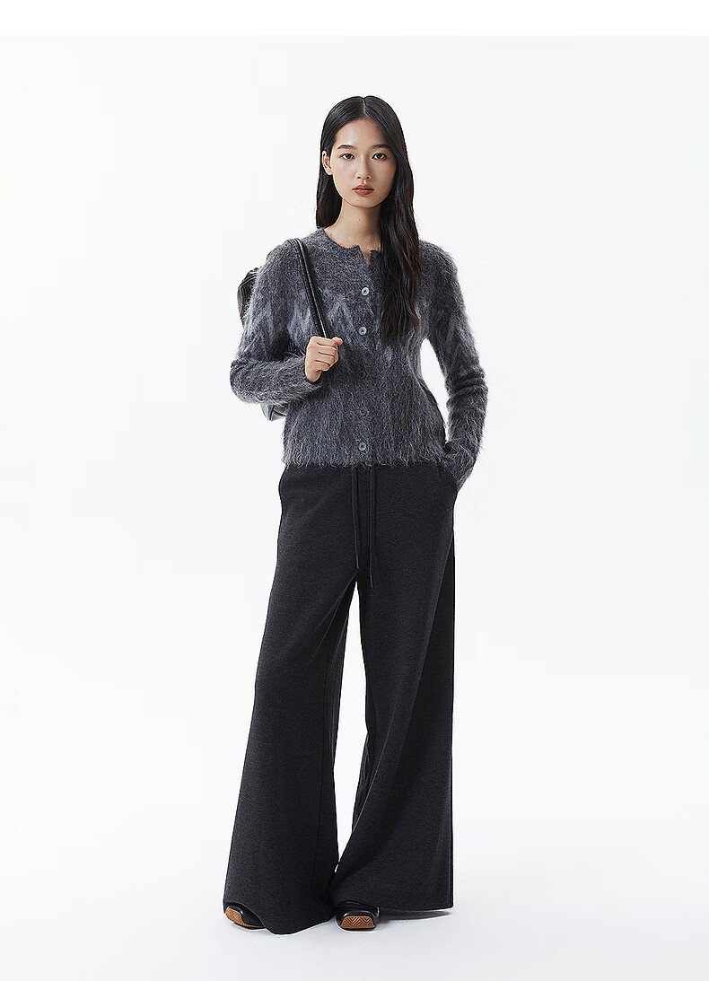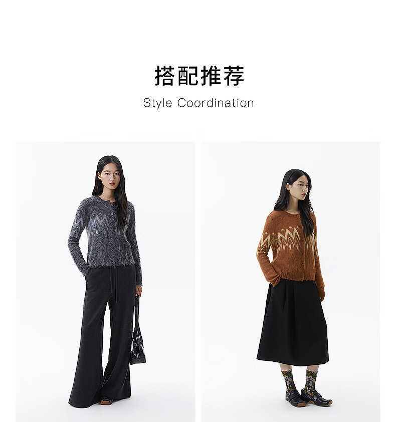 Broadcast casual loose front shoulder jacquard knitted cardigan for women 25 winter new style temperament sweater jacket DDS4UD5147 G20 frost gray L