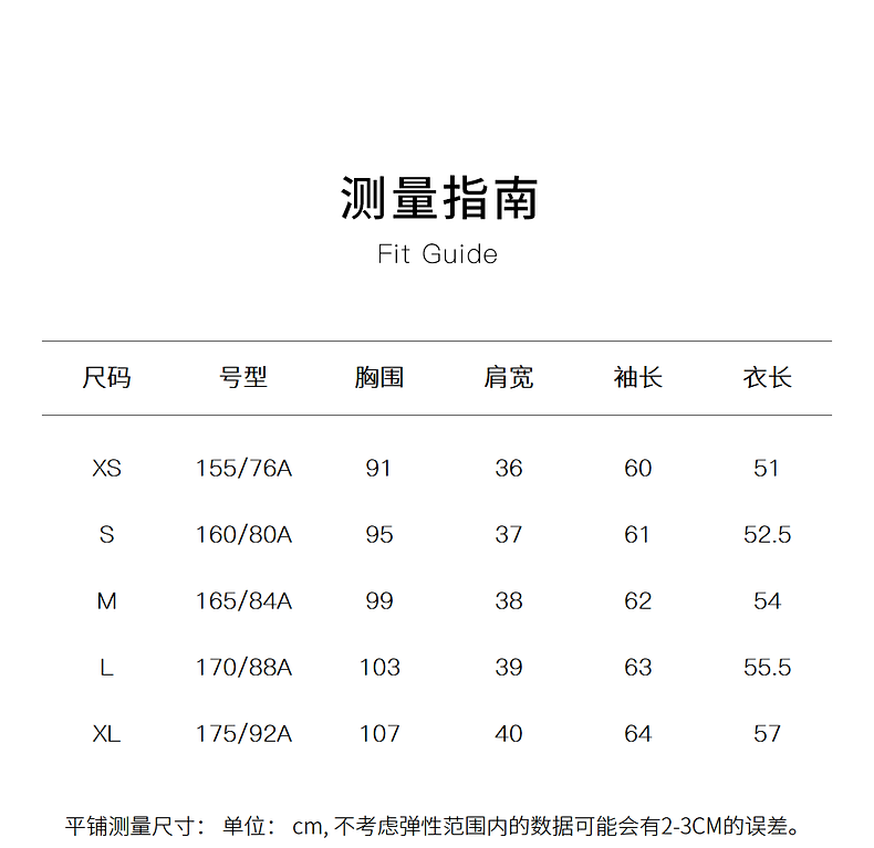 China (cm) 160-165/84-86 165-170 / 88-90 167-172 / 92-96 168-173 / 98-102 170-176 / 106-110