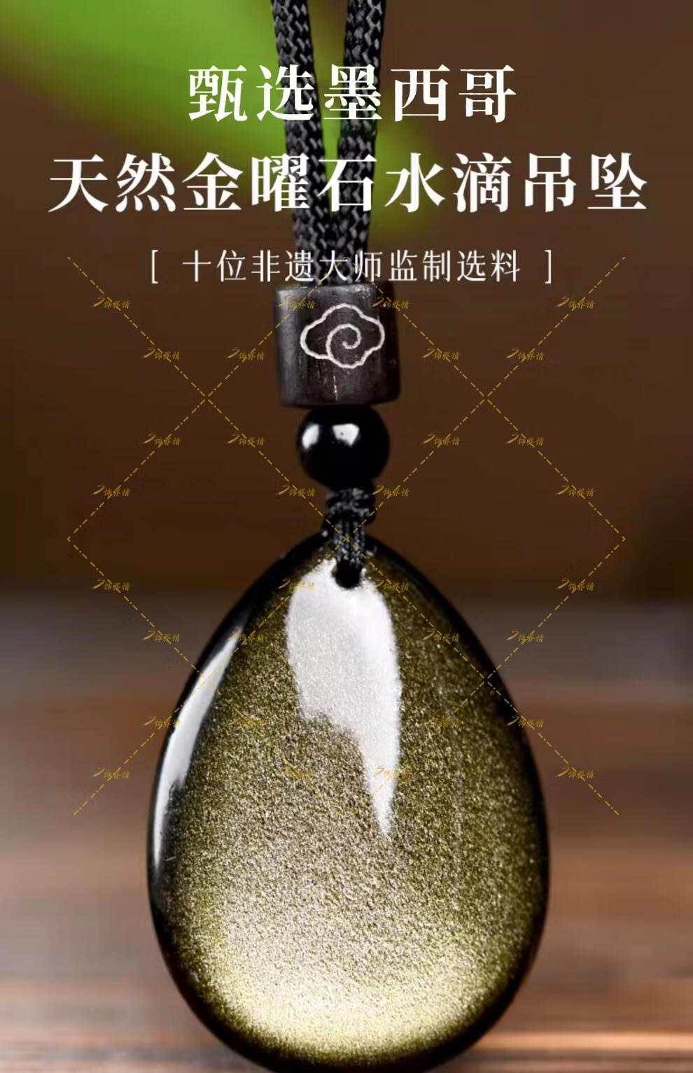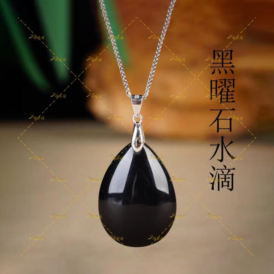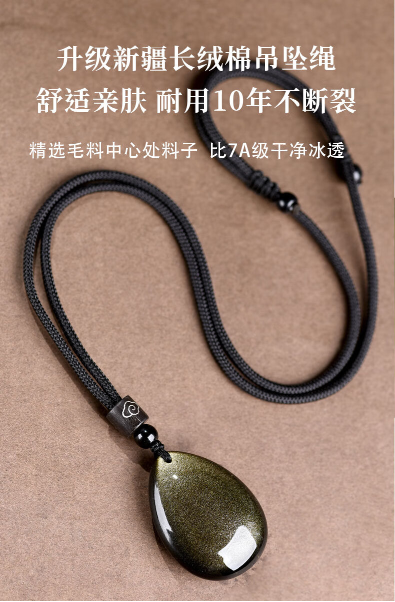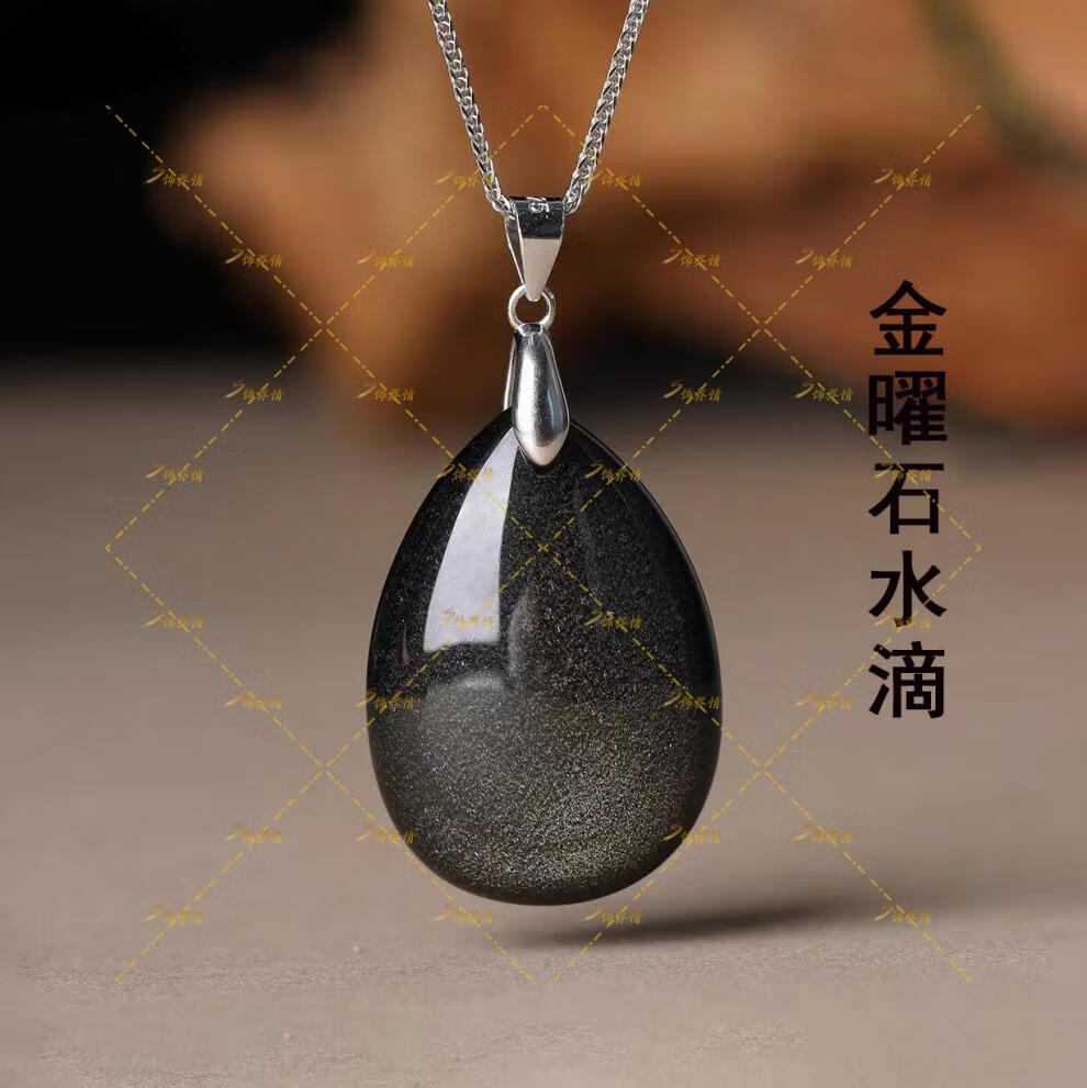 Decoration Collection Grade Natural Black Crystal Obsidian Water Drop Pendant Gold Obsidian Necklace for Men and Women as Birthday Gifts Silver Chain Gold Obsidian Collection Grade Approximately 9-12g