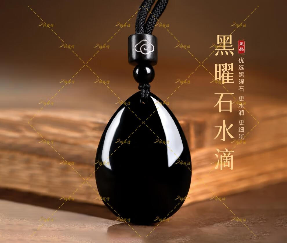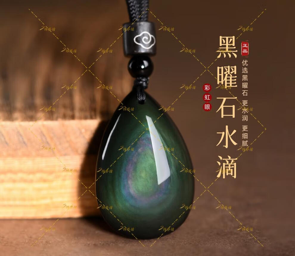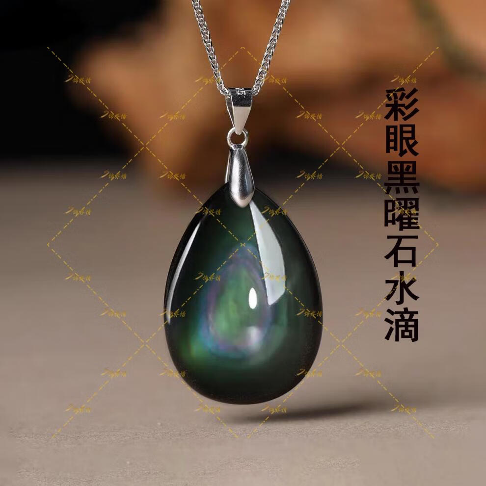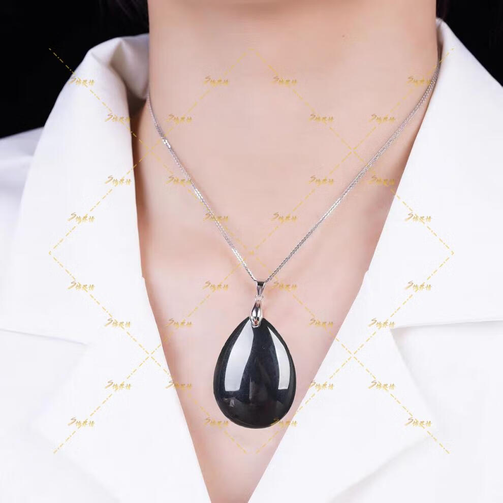 Decoration Collection Grade Natural Black Crystal Obsidian Water Drop Pendant Gold Obsidian Necklace for Men and Women as Birthday Gifts Silver Chain Gold Obsidian Collection Grade Approximately 9-12g