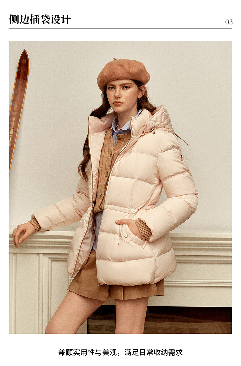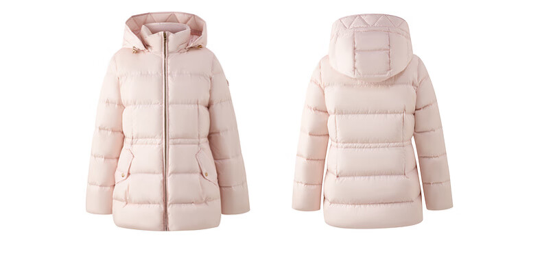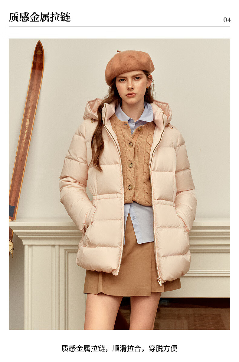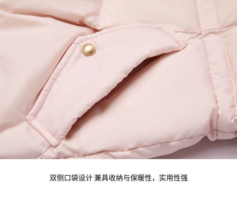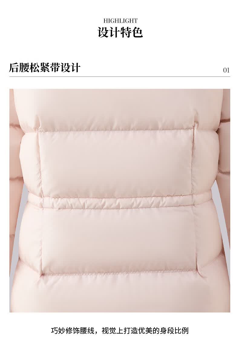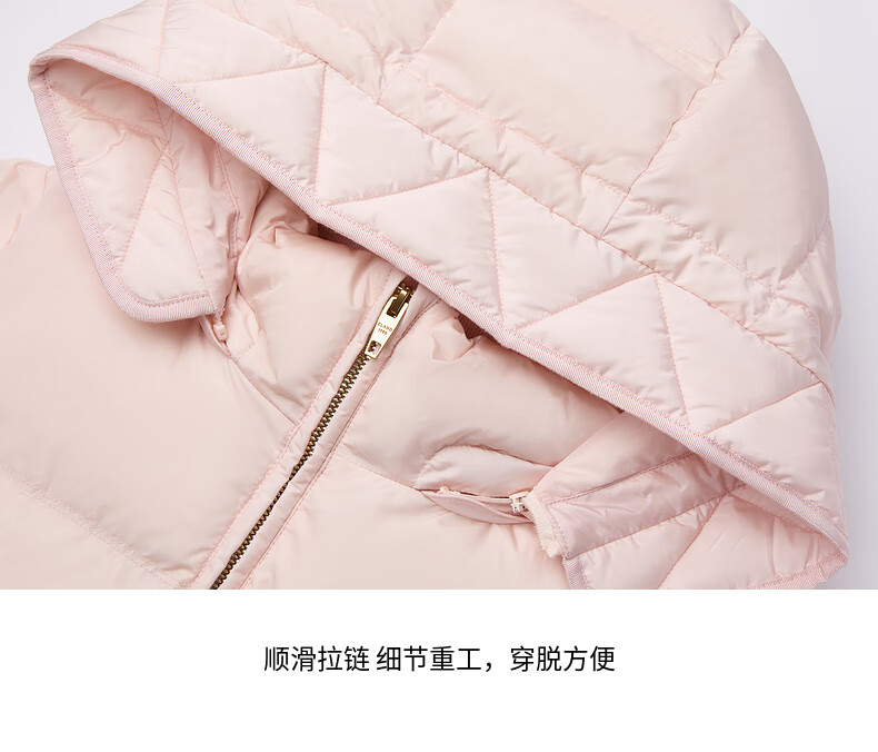 ELAND【鎏光鹅绒服】衣恋羽绒服女连帽中长款外套新款 浅粉色(26)L/Pink S /160