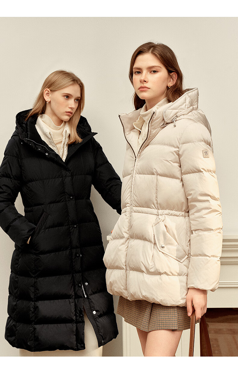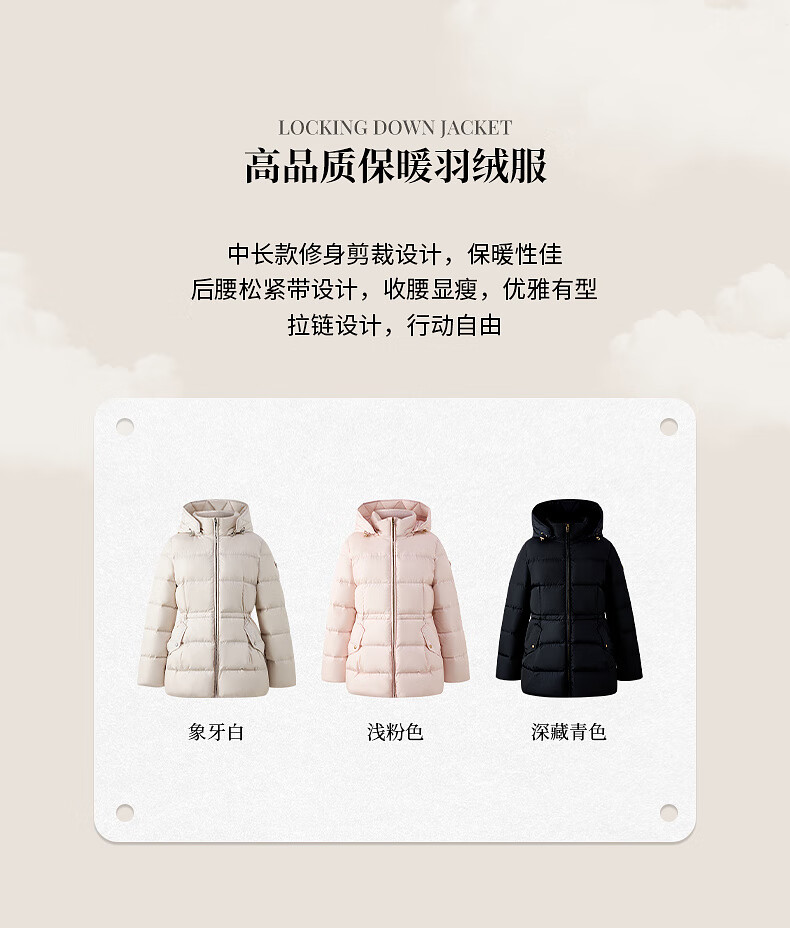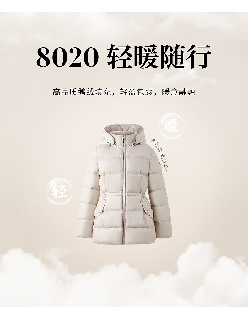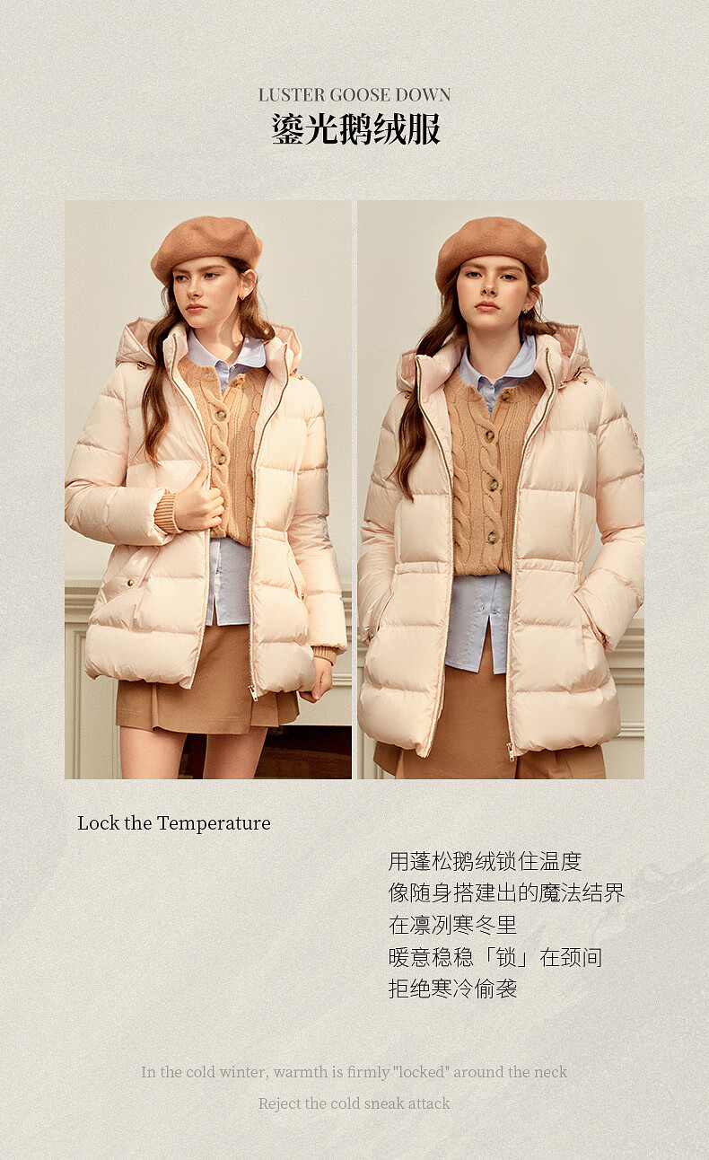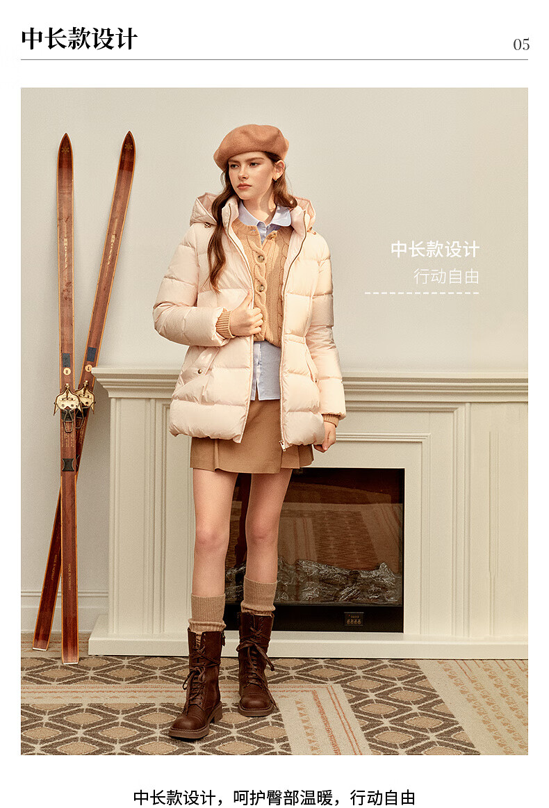 ELAND【鎏光鹅绒服】衣恋羽绒服女连帽中长款外套新款 浅粉色(26)L/Pink S /160