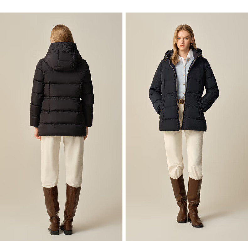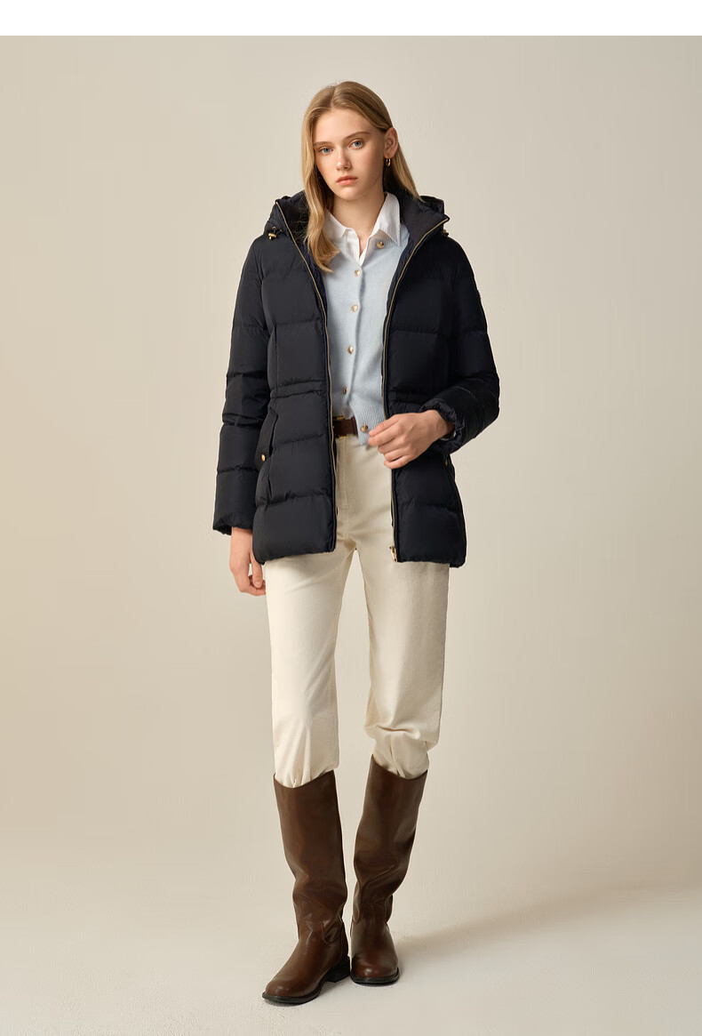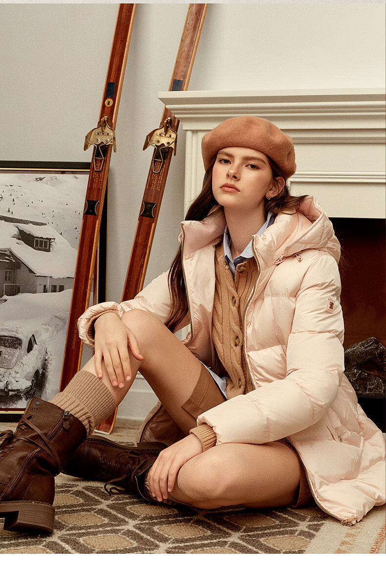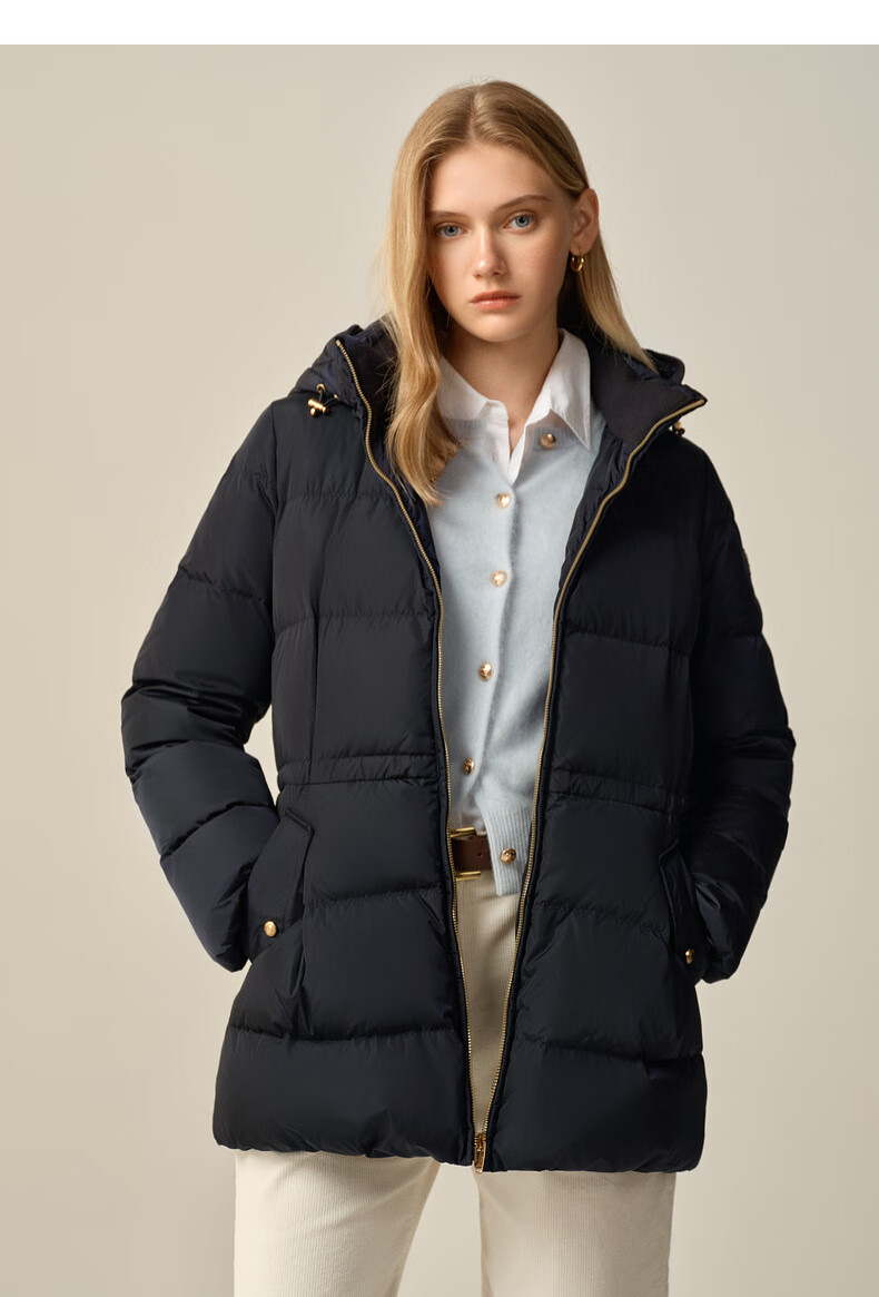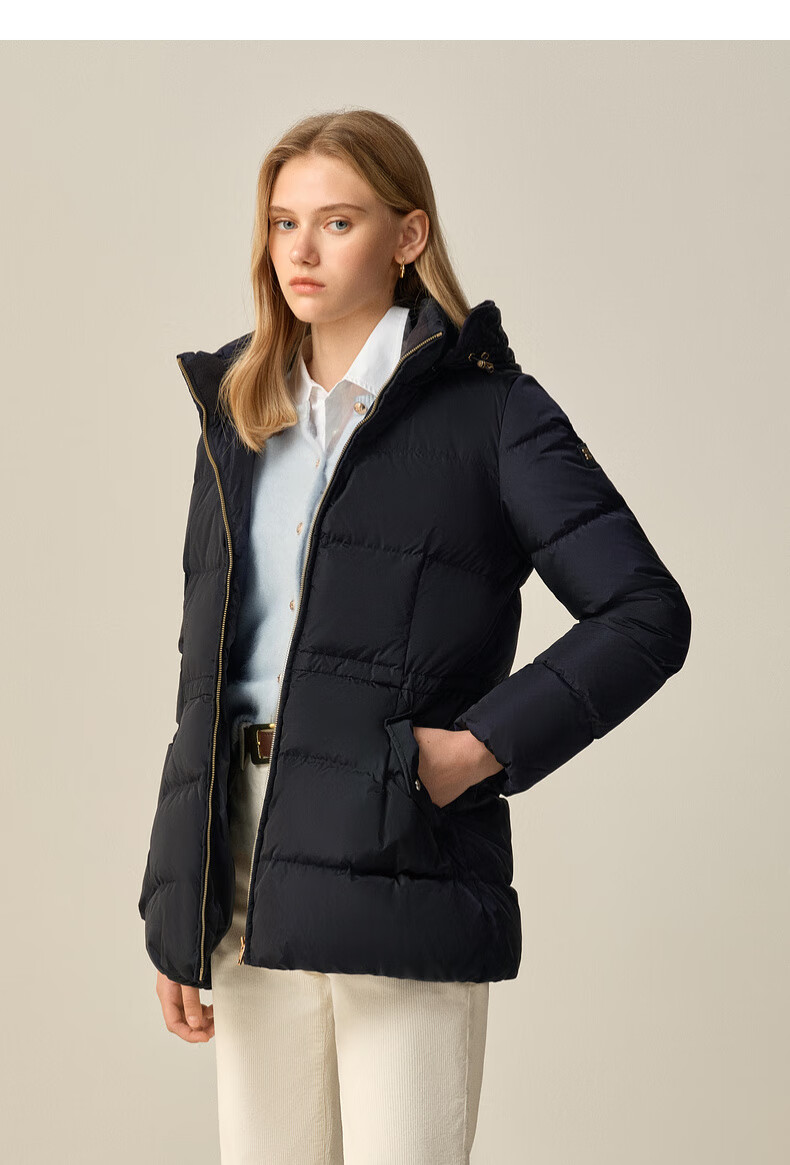 ELAND【鎏光鹅绒服】衣恋羽绒服女连帽中长款外套新款 浅粉色(26)L/Pink S /160
