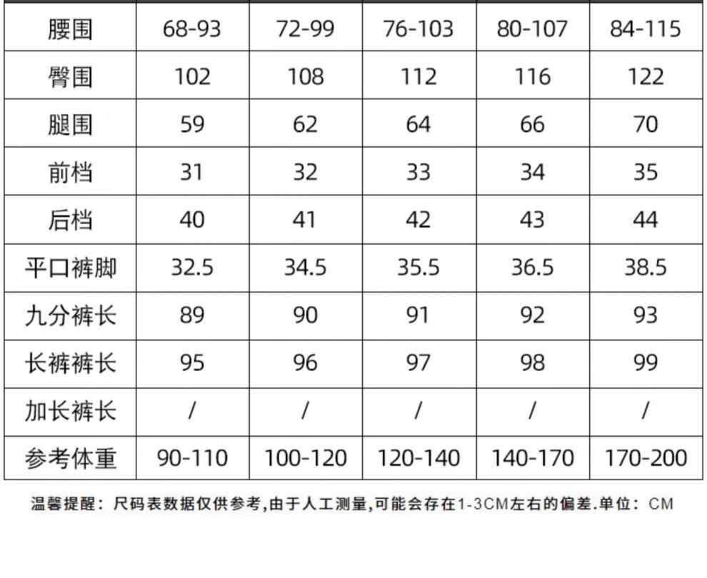 Outseam (cm) 99 cm 101.5 cm 104 cm 106.5 cm 109 cm