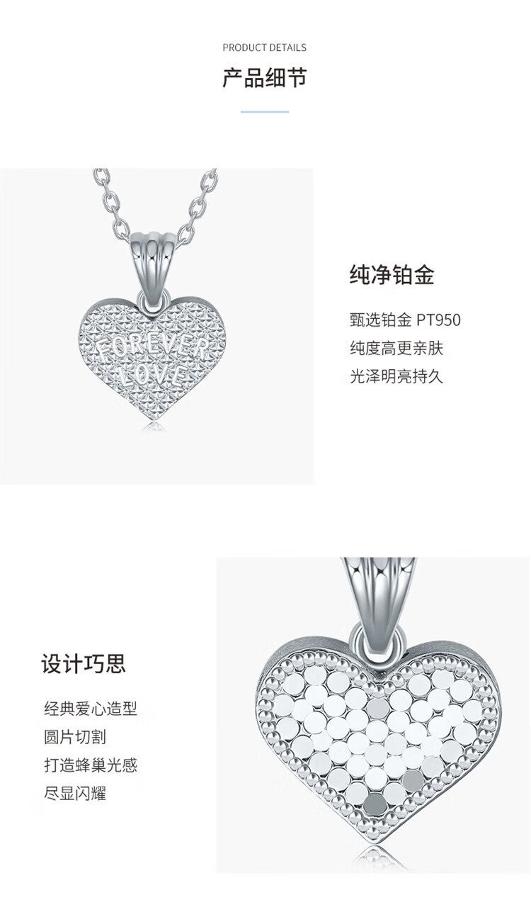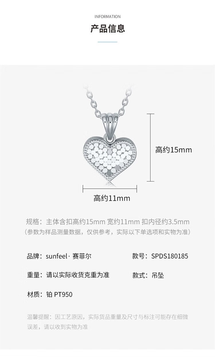 Safir platinum pendant for women PT950 platinum flashing honeycomb love platinum peach heart pendant as a birthday gift for your girlfriend, about 1.80 grams