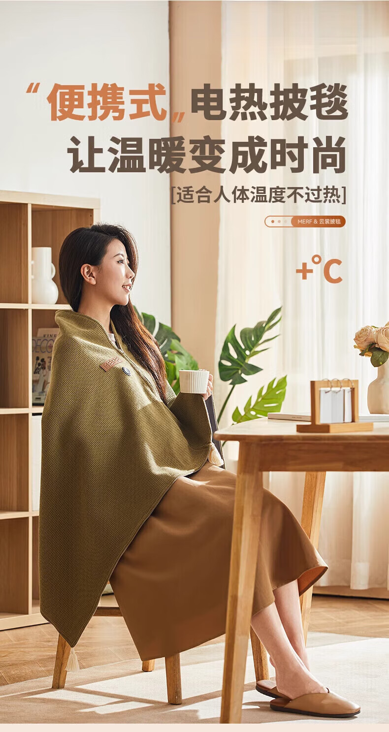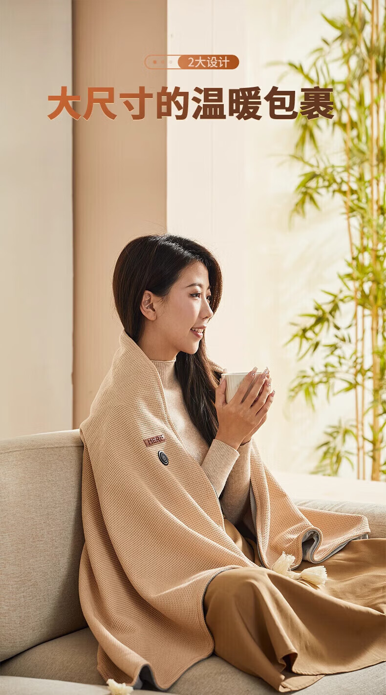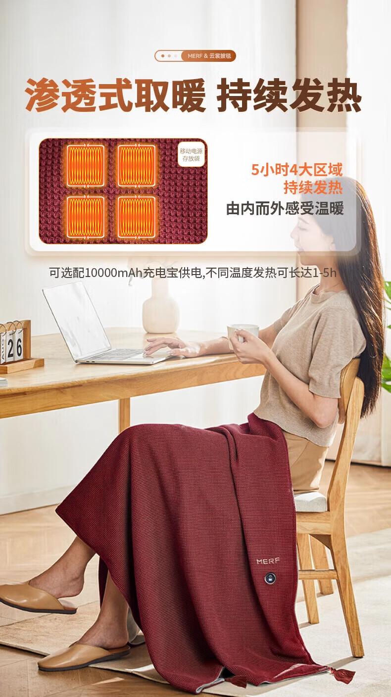 Plaza German electric heating blanket shawl heating blanket heating cloak detachable and washable usb power bank lunch break artifact home fashion office leg cover trendy care appliance Snowflake Apricot 10000mAh power bank 3-speed temperature control / machine washable