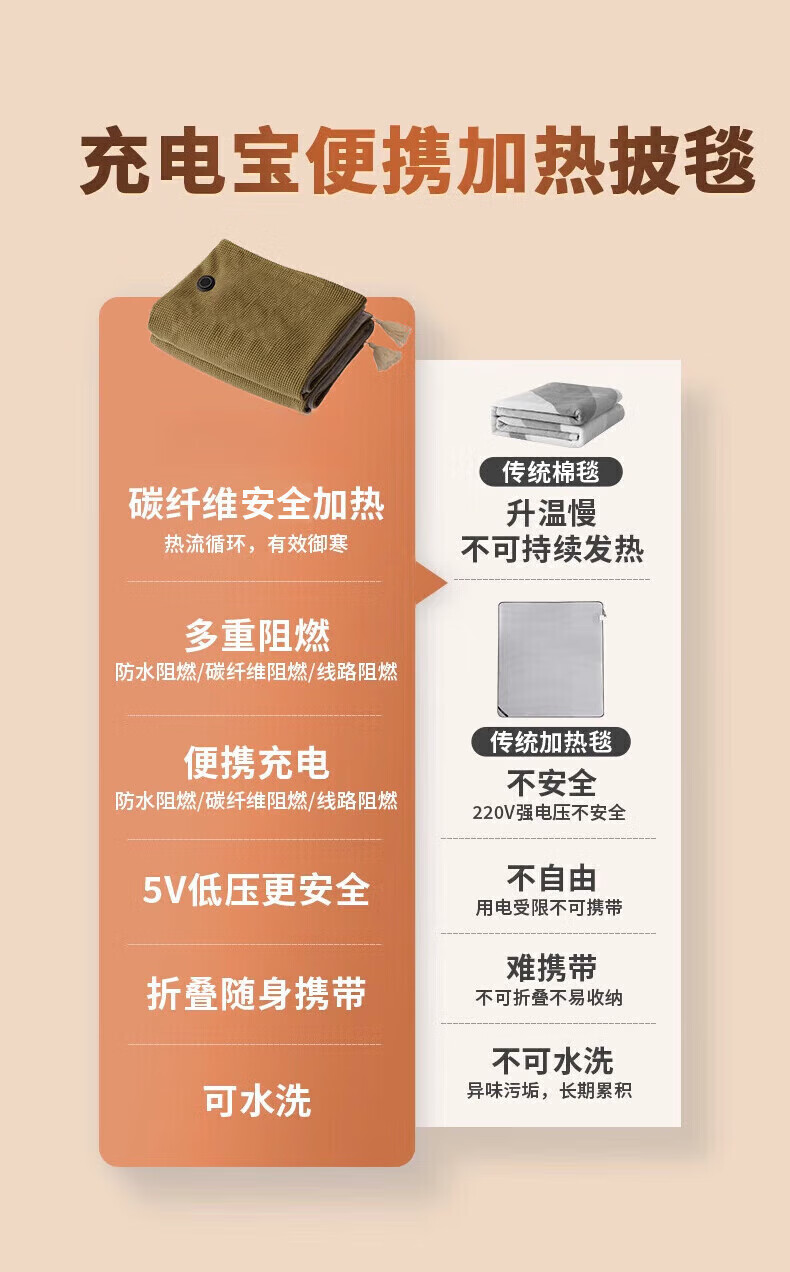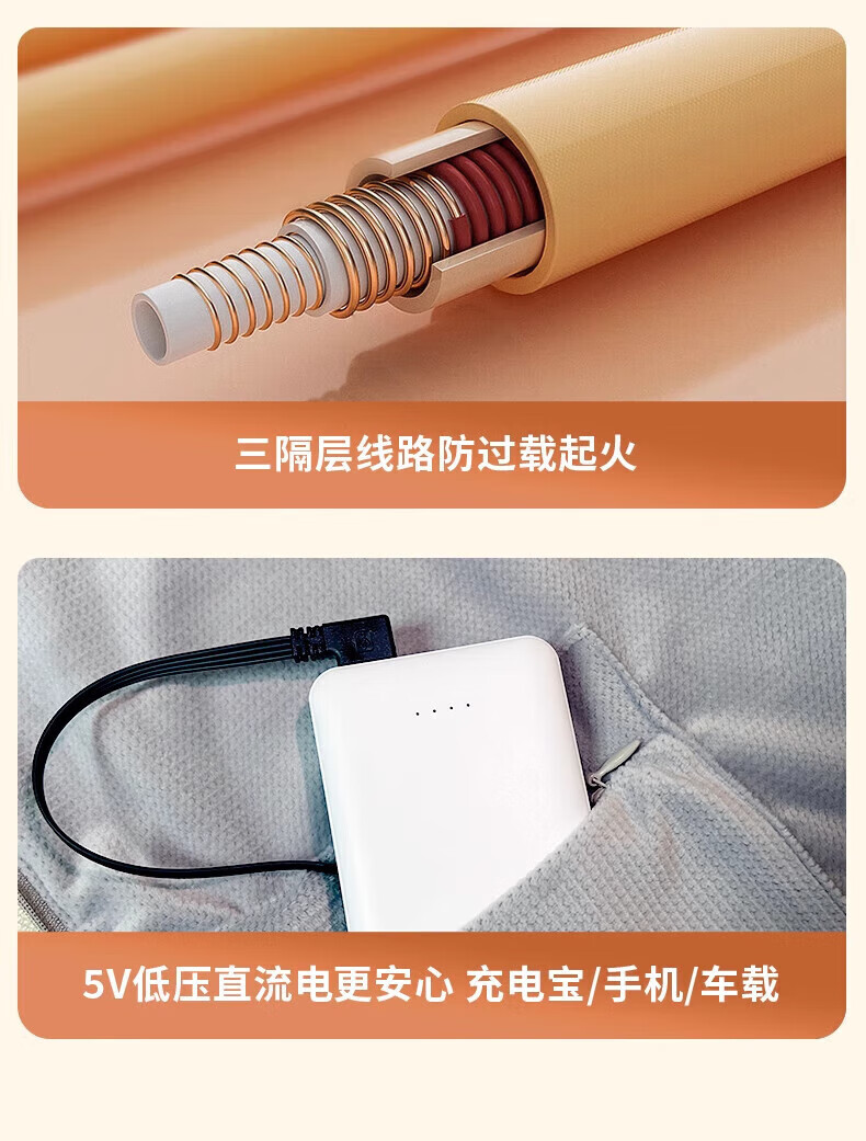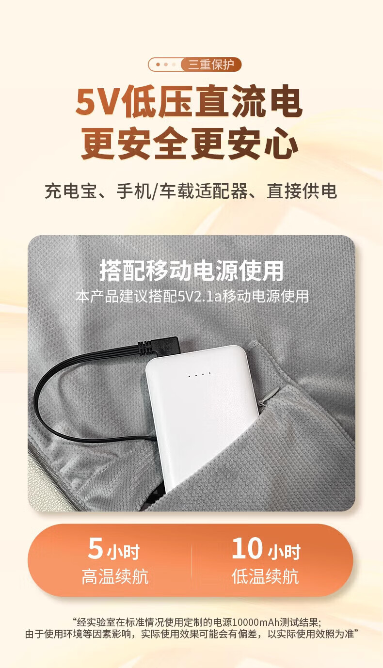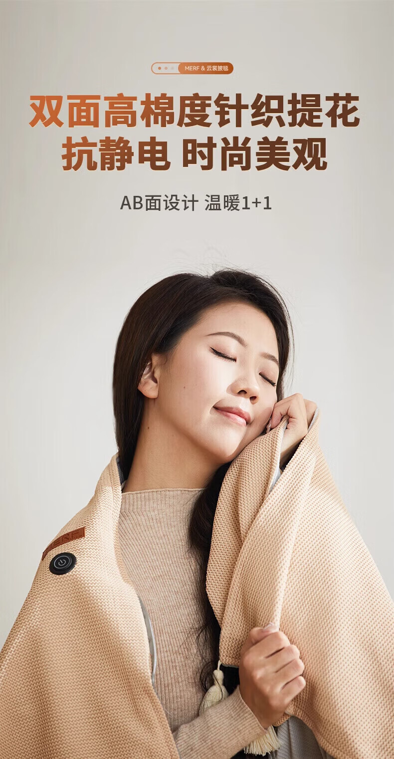Plaza German electric heating blanket shawl heating blanket heating cloak detachable and washable usb power bank lunch break artifact home fashion office leg cover trendy care appliance Snowflake Apricot 10000mAh power bank 3-speed temperature control / machine washable