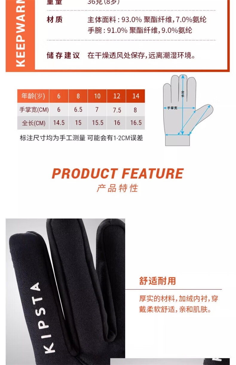 DECATHLON fishing gloves warm hat autumn fleece warm windproof unisex full-finger KIO children's gloves S