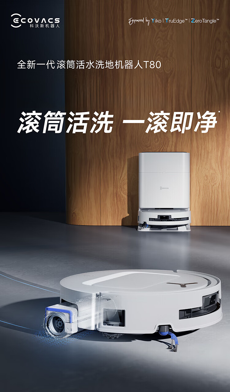 Ecovacs T80 sweeping robot sweeping and mopping all-in-one home smart voice automatic cleaning constant pressure roller live washing anti-winding all-round base station official machine T80-B level