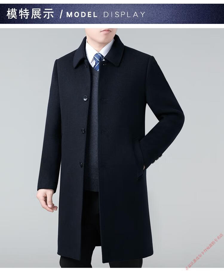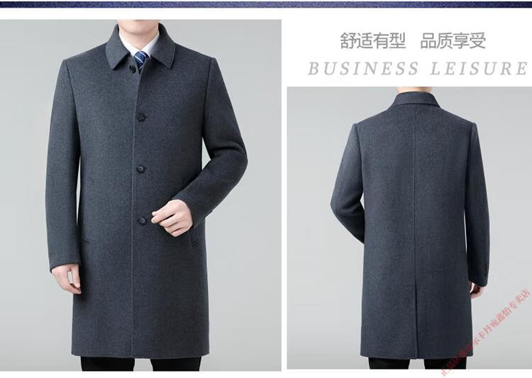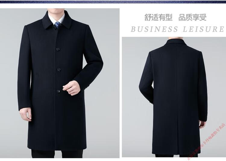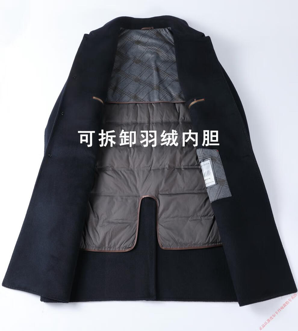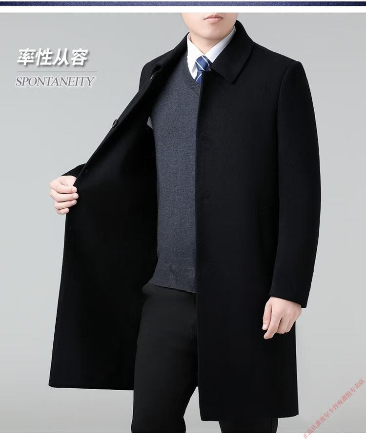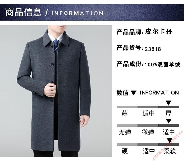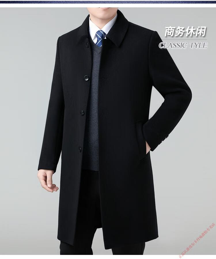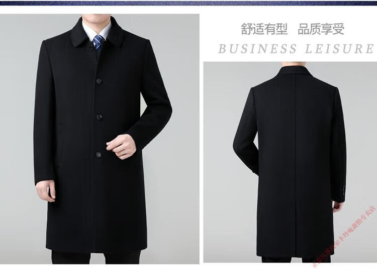 Pierre Cardin Double-sided Cashmere Coat Men's Woolen Windbreaker Long Middle-aged and Elderly Dad Casual Plus Size Jacket Black/Goose Down Liner 6XL 205 Recommended 220-240Jin Jin is equal to 0.5 kg
