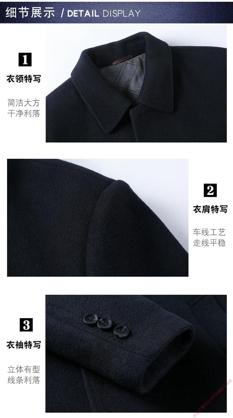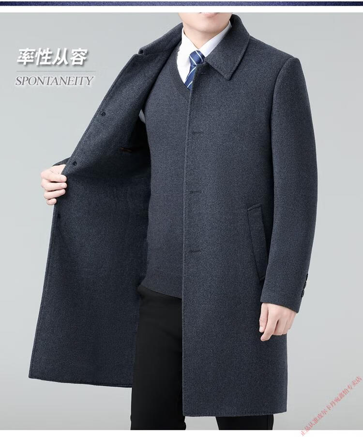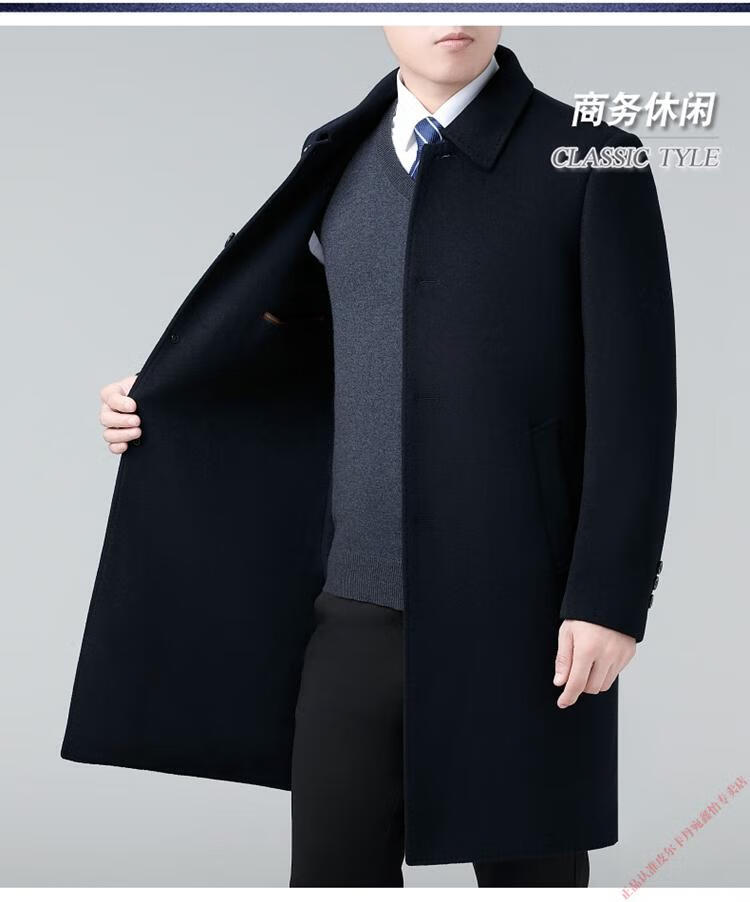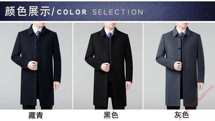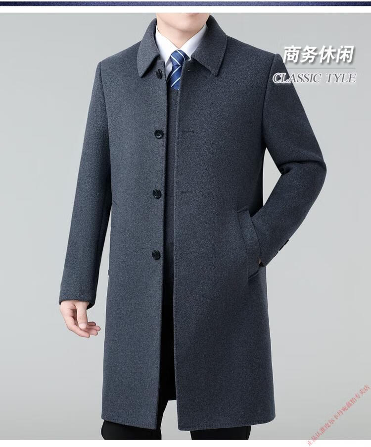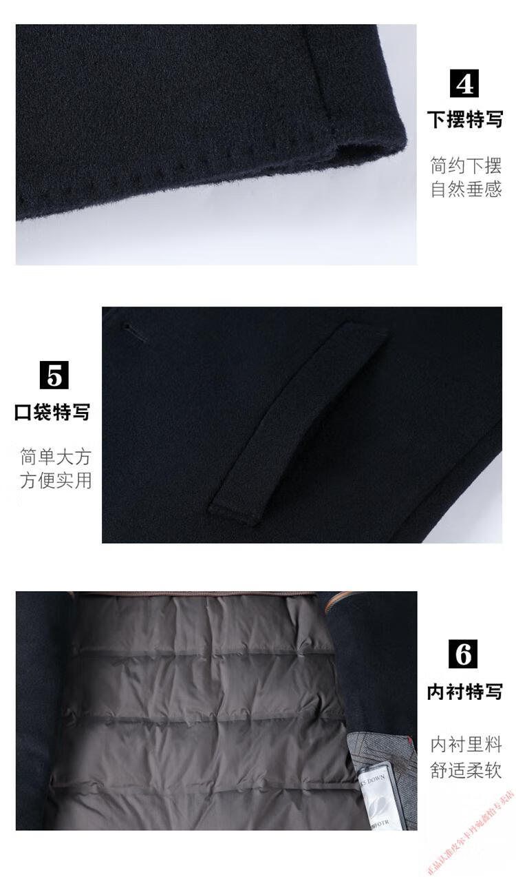 Pierre Cardin Double-sided Cashmere Coat Men's Woolen Windbreaker Long Middle-aged and Elderly Dad Casual Plus Size Jacket Black/Goose Down Liner 6XL 205 Recommended 220-240Jin Jin is equal to 0.5 kg