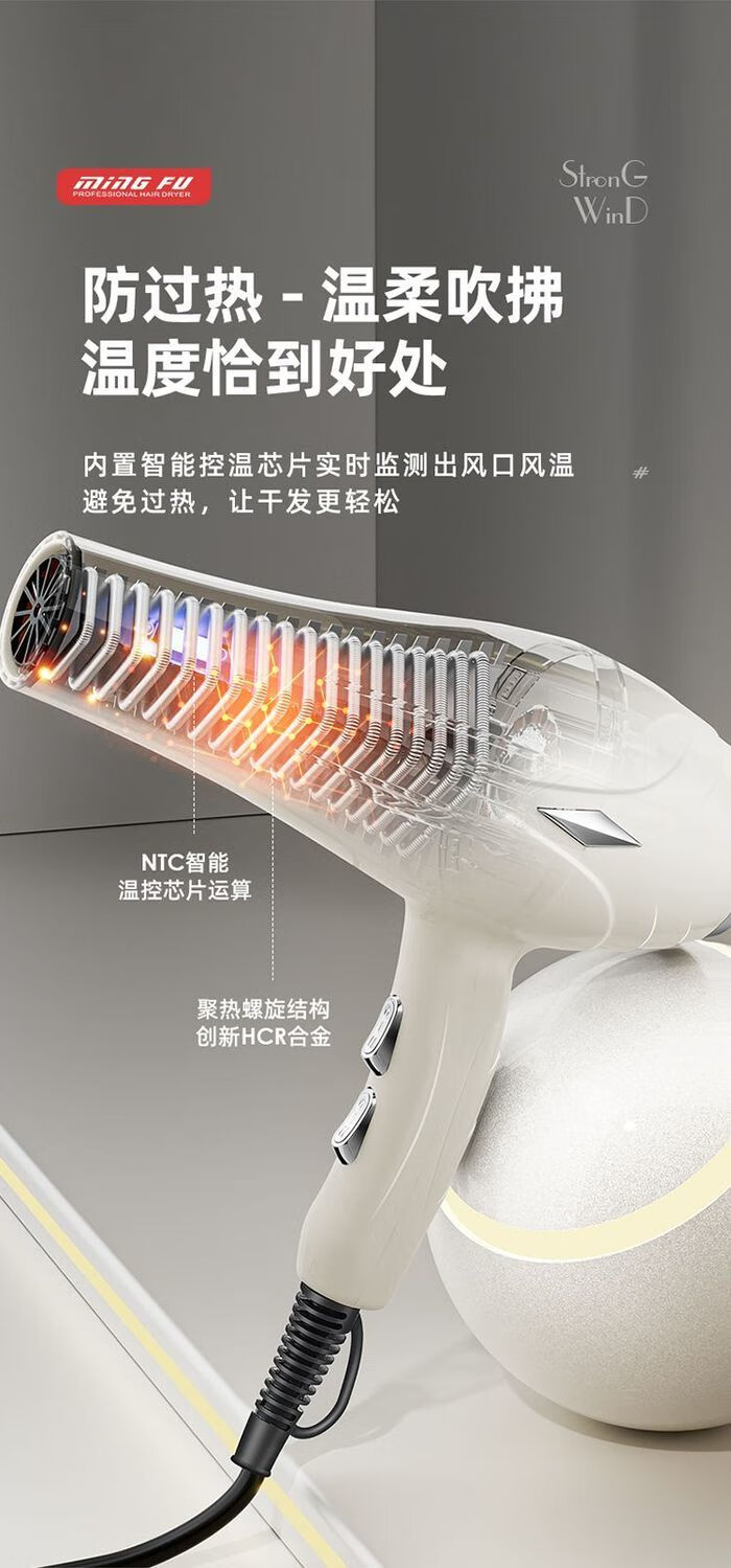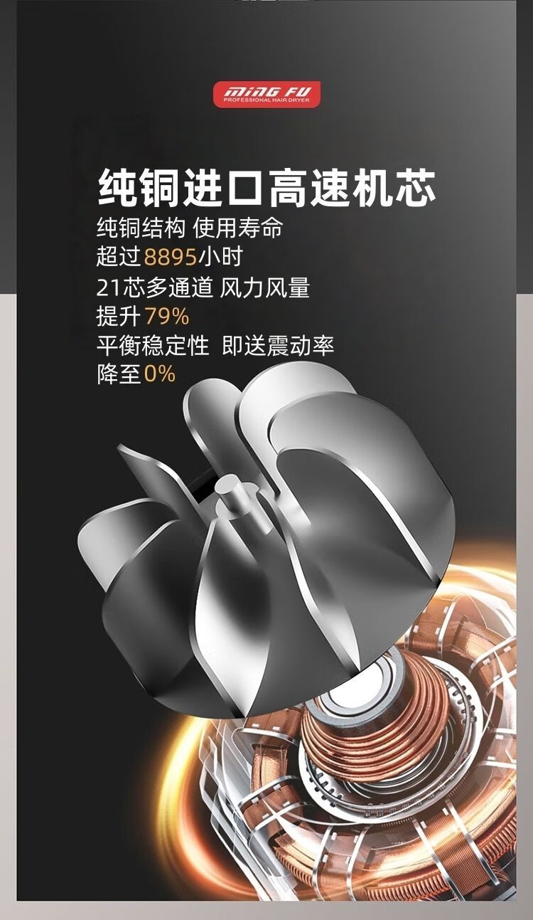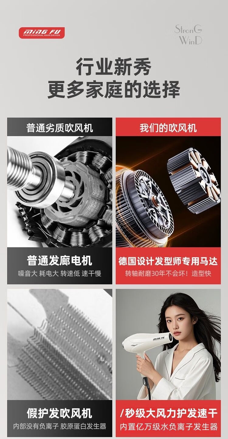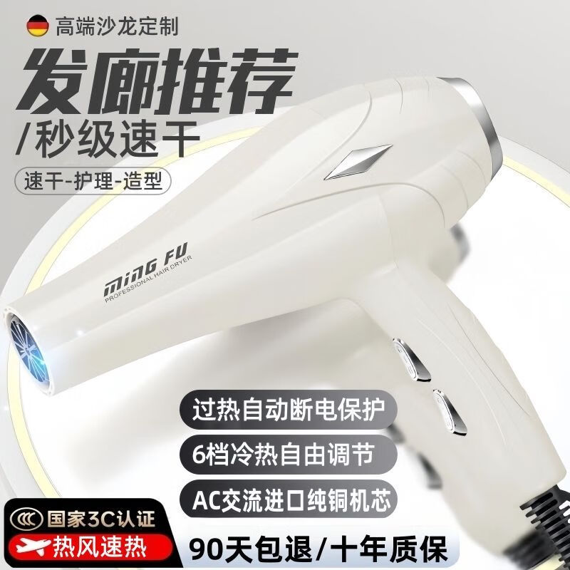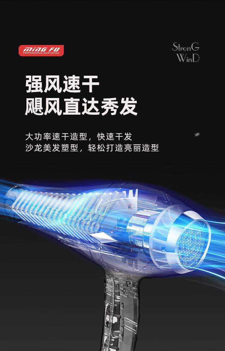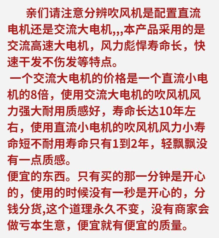 Hair dryer for hair salons, strong wind, home barber shop, high-power negative ion silent quick-drying hair care hair dryer, blue light hair care, black AC pure copper AC high-speed movement, 100% authentic