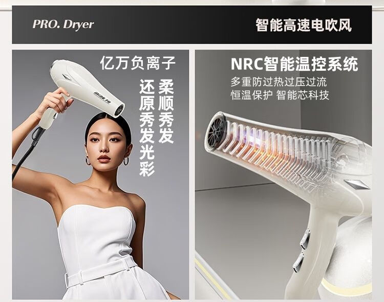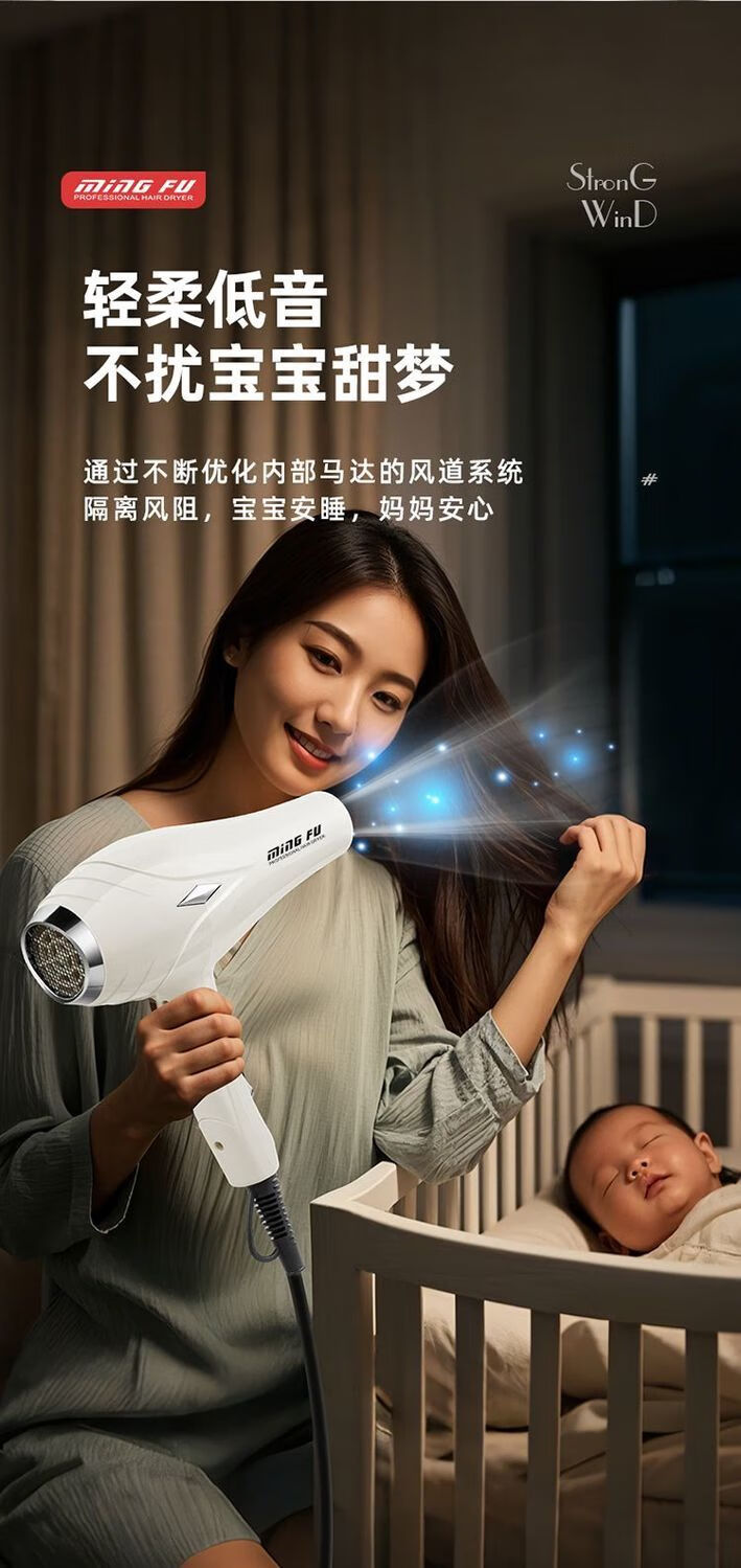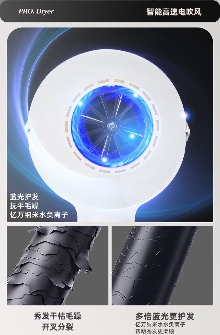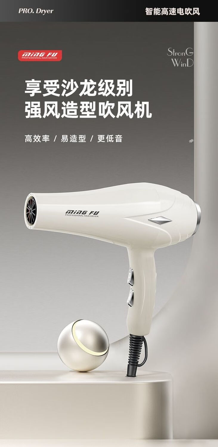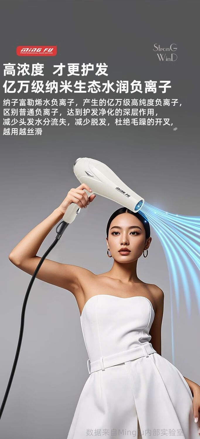 Hair dryer for hair salons, strong wind, home barber shop, high-power negative ion silent quick-drying hair care hair dryer, blue light hair care, black AC pure copper AC high-speed movement, 100% authentic