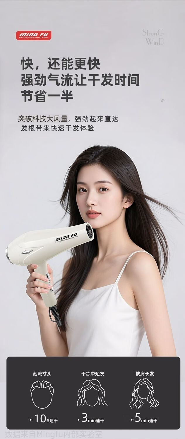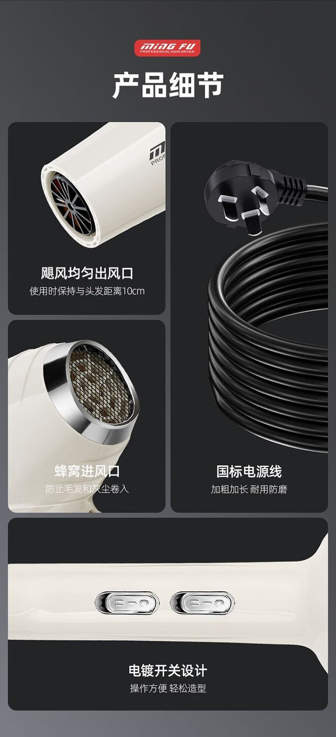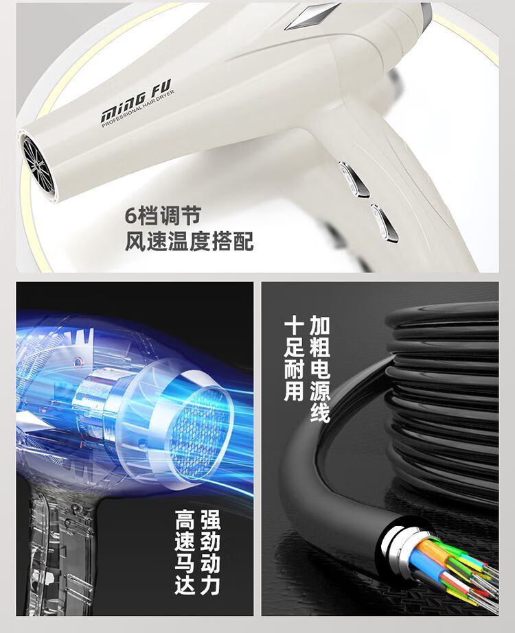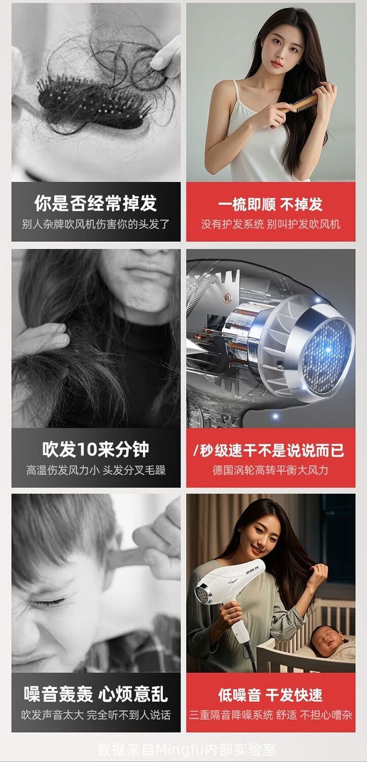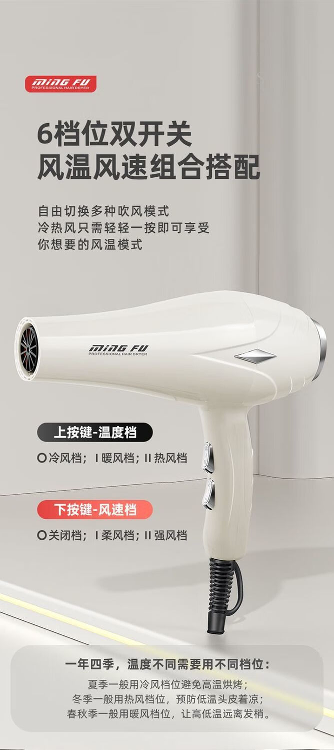 Hair dryer for hair salons, strong wind, home barber shop, high-power negative ion silent quick-drying hair care hair dryer, blue light hair care, black AC pure copper AC high-speed movement, 100% authentic