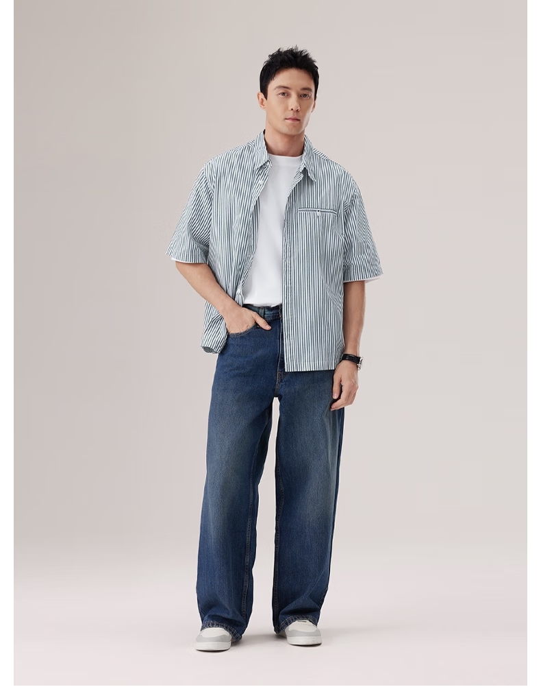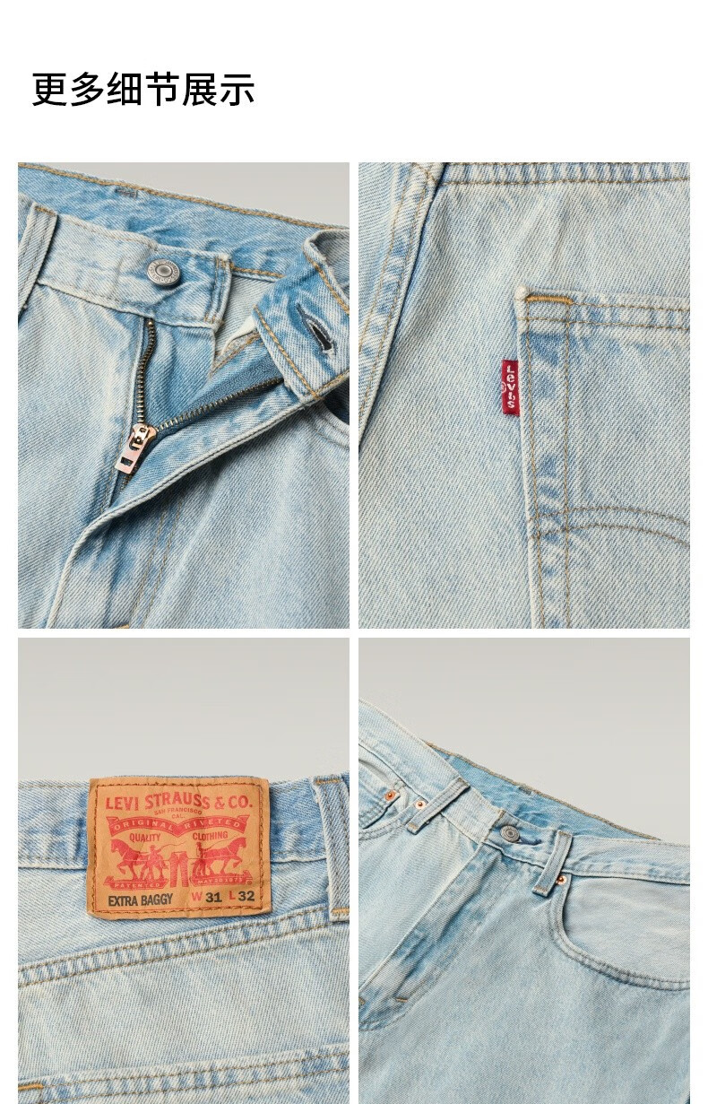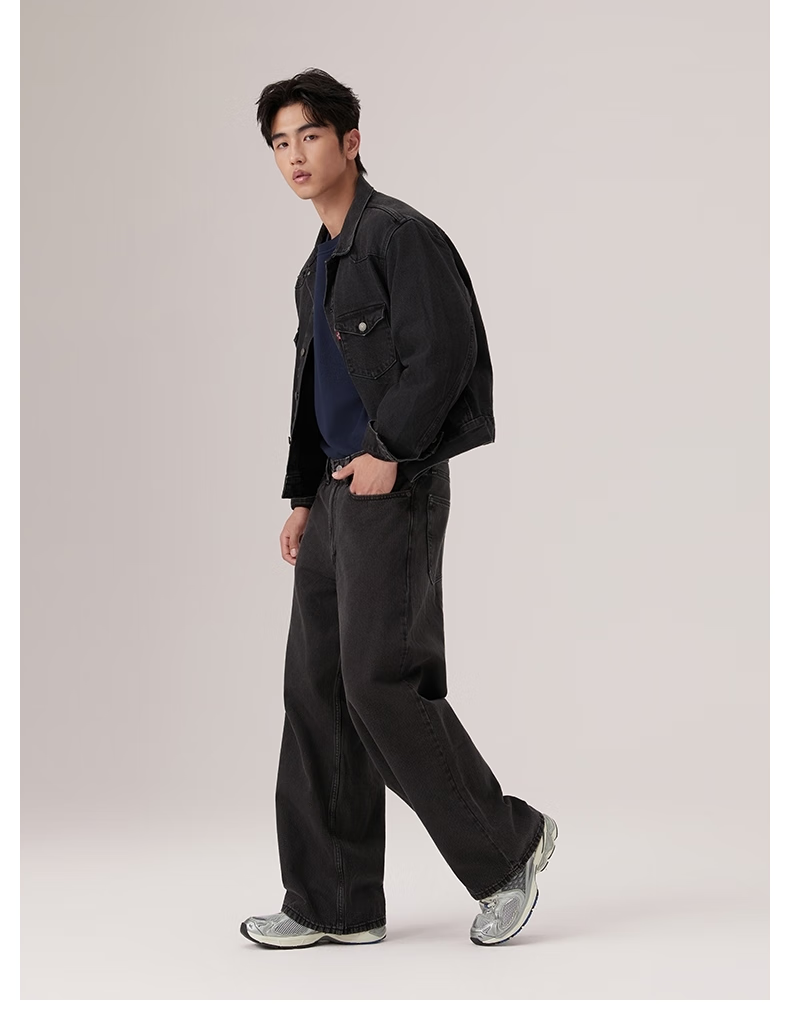 Levi's Levi's 25th Autumn and Winter New Men's American Casual BAGGY Loose Wide Leg Straight Jeans Black 34 (32)
