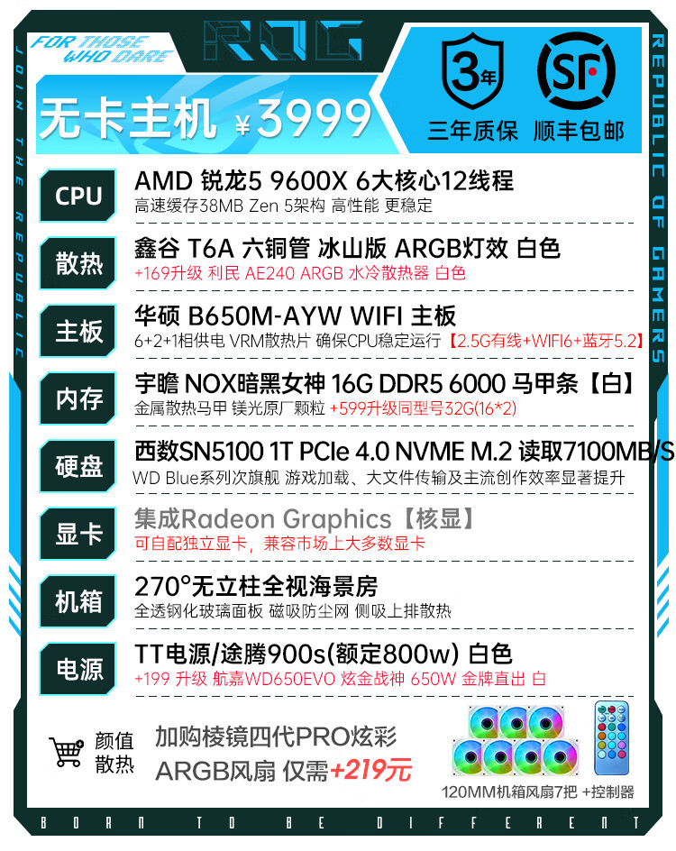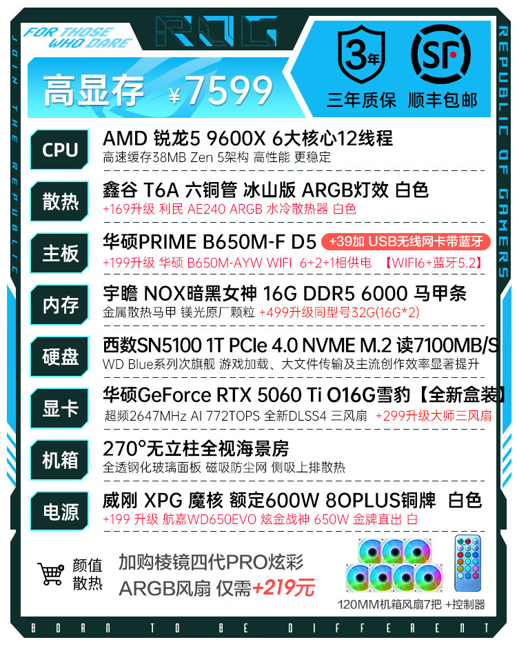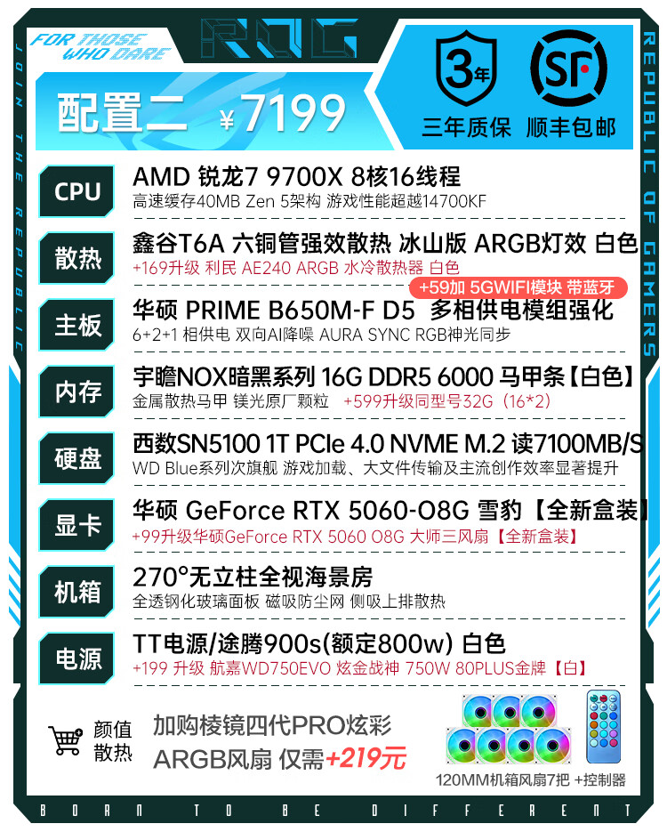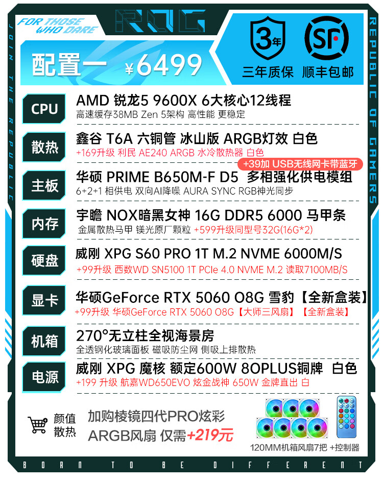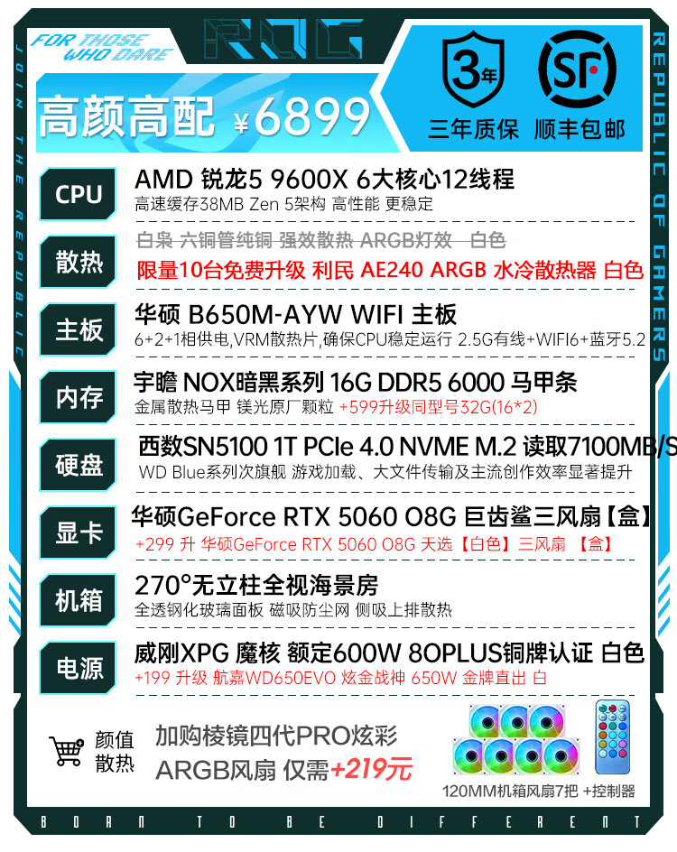ASUS (ASUS) AMD R5 9600X host 24 periods of interest-free RTX 5060 graphics card 5070 live game e-sports desktop computer DIY assembly machine without graphics card complete machine sea view room 9700X + ASUS RTX 5060 configuration two