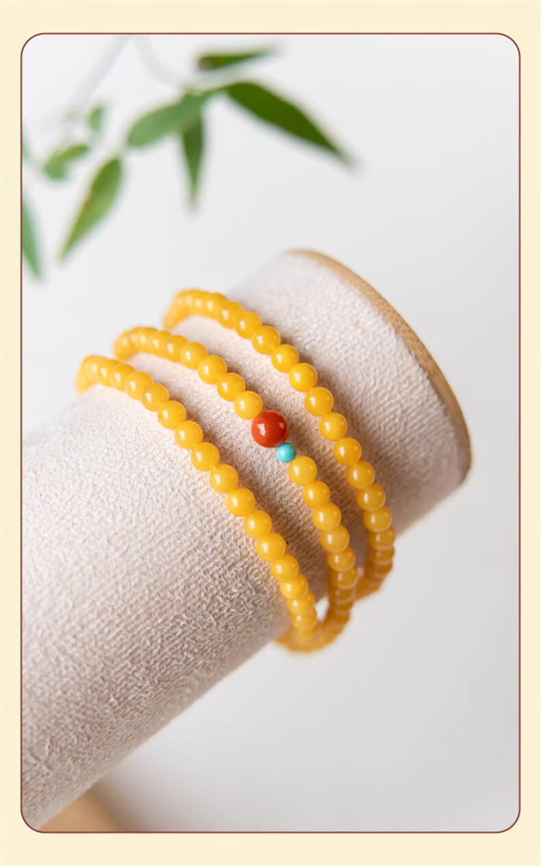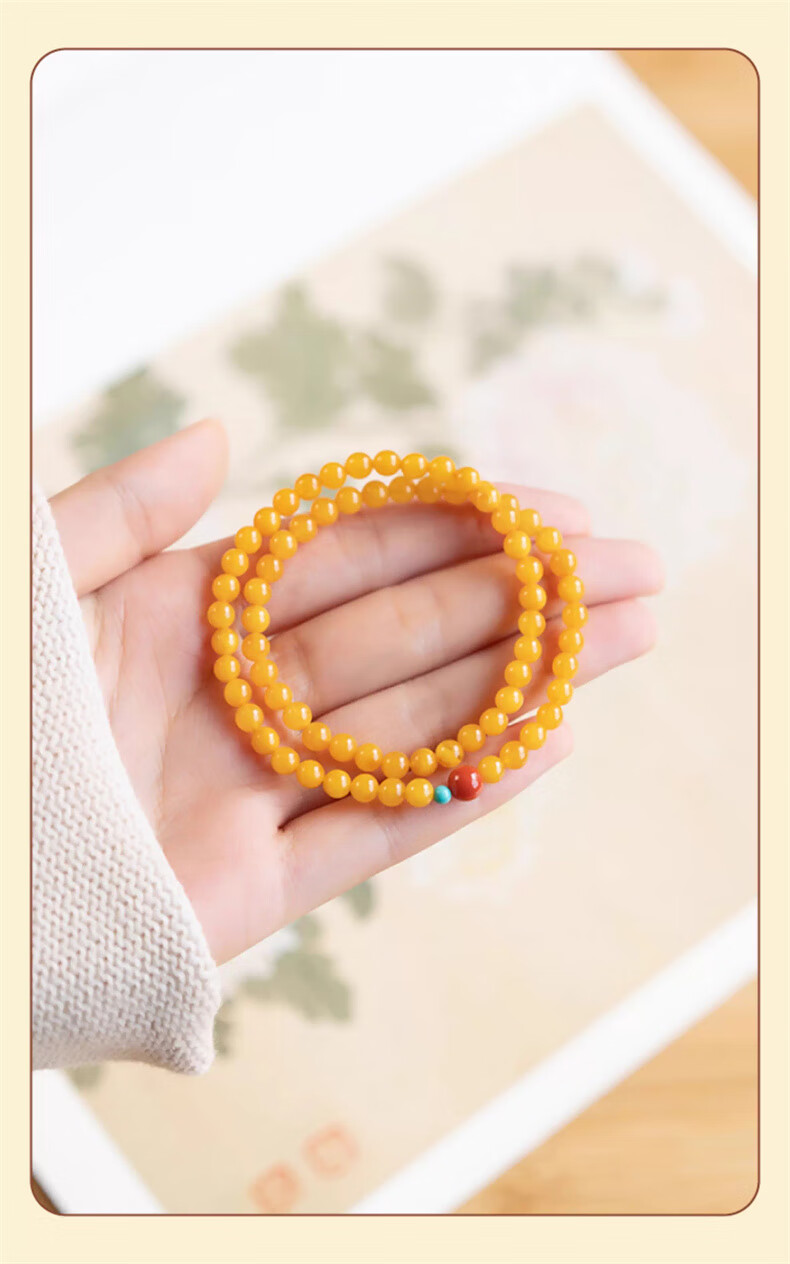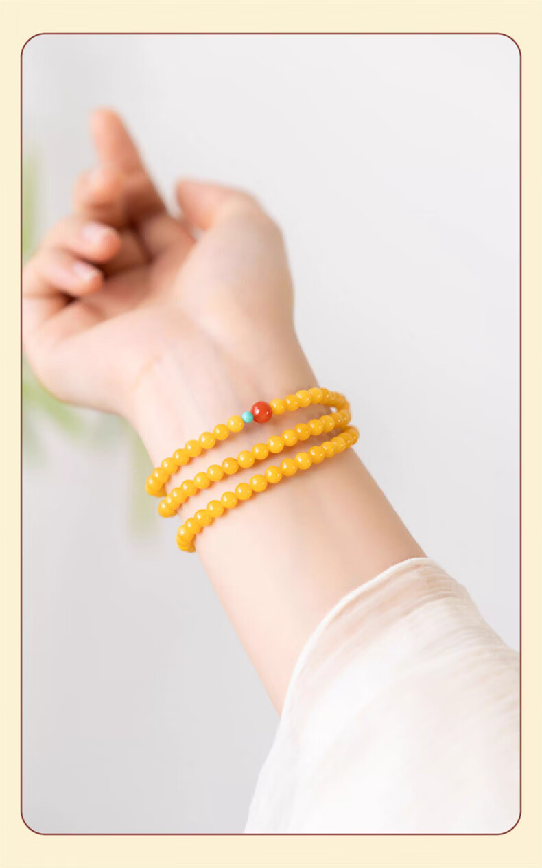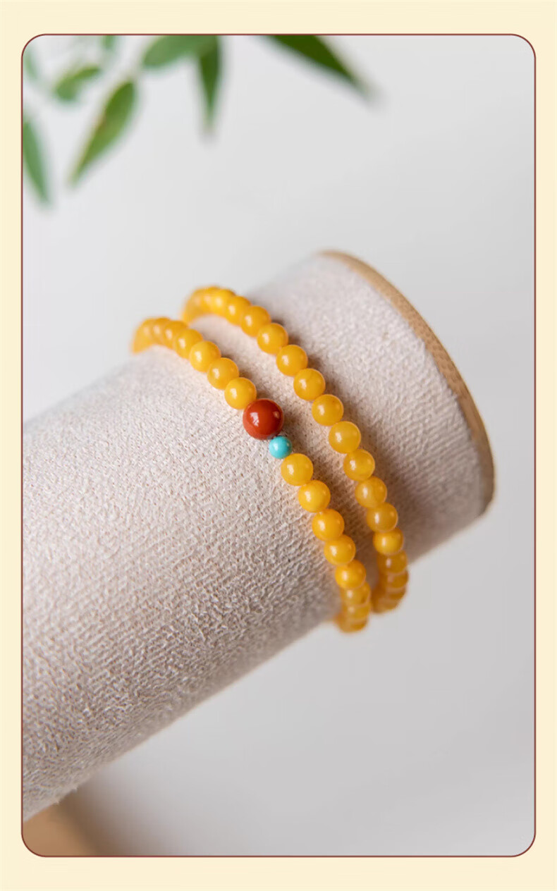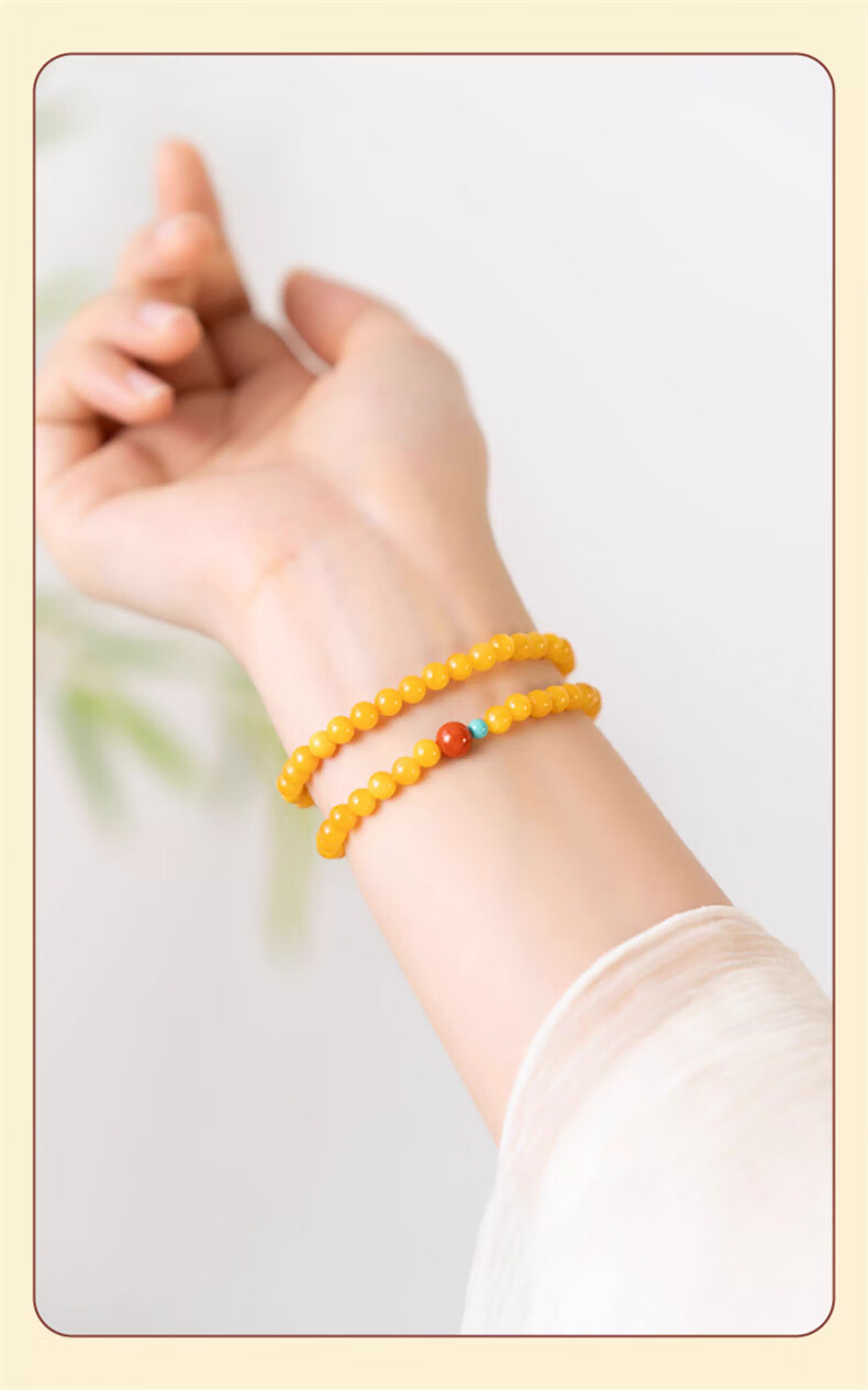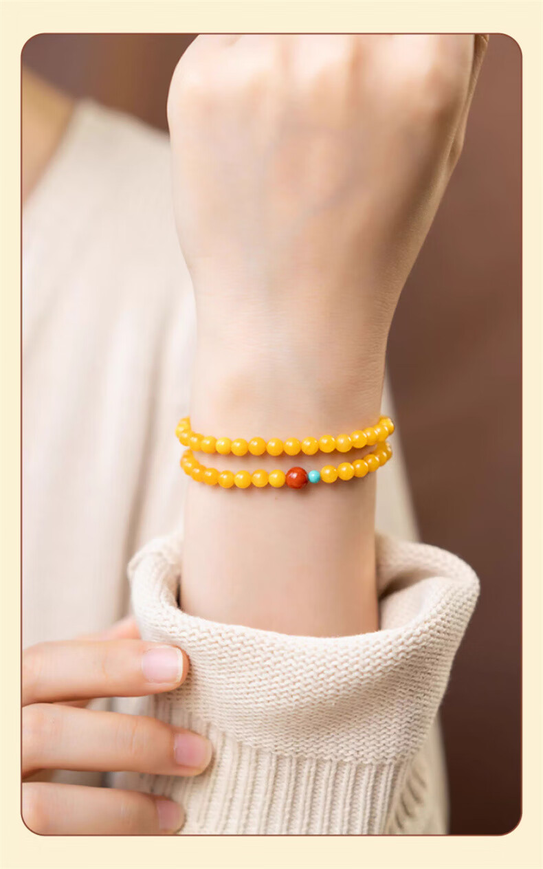 Fan Jialun beeswax bracelets for women, stacked southern red and turquoise bracelets, double-circle rosary beads, amber old honey chicken oil yellow gift, double-circle Shanyue