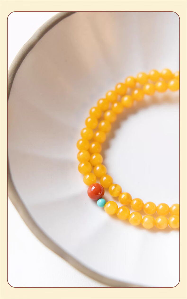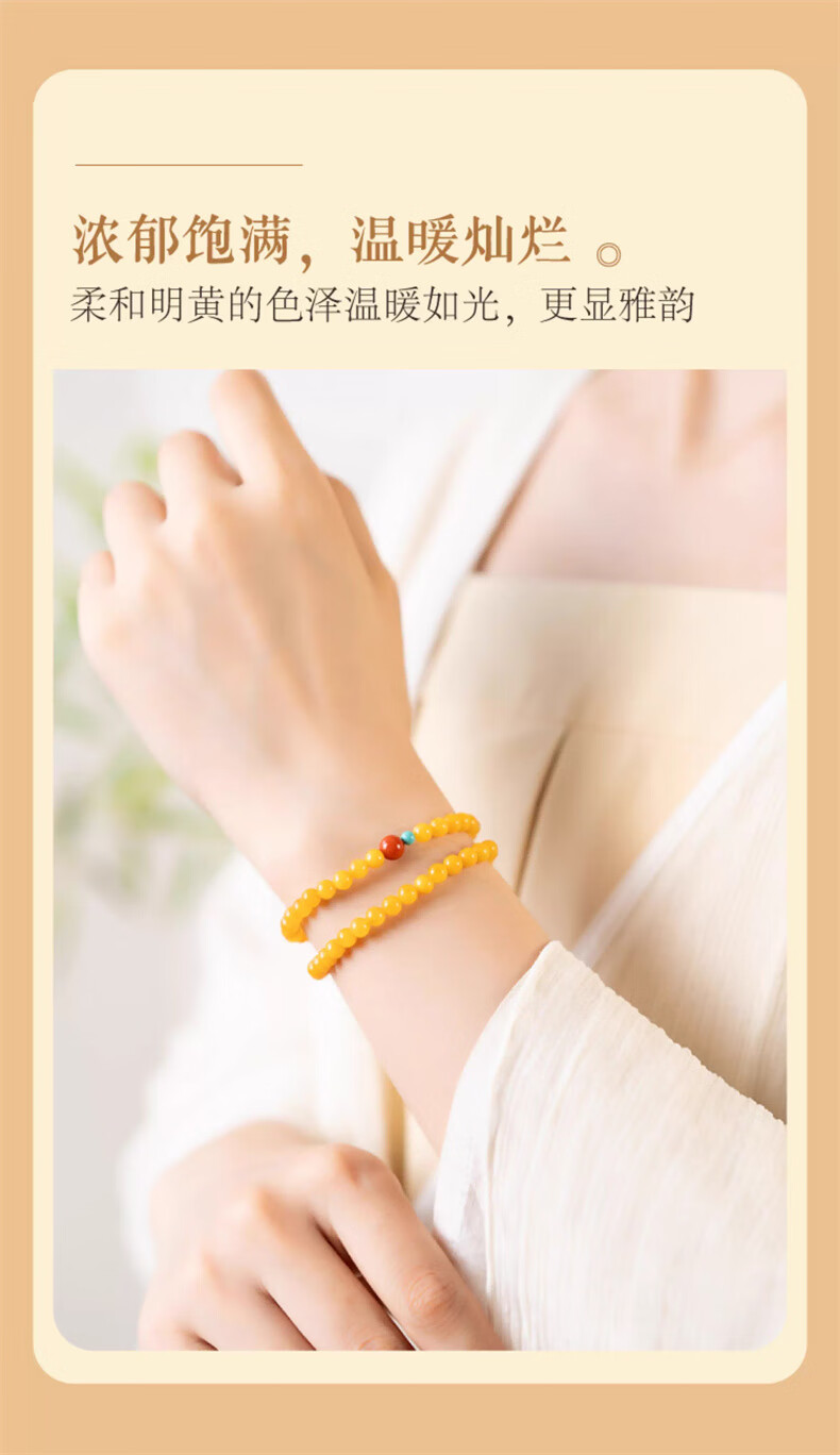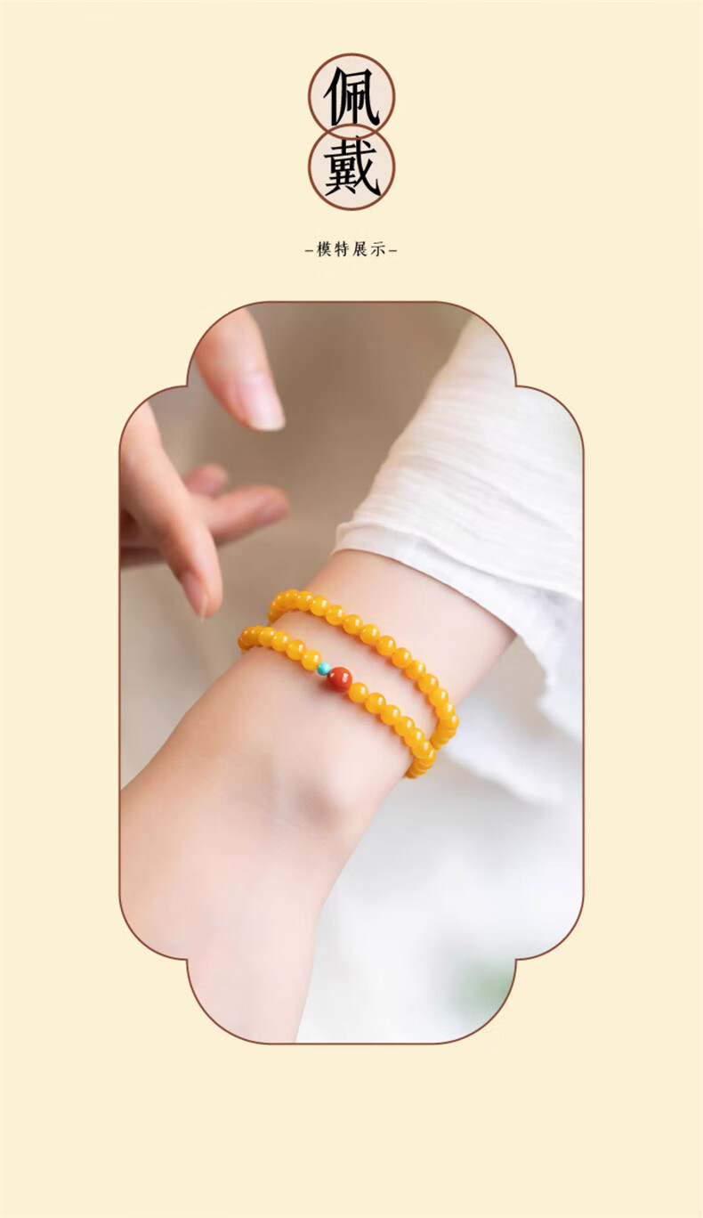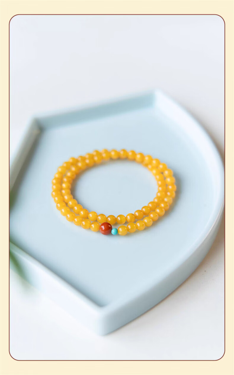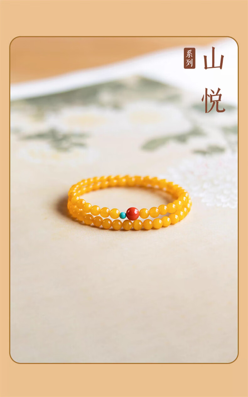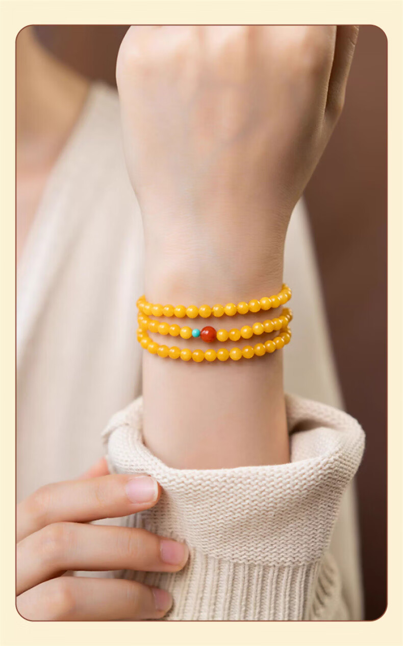 Fan Jialun beeswax bracelets for women, stacked southern red and turquoise bracelets, double-circle rosary beads, amber old honey chicken oil yellow gift, double-circle Shanyue