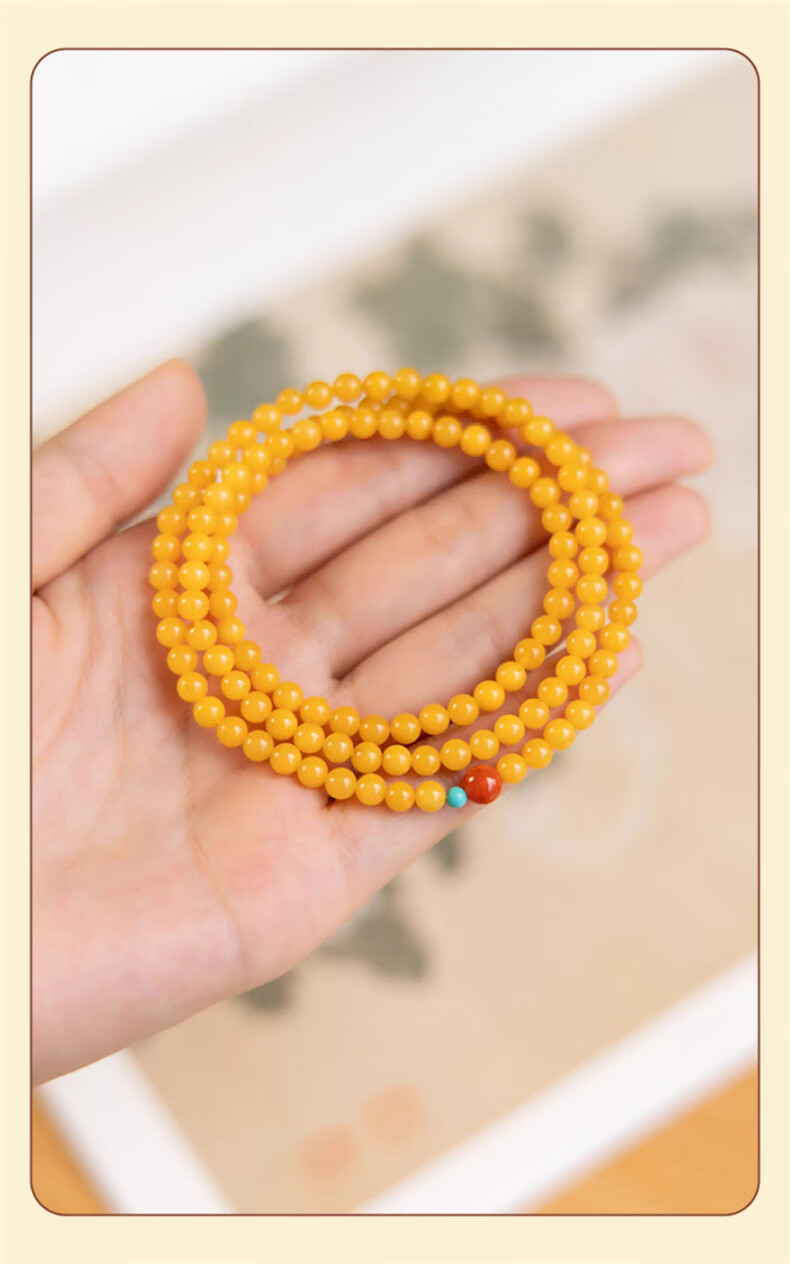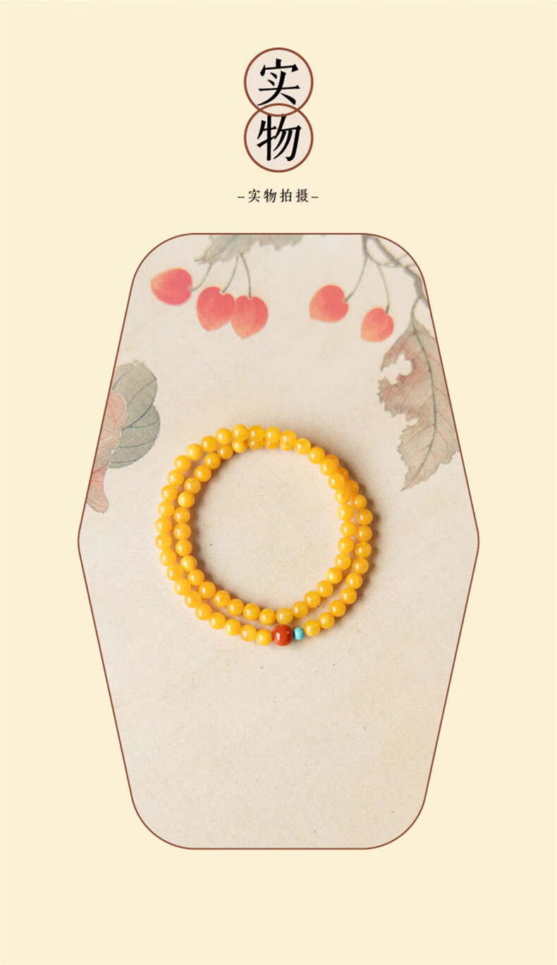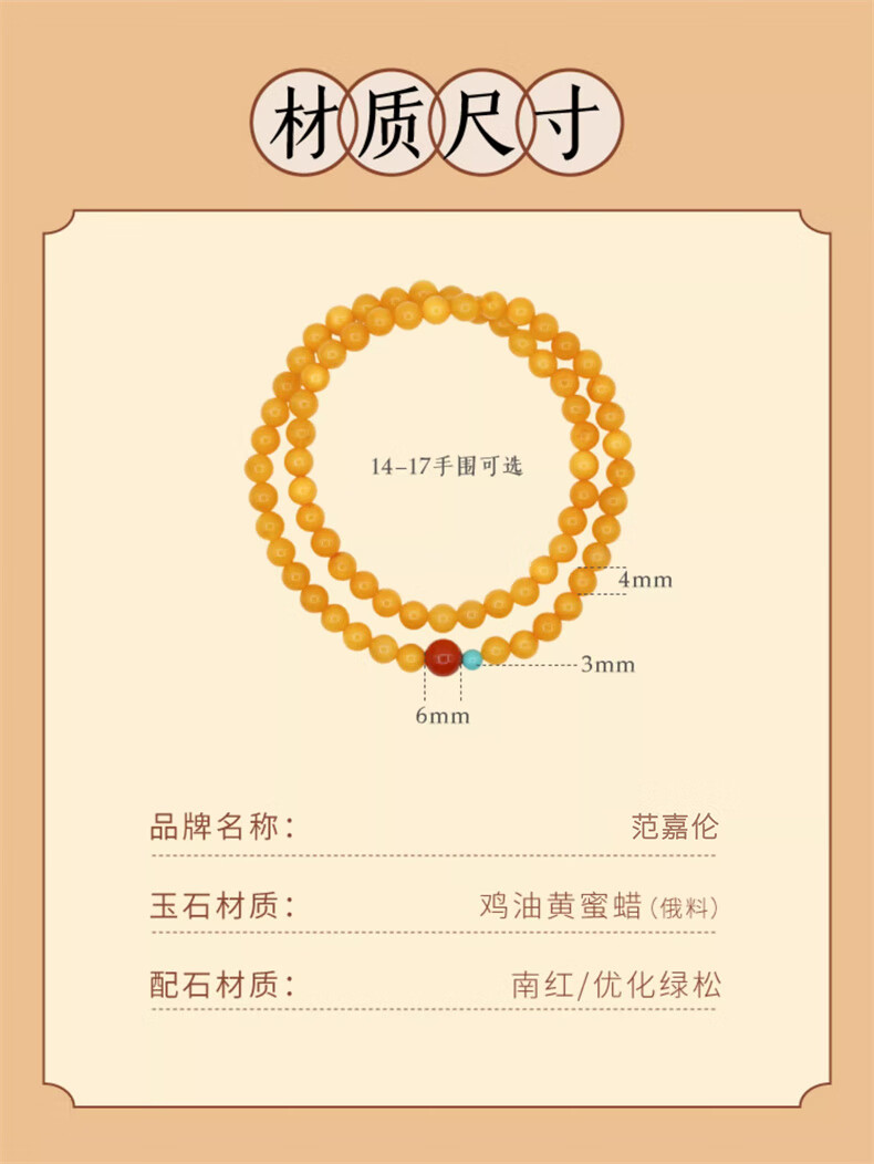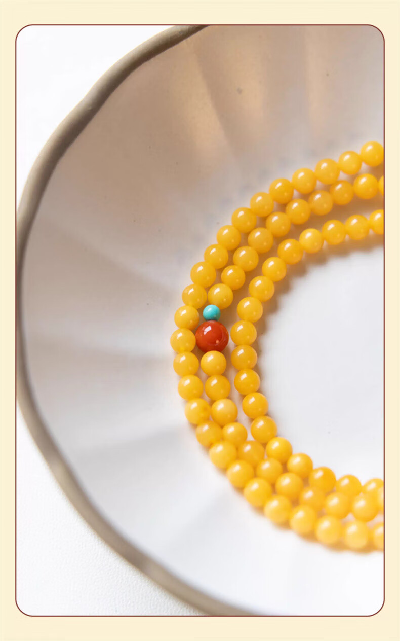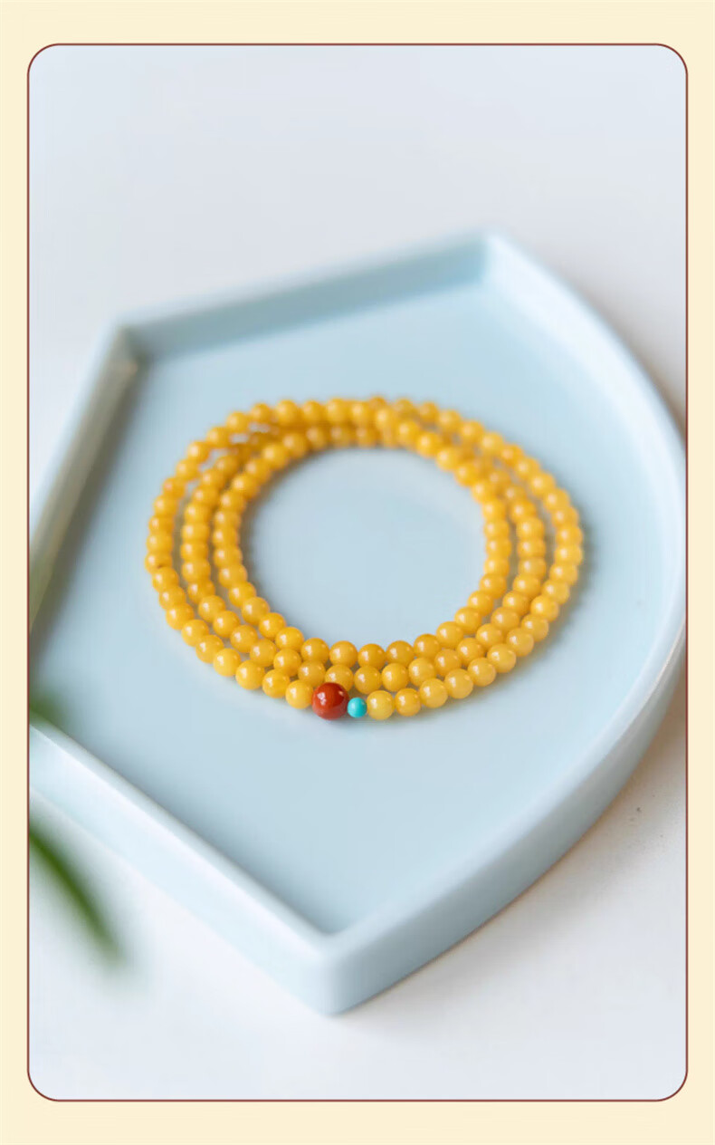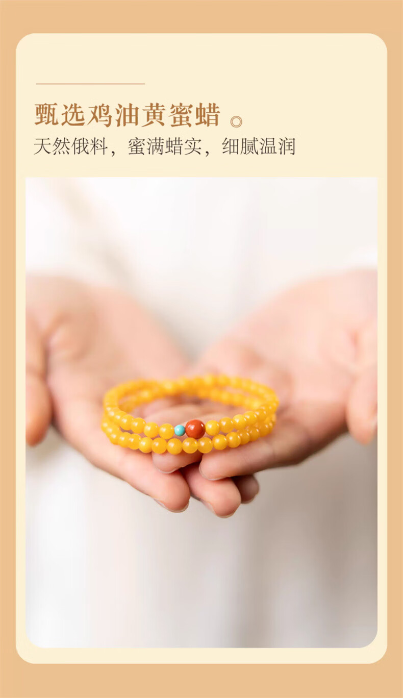 Fan Jialun beeswax bracelets for women, stacked southern red and turquoise bracelets, double-circle rosary beads, amber old honey chicken oil yellow gift, double-circle Shanyue