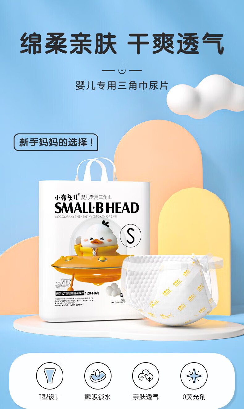 Triangle baby diapers, small cloth triangle baby T-shaped diapers, disposable newborn diapers, diapers, baby changing pads, YPYPYP straps, S size, 60 pieces, 3-8Jin, Jin is equal to 0.5kg