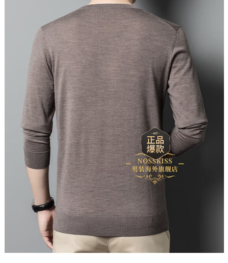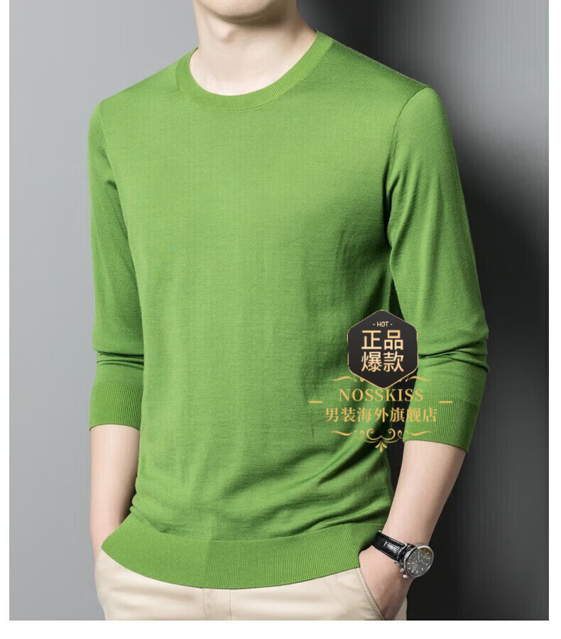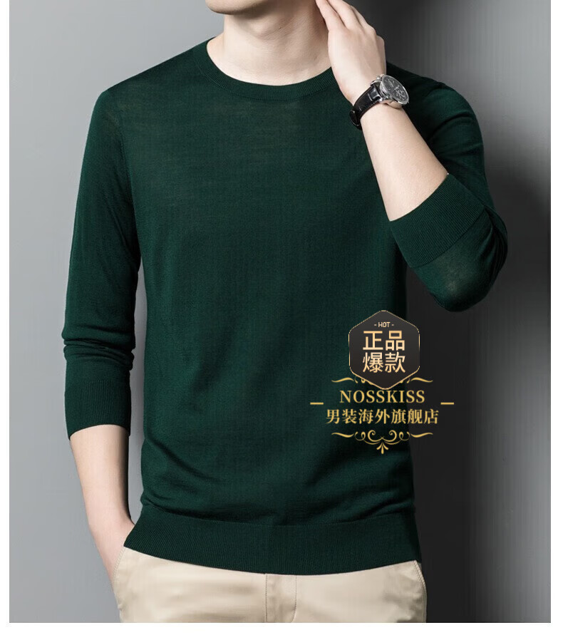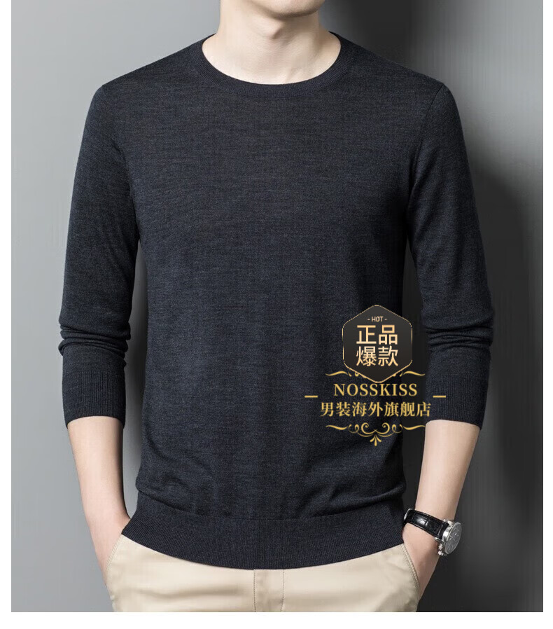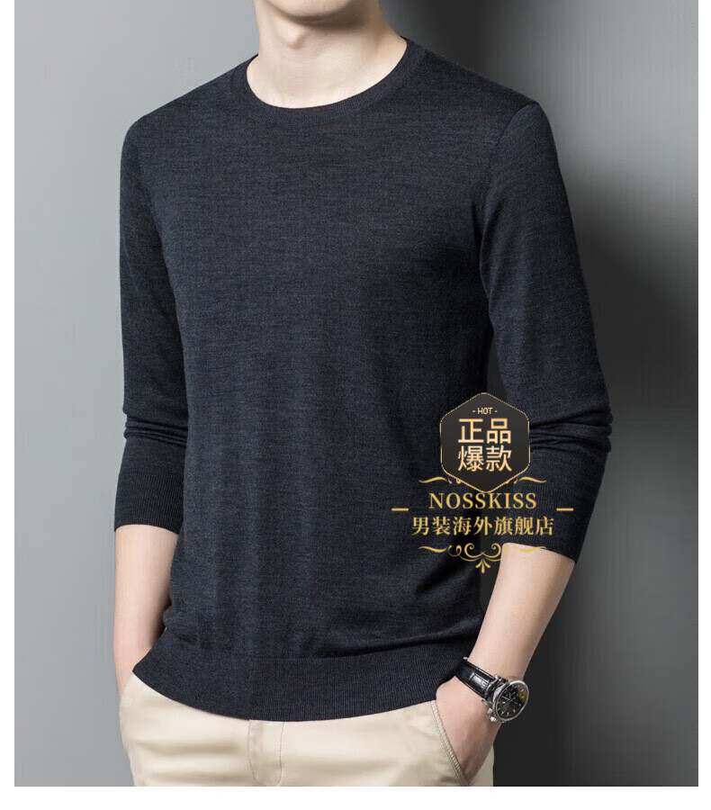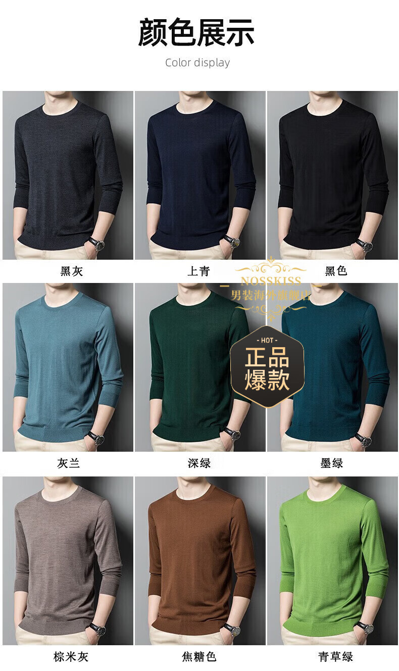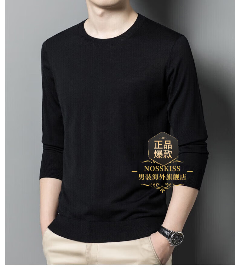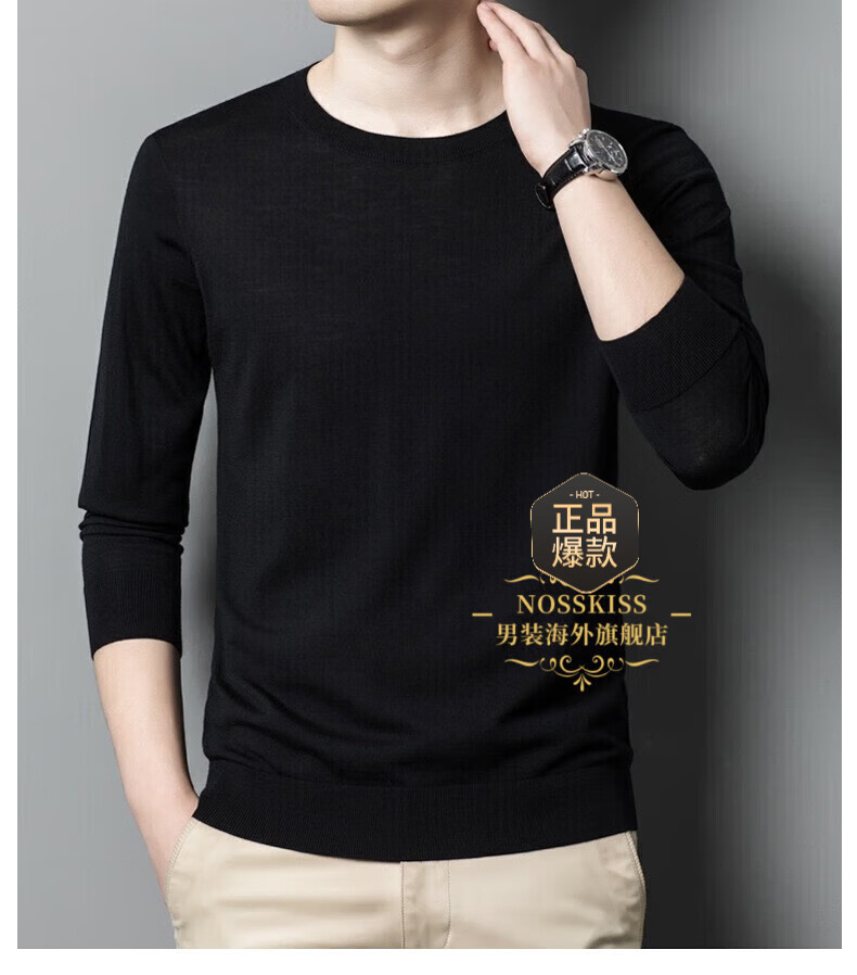UOSO Light Luxury Brand Men's Wool Sweater Men's 2025 Autumn New 80 Count Worsted Pure Wool Thin Black 2XL 180