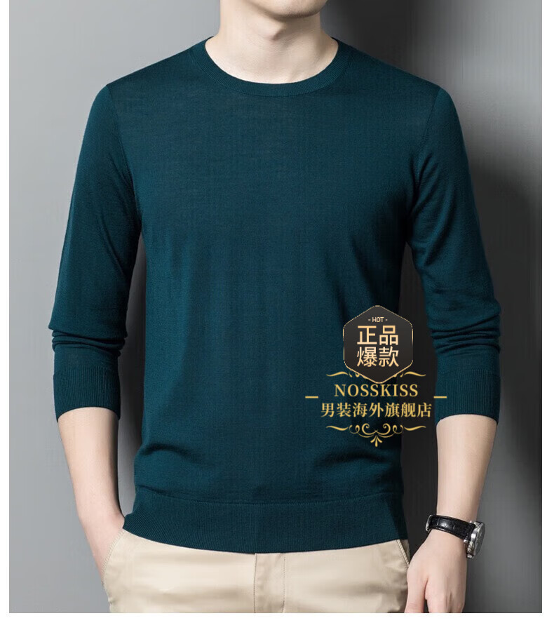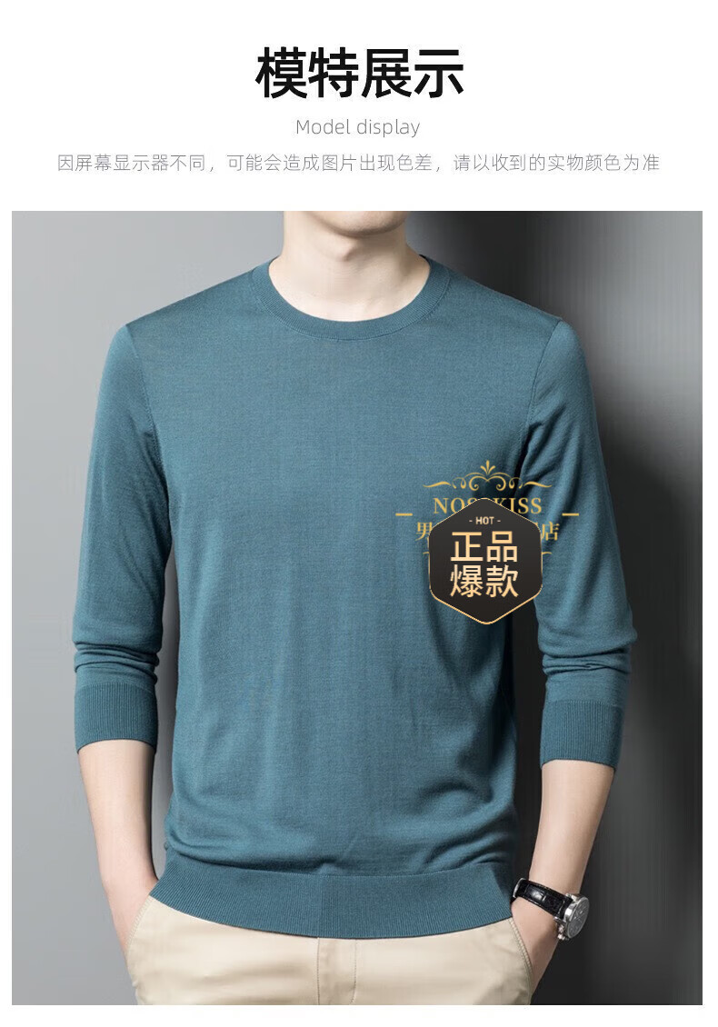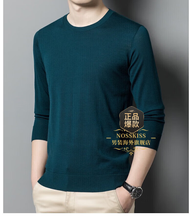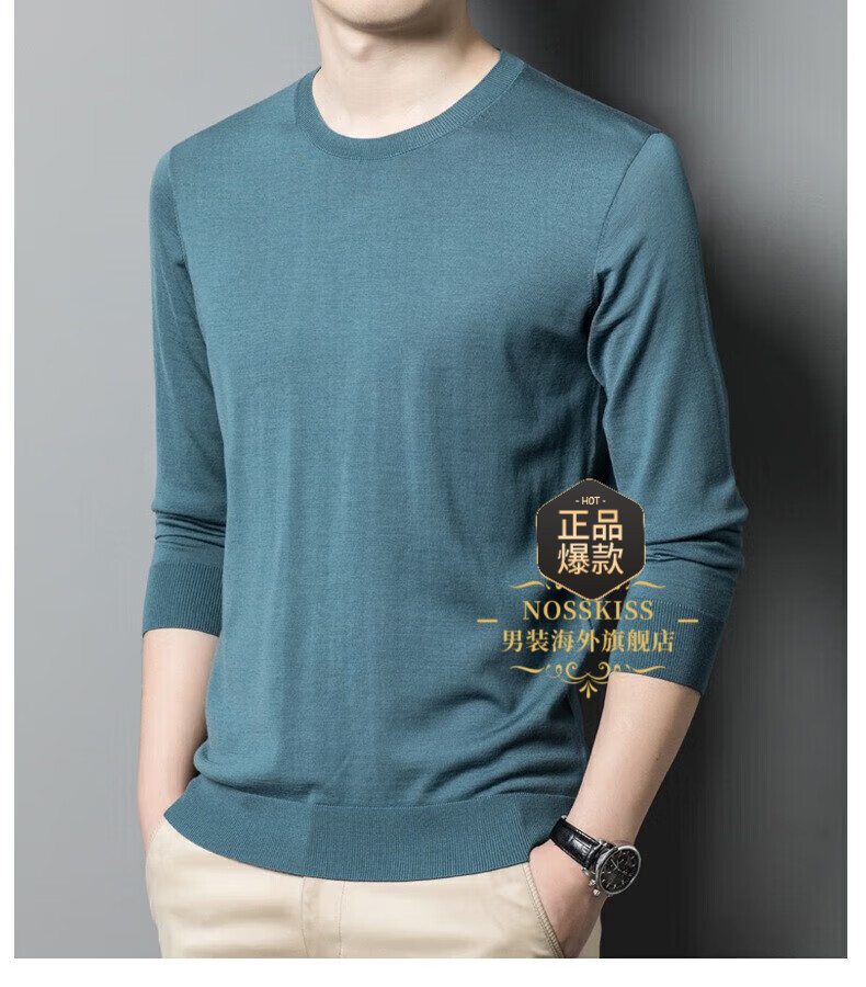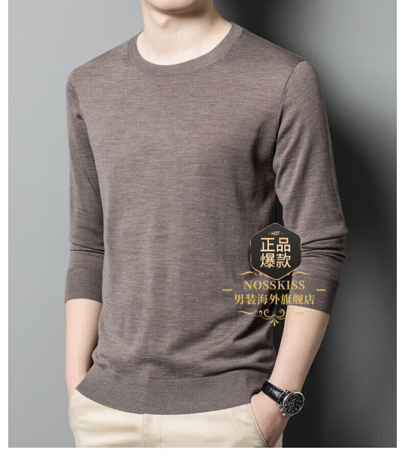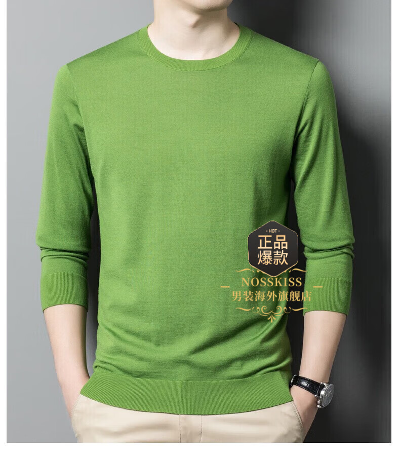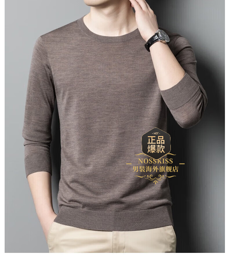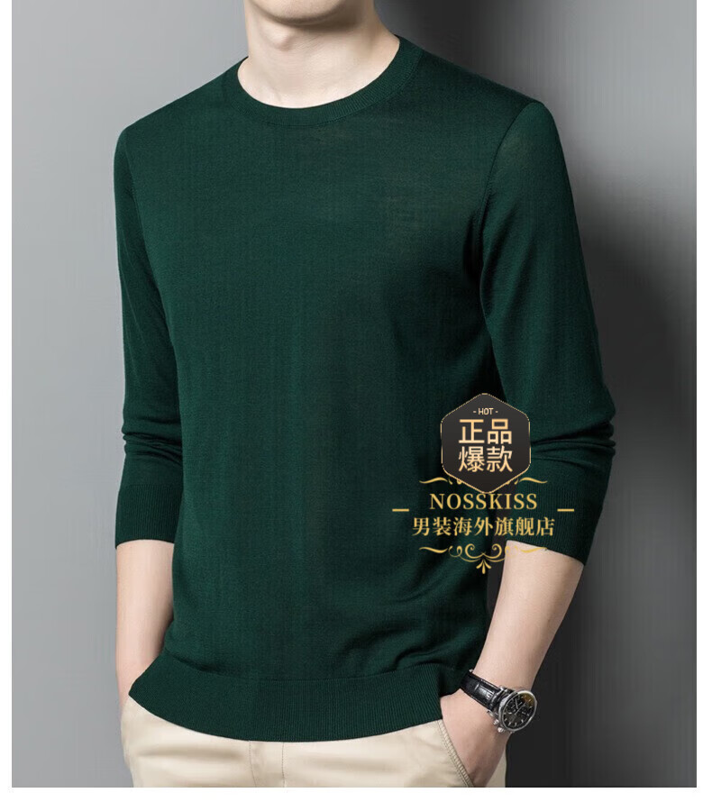 UOSO Light Luxury Brand Men's Wool Sweater Men's 2025 Autumn New 80 Count Worsted Pure Wool Thin Black 2XL 180