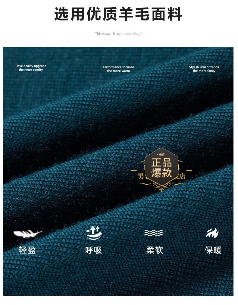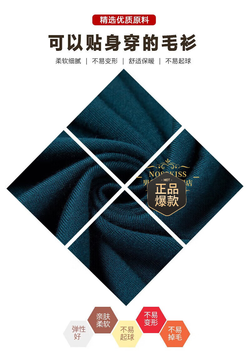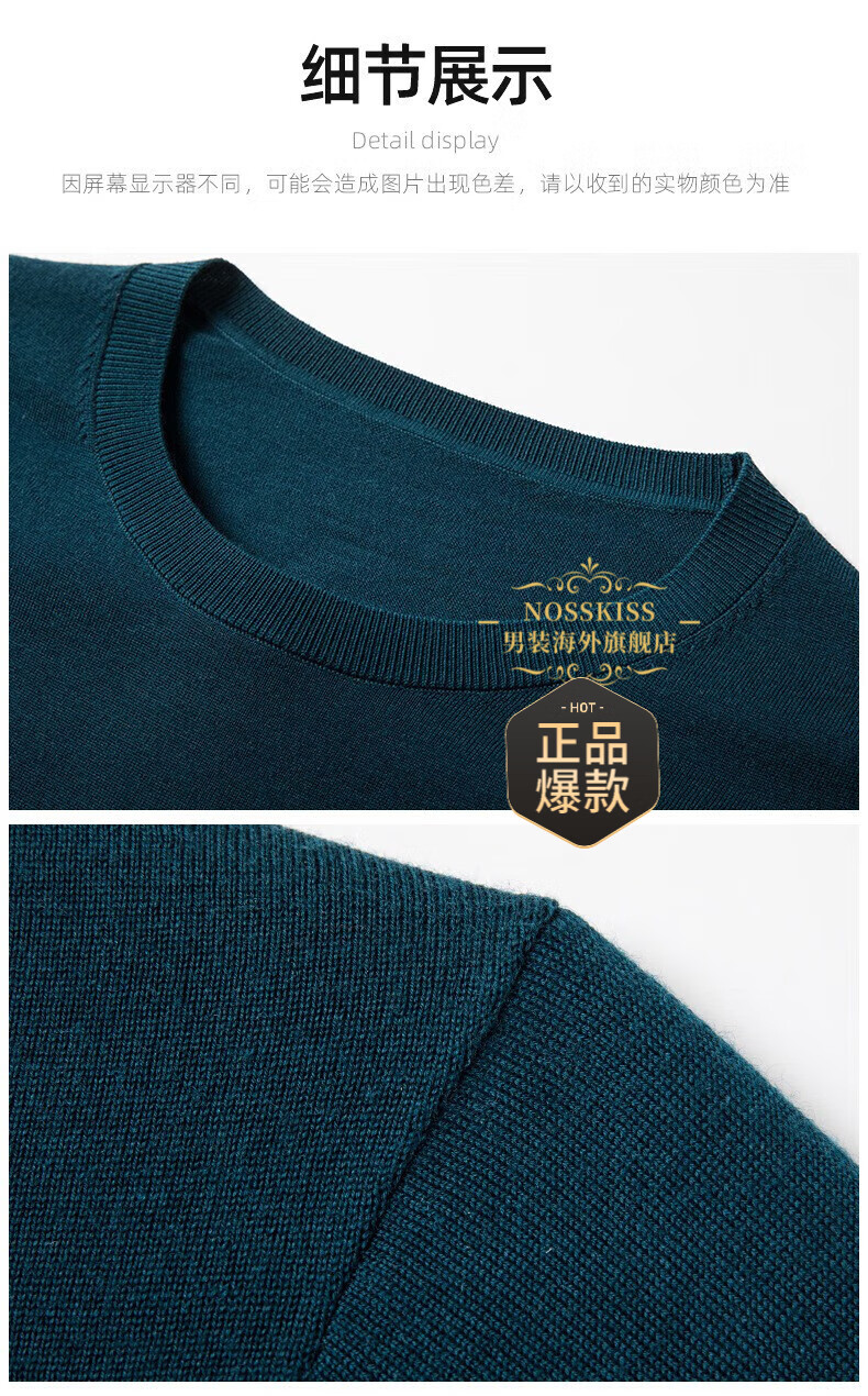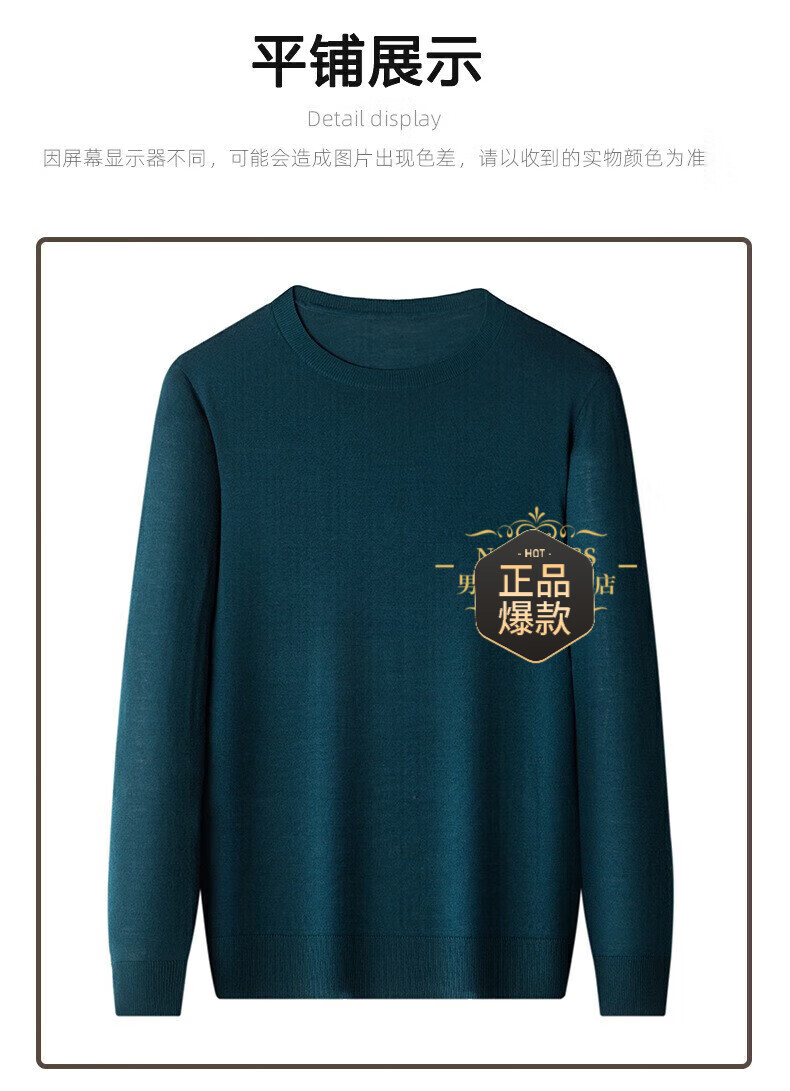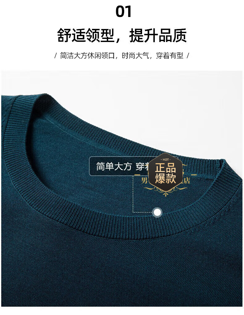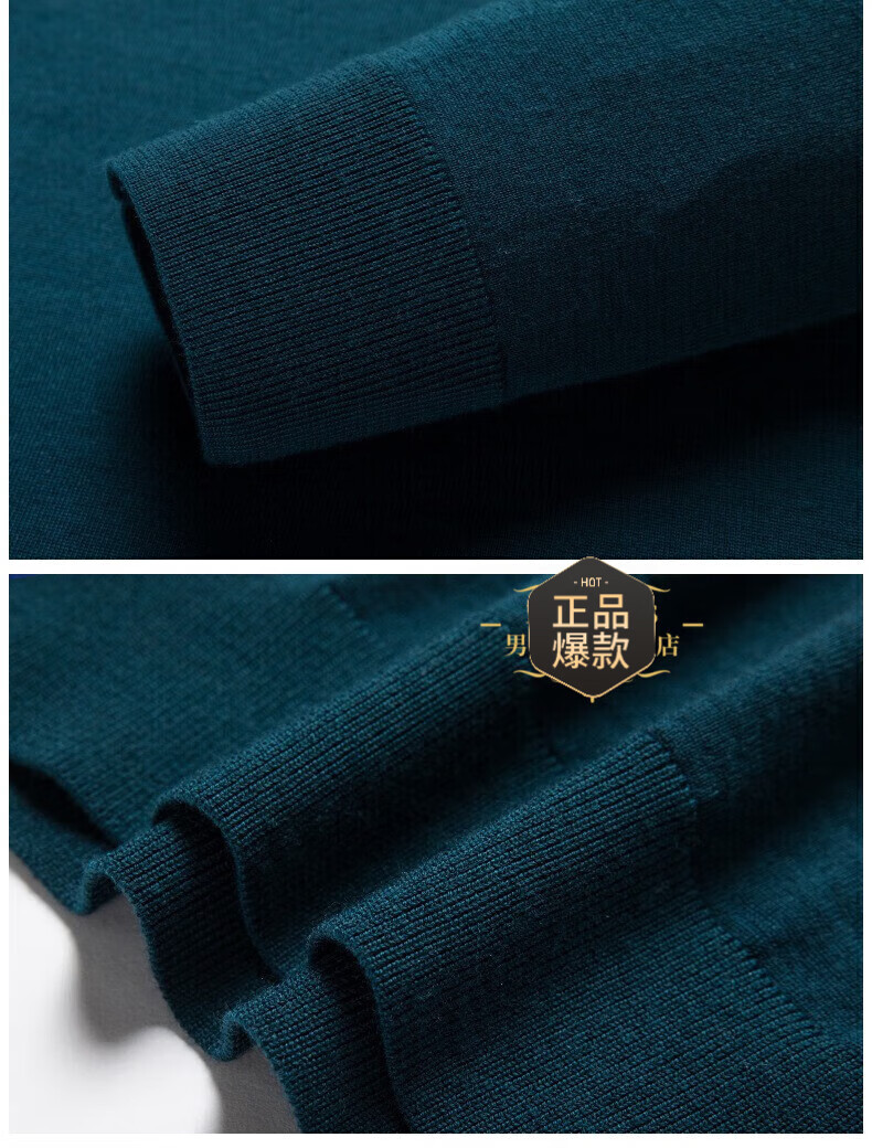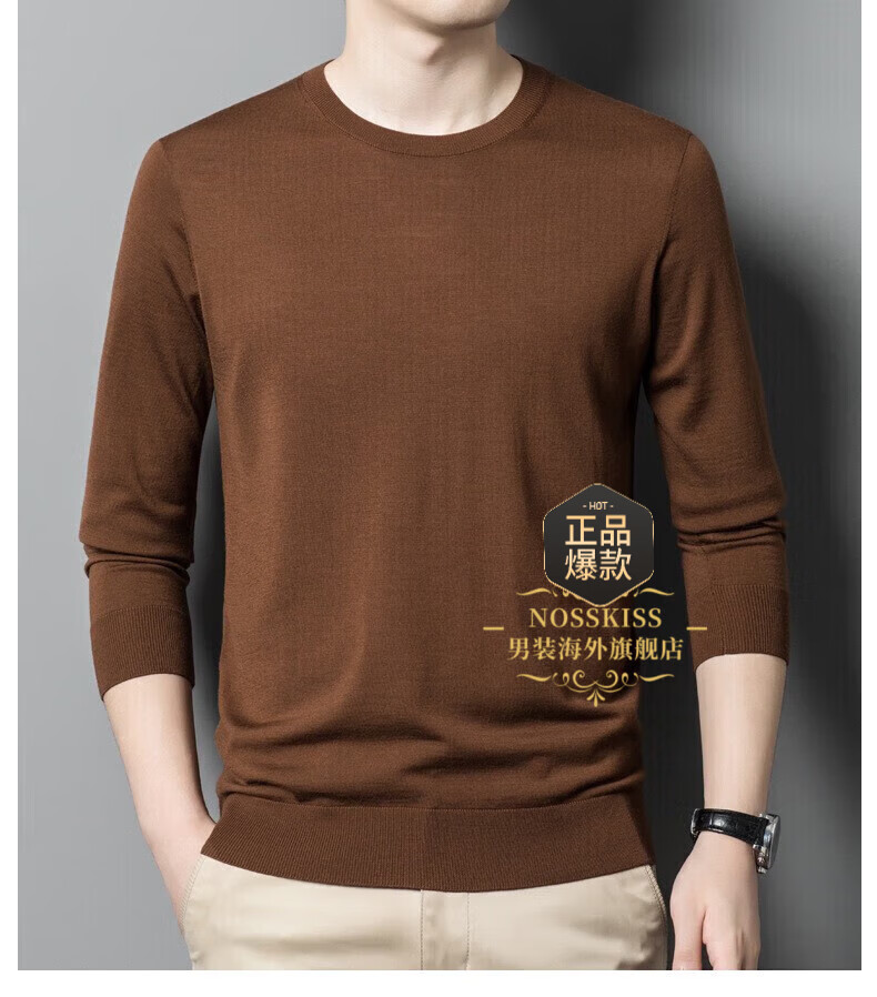 UOSO Light Luxury Brand Men's Wool Sweater Men's 2025 Autumn New 80 Count Worsted Pure Wool Thin Black 2XL 180