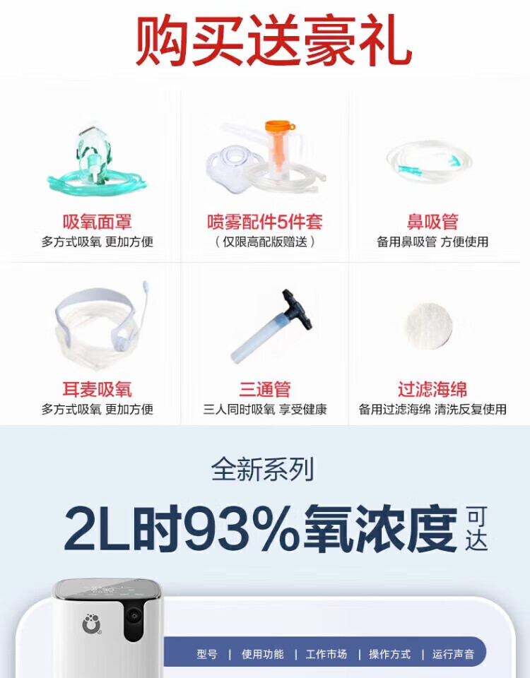 Yuwell 9L home oxygen concentrator is the same model as Beijing's medical grade oxygen all-in-one atomized oxygen for the elderly, young children and pregnant women, 9L adjustable oxygen flow - double atomized model