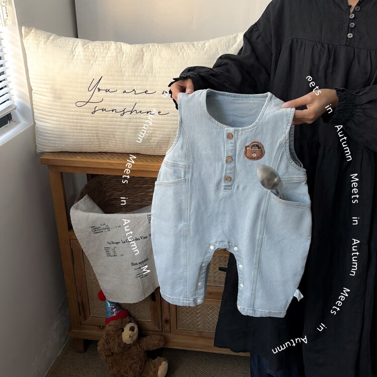 G.duck Little Yellow Duck official infant and children overalls spring and autumn 2025 new male and female baby denim jumpsuit autumn official gray bottoming shirt flagship 73cm
