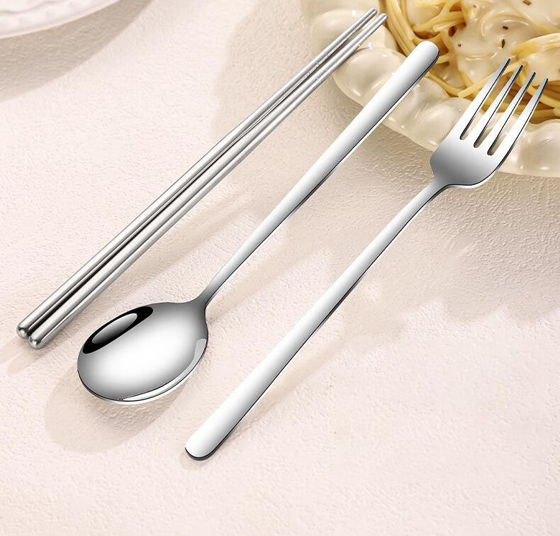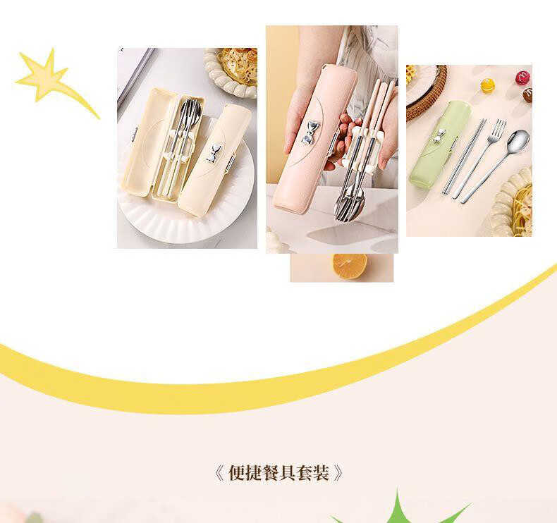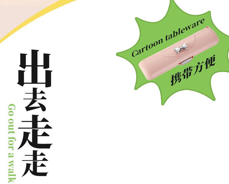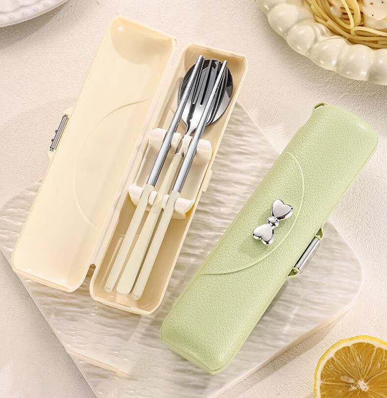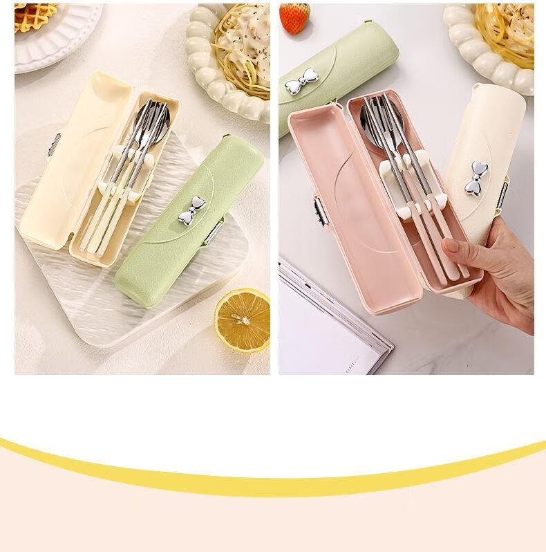 Xinnan primary school student chopsticks and spoon set children's 304 stainless steel portable tableware three-piece set with exquisite storage box for women bow tie tableware three-piece set bean paste powder