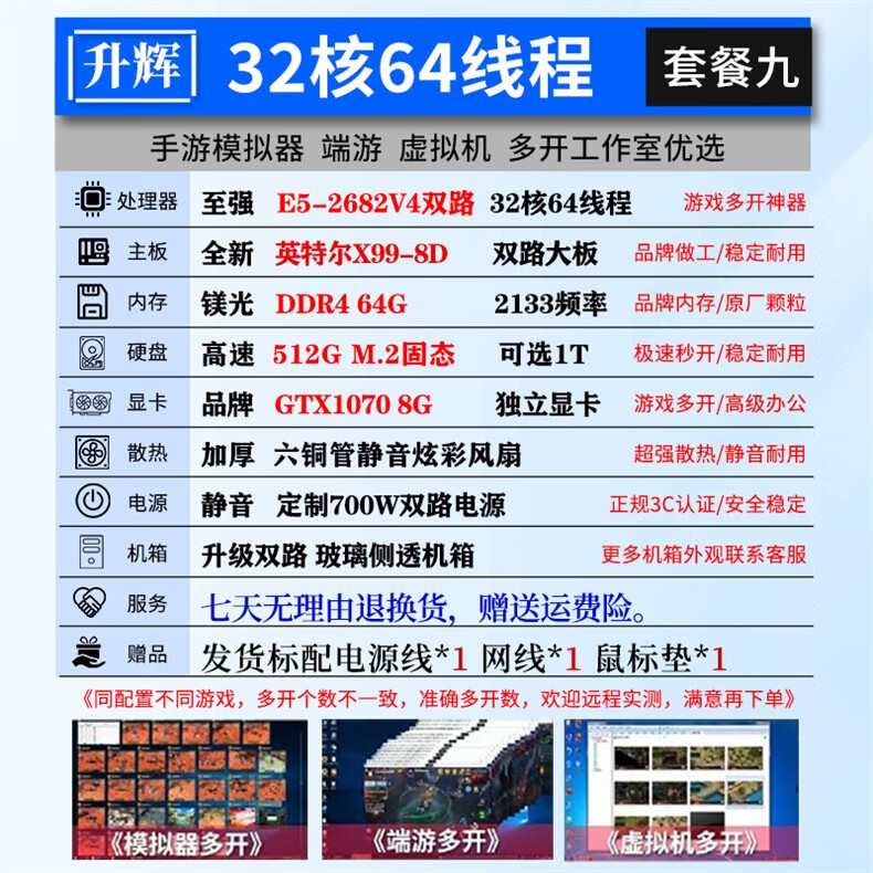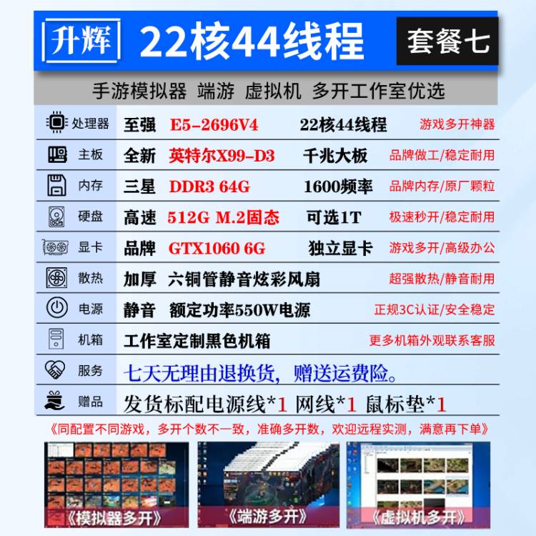 Intel Xeon E5 host 2696V3/2686V4 desktop computer game brick e-sports complete machine multi-open virtual machine 32GB 512GB M.2 solid state_12 core 2673V3+X99