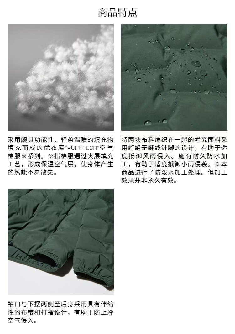 UNIQLO Men's and Women's PUFFTECH Air Padded Hooded Jacket 470118 08 Dark Gray 4XL