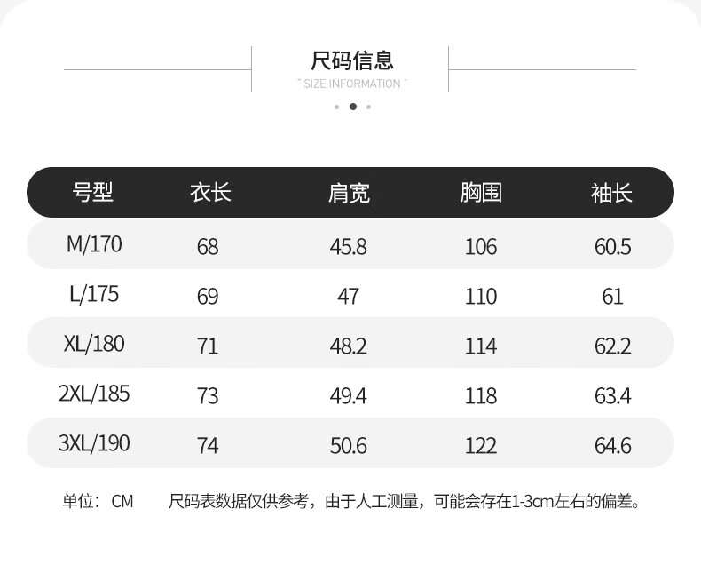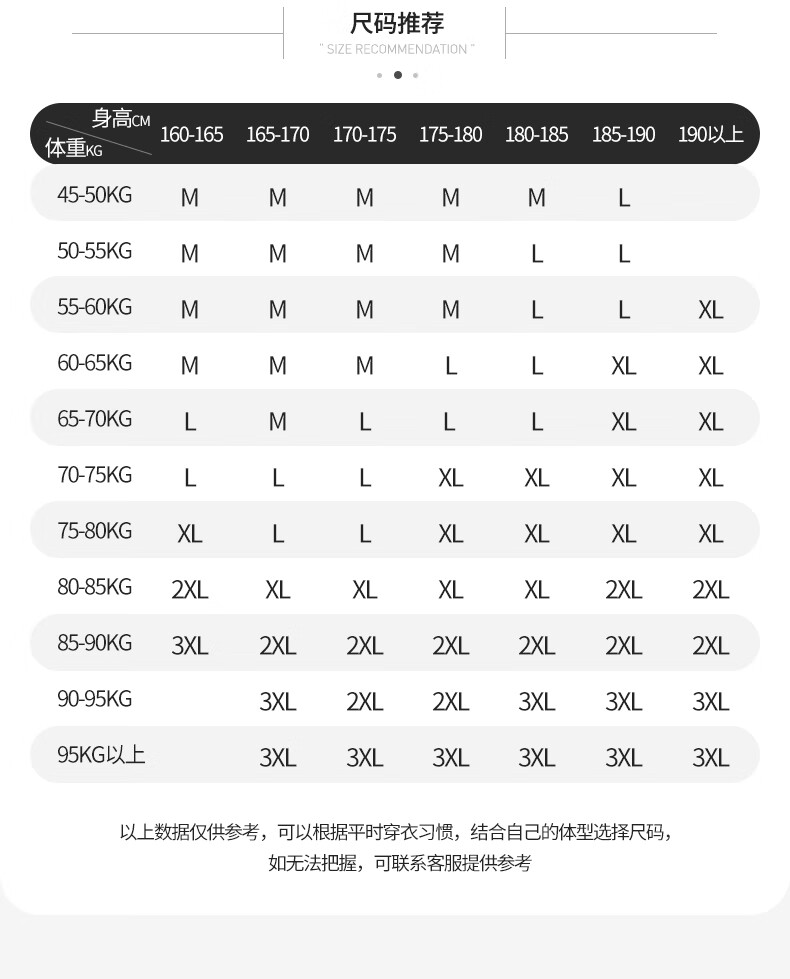 China (cm) 165 / 88-90 170 / 96-98 175 / 108-110 180 / 118-122 185 / 126-130