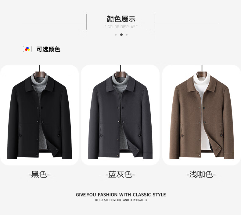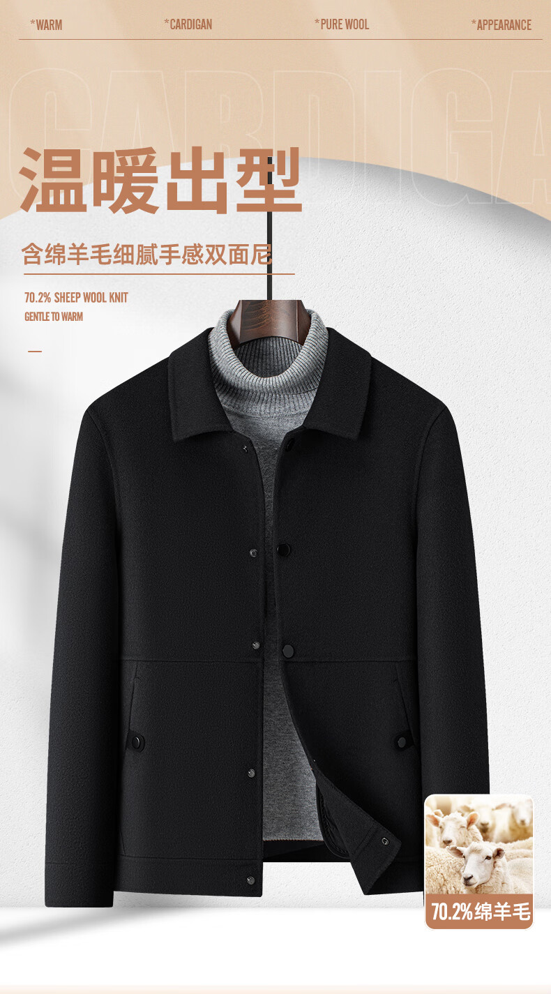 SHANSHAN Shanshan short wool coat men's 2026 spring business men's warm simple casual versatile woolen coat black L /175