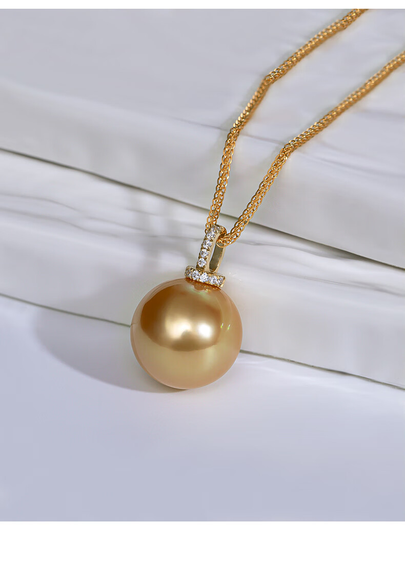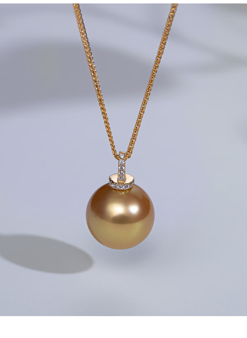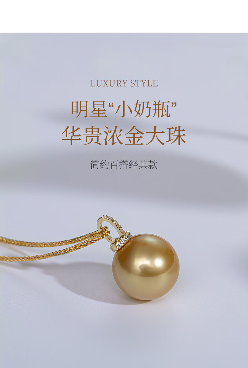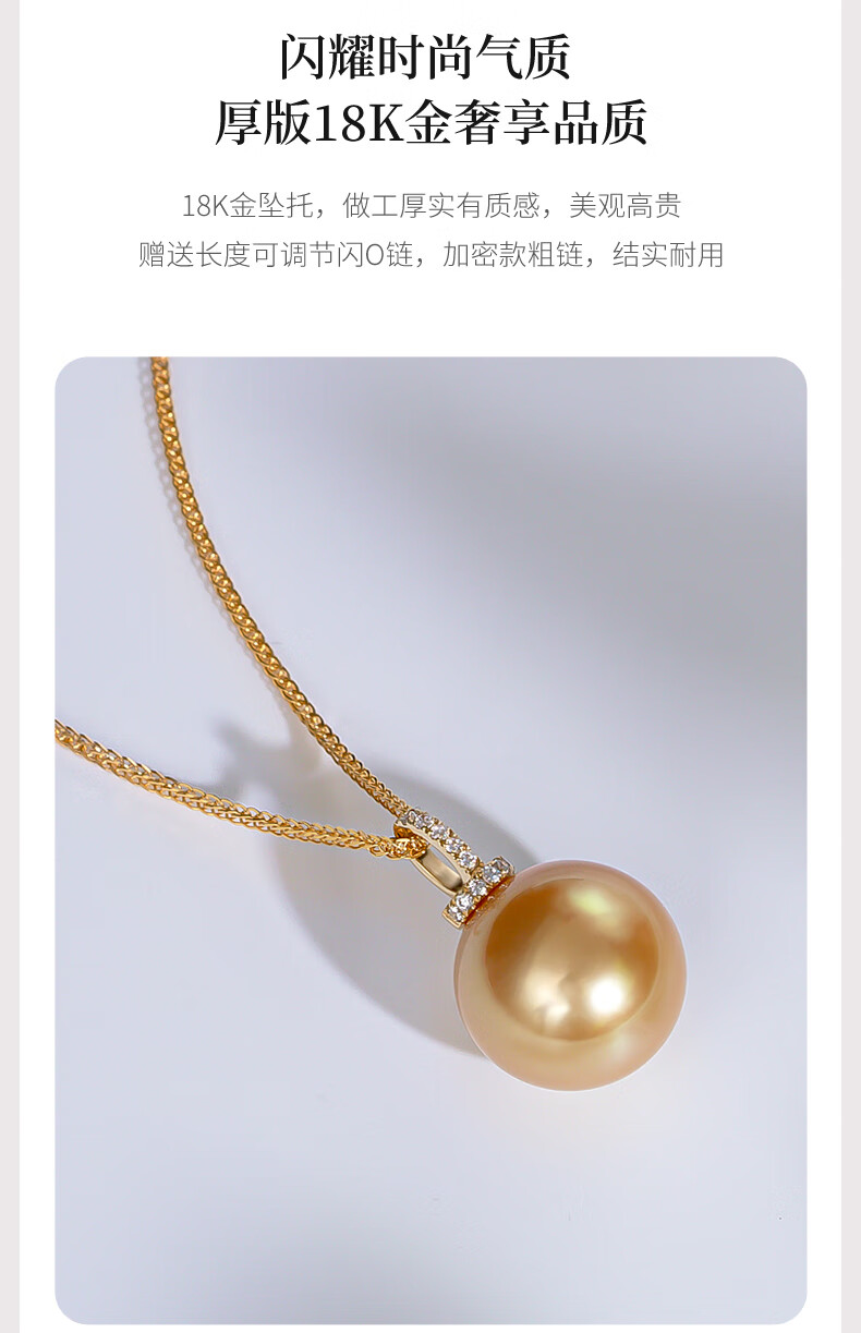 Nanxi Internet celebrity baby bottle style 18K gold South Sea seawater gold bead pendant for women single round thick gold necklace gift A grade/slightly flawed thick gold 13-14mm +18k gold Chopard chain