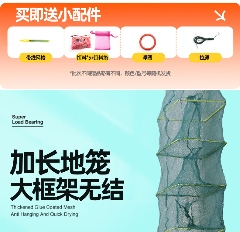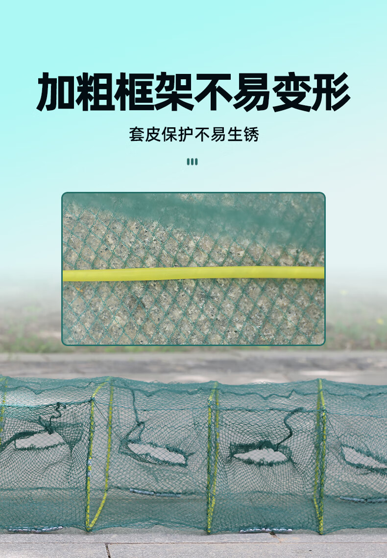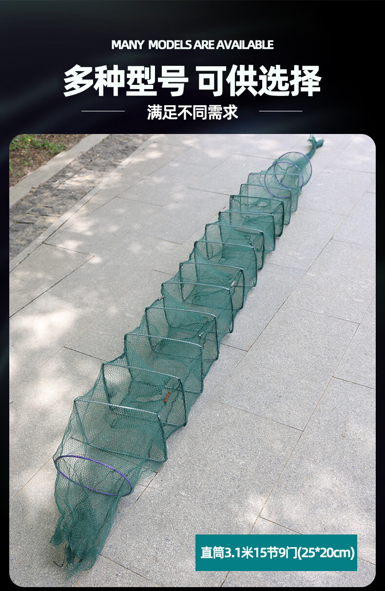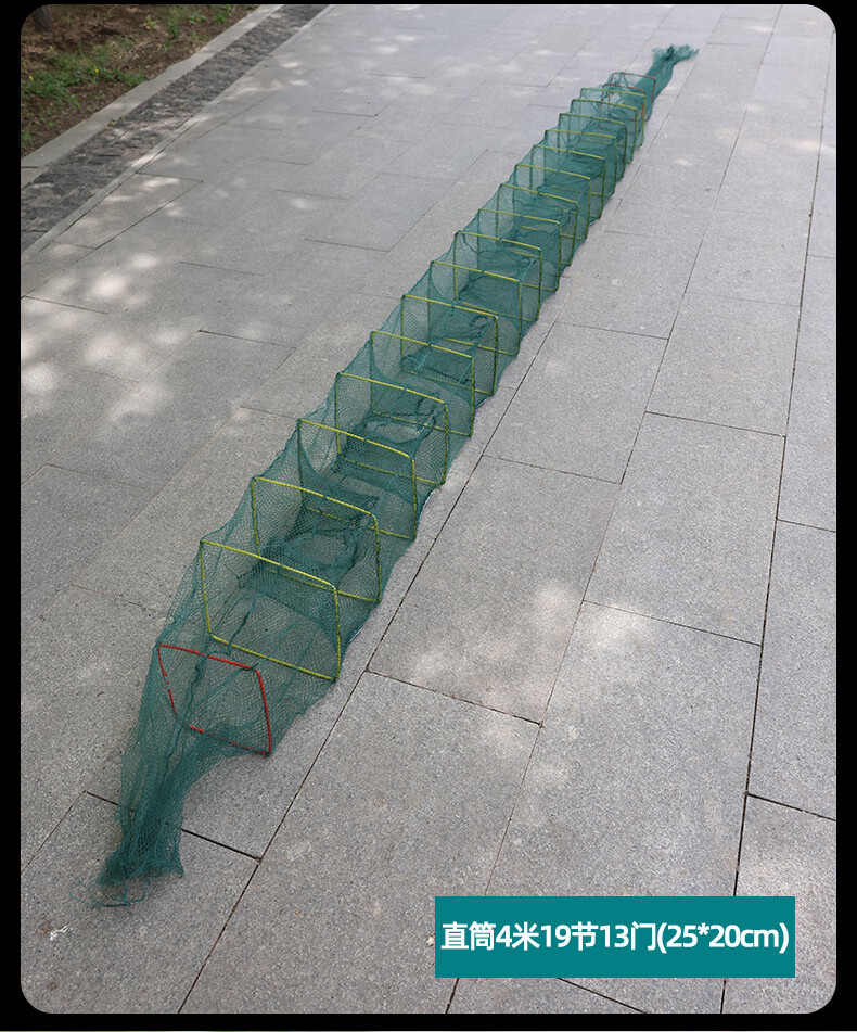 Shensha ground net cage fish and shrimp net cage ground dragon fish net cage lobster net does not come out only fishing net fishing net cage shrimp cage eel cage straight tube 4 meters 19 sections 13 doors 2.3 Jin Jin equals 0.5 kg (25*20)