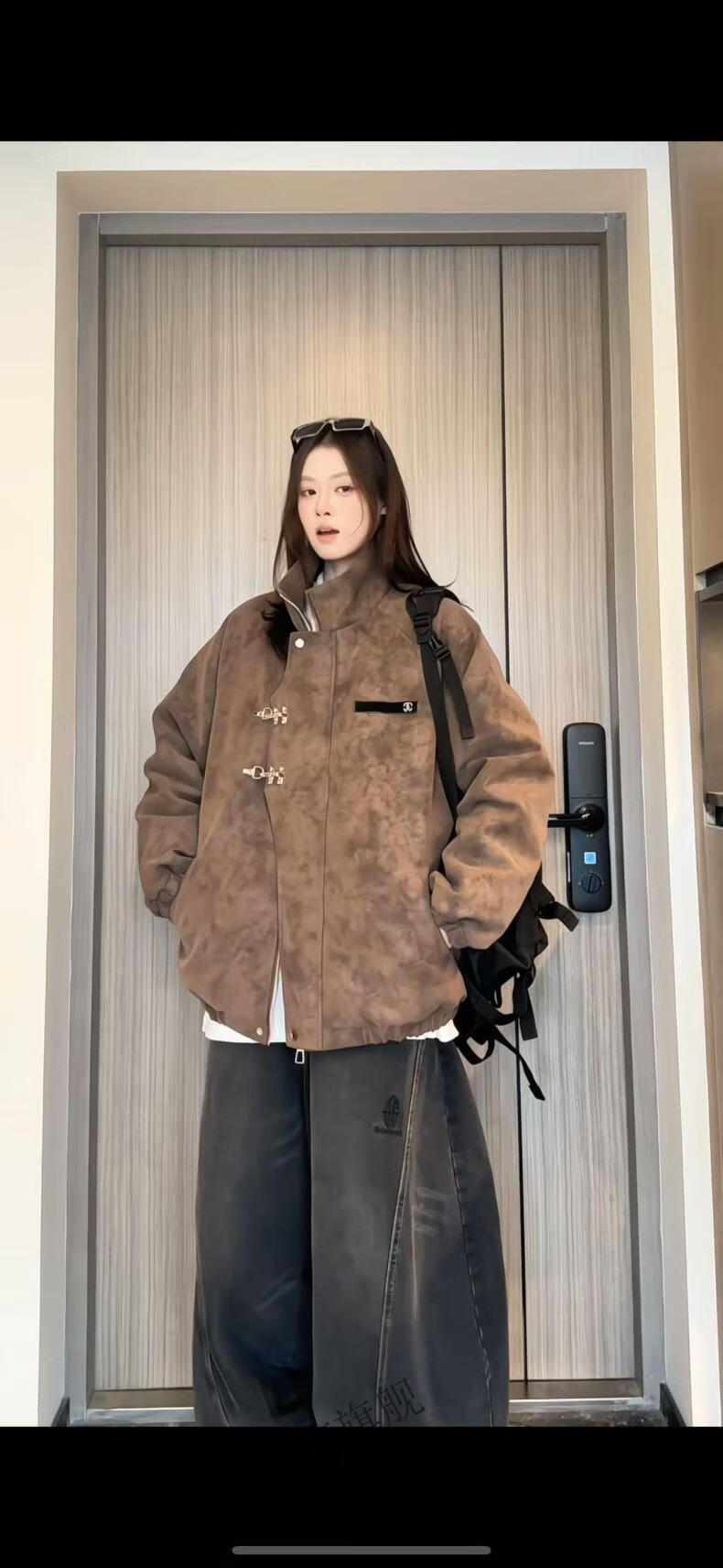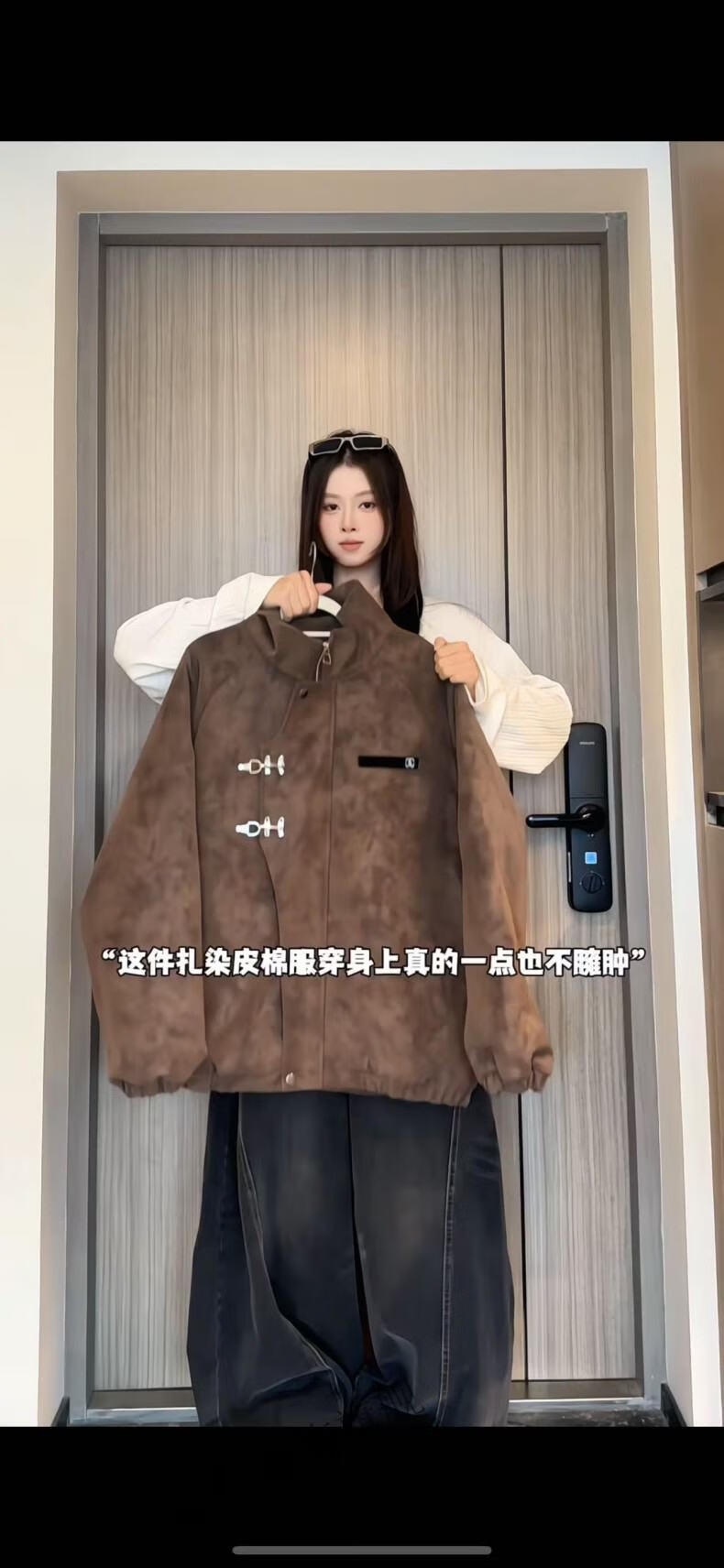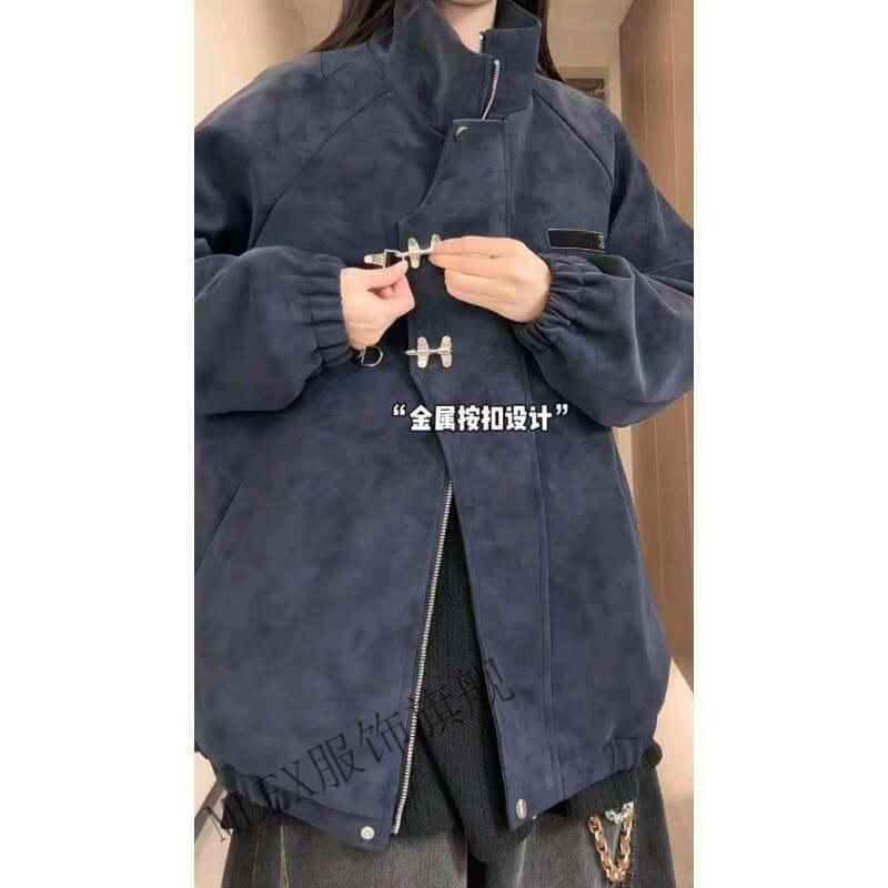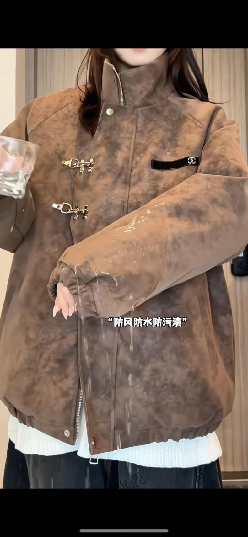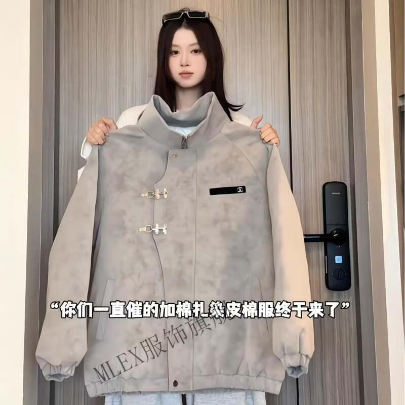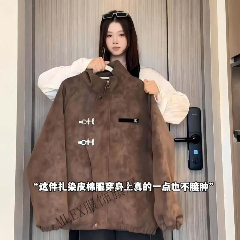 MLEXPLQV2025 Autumn and Winter Cotton PU Leather Jacket Chinese Style Casual Men's Jacket Versatile Stand Collar Couple Tie Dye Navy Blue Cotton L