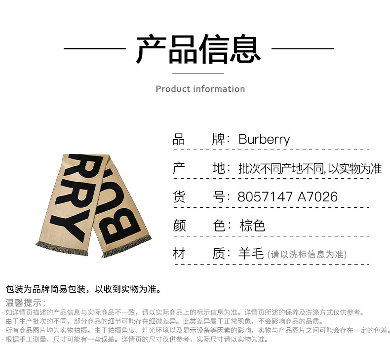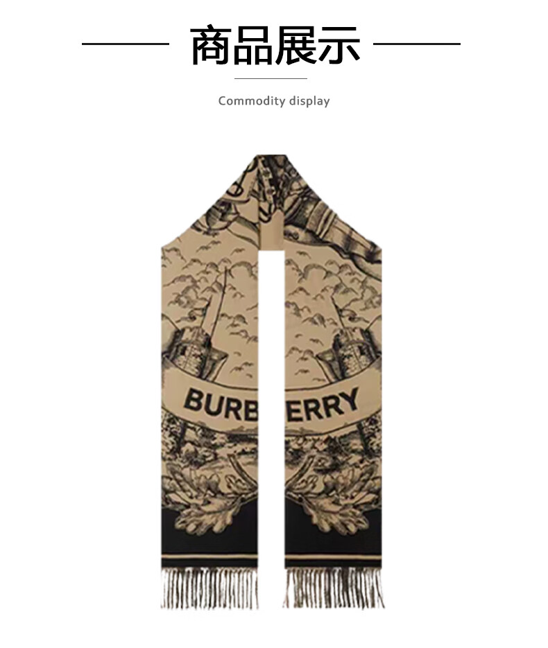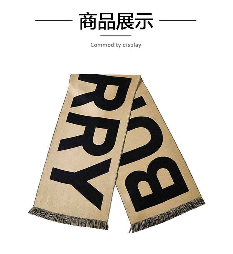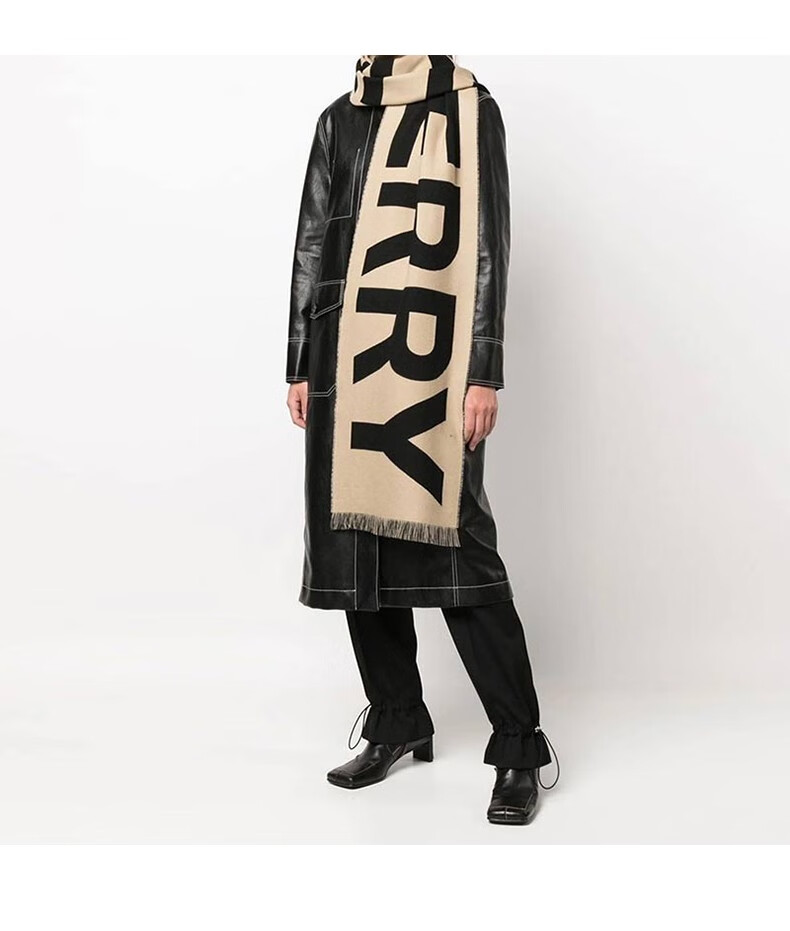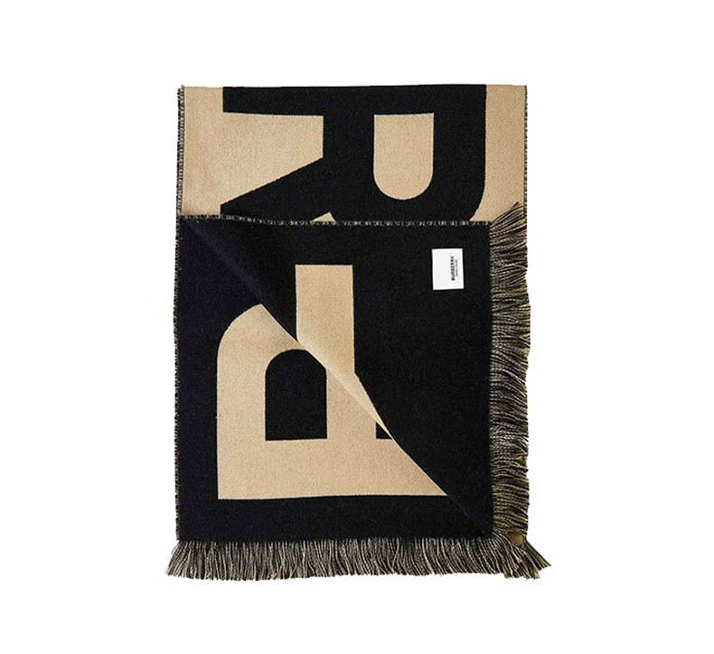 BURBERRY Double Eleven genuine women's scarf with large letters logo print, fashionable and versatile double-sided wool shawl, warm scarf, beige UNI