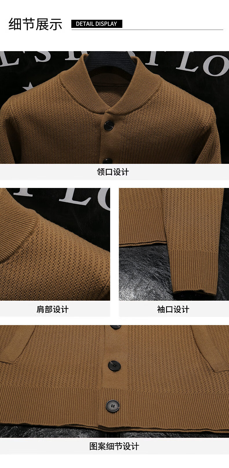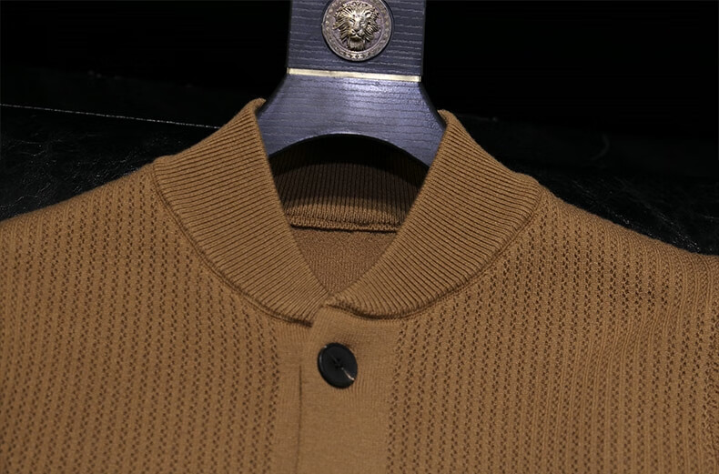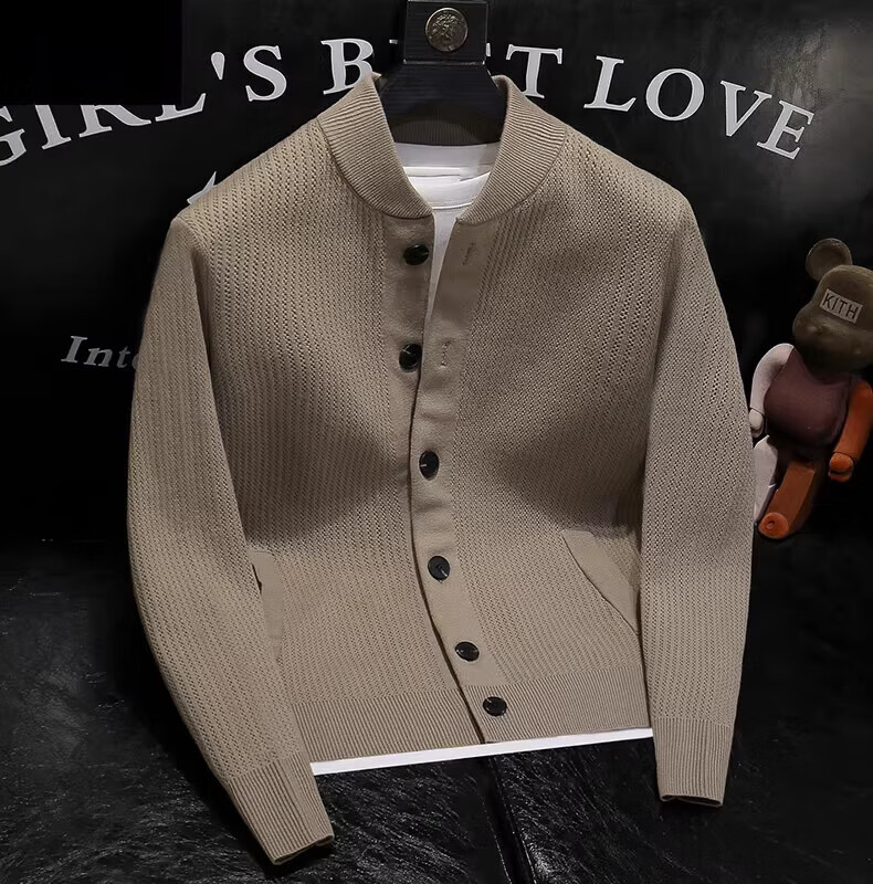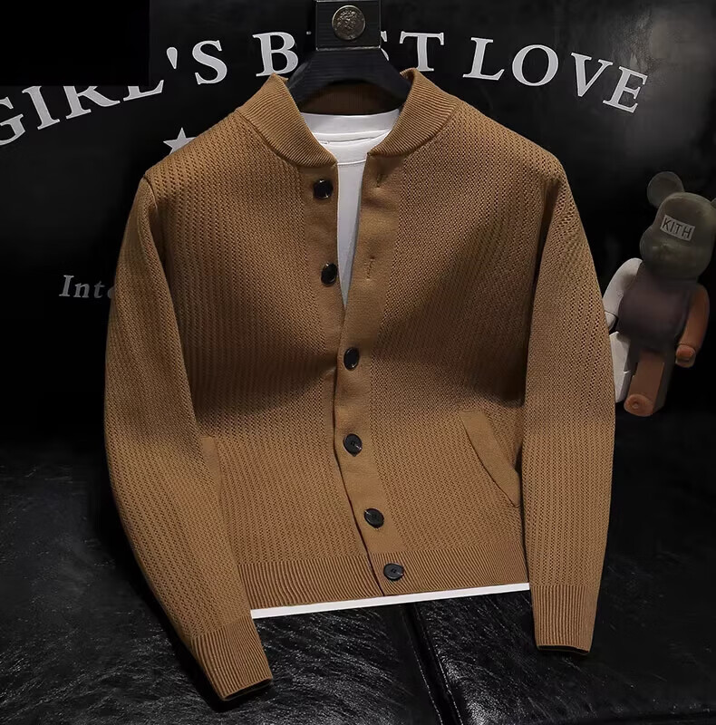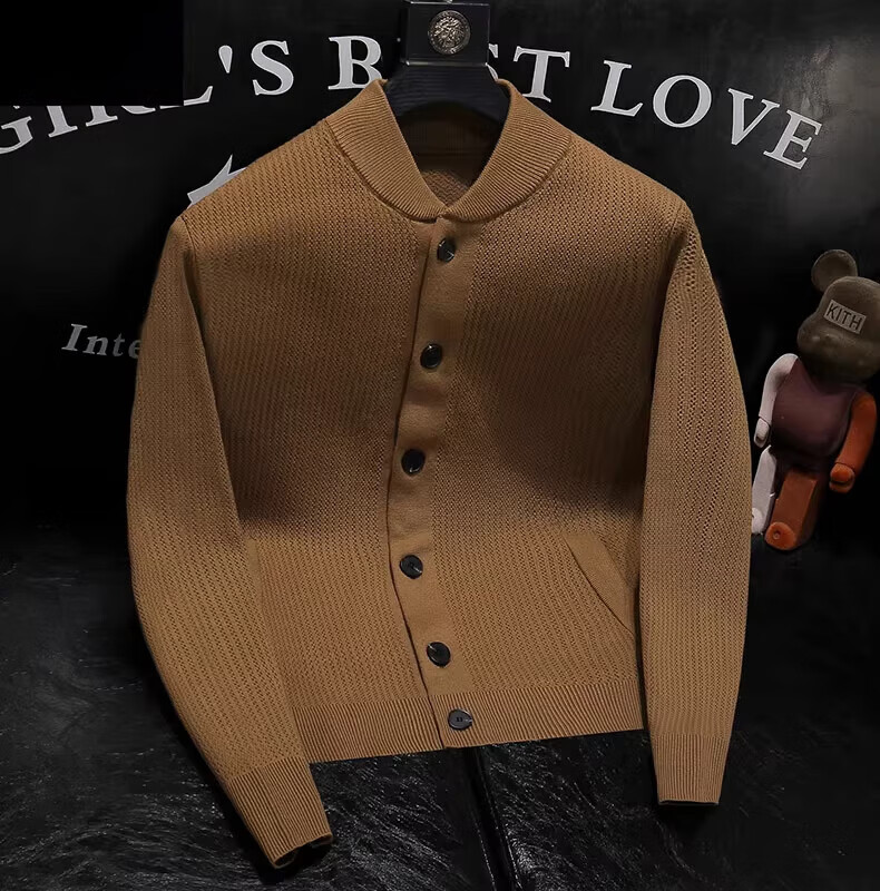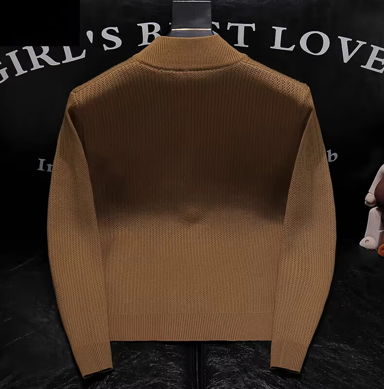 Pierre Cardin 2025 Autumn and Winter New Solid Color Stand Collar Knitted Cardigan Jacket Men's Off-Duty Versatile Sweater Henry Collar Sweater Trendy Caramel Color M 100-115Jin Jin is equal to 0.5 kg