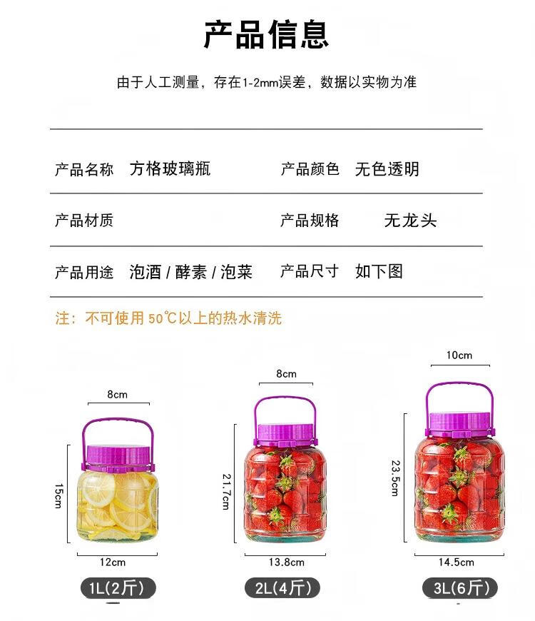 Wine jar, wine jug, sealed wine utensils, white wine large-capacity sealed wine jar, glass wine jar, thickened special 2Jin Jin equals 0.5kg (1L) - no faucet, thickened bottle