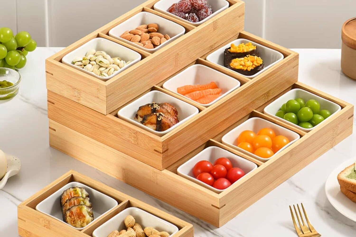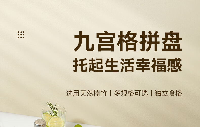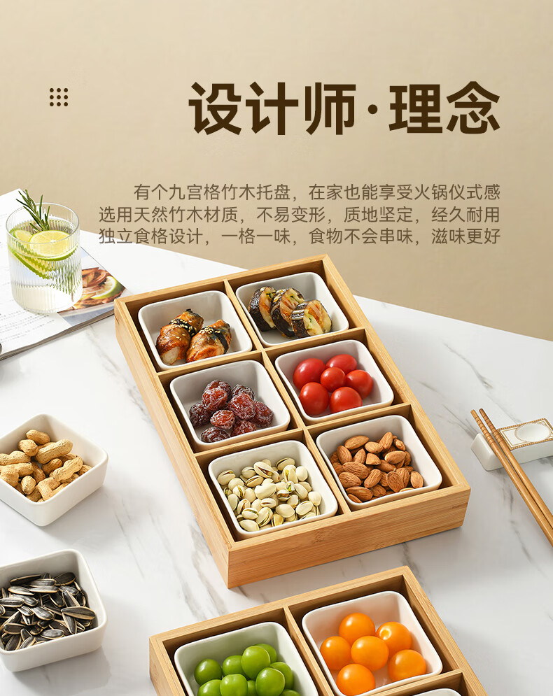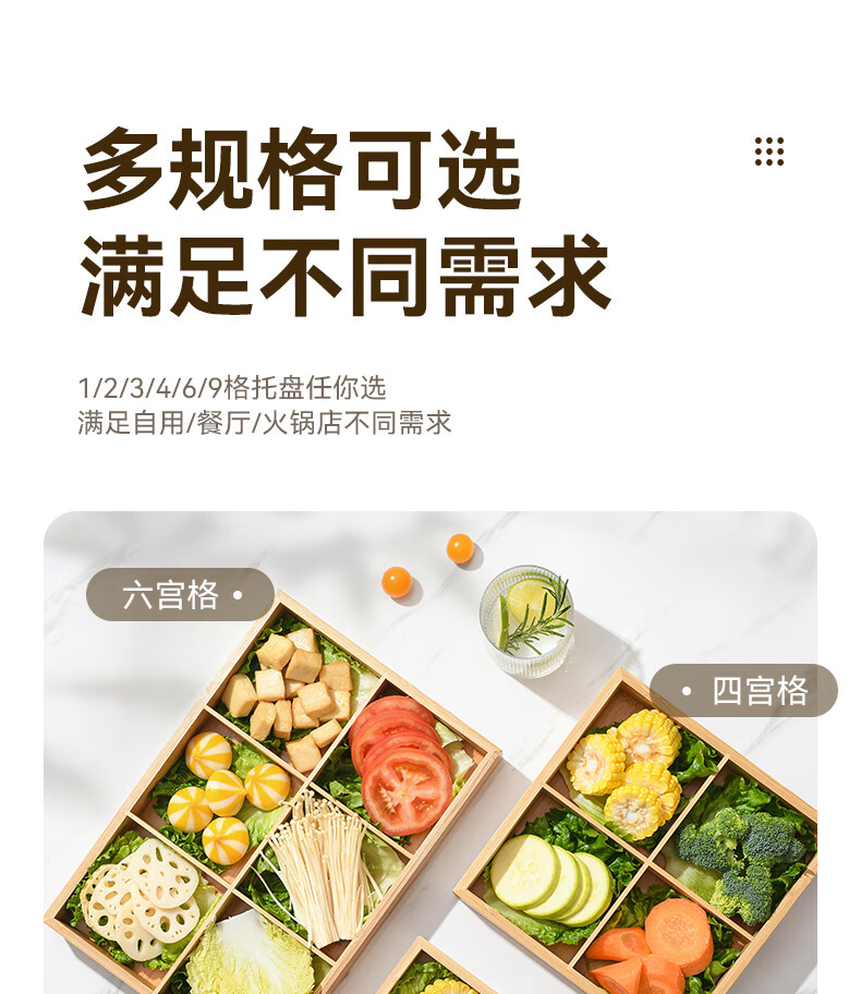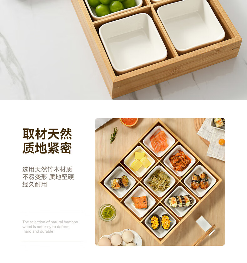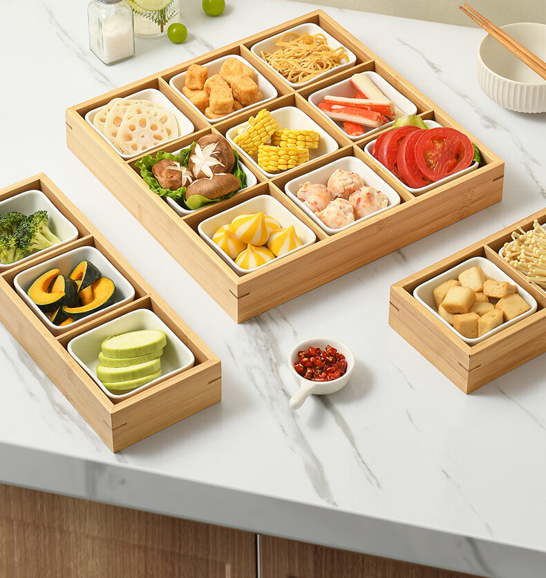 Nine-grid tray tableware, hot pot side dish platter, bamboo wooden tray around the stove, tea snack box, dried fruit plate, wooden tray, hot pot preparation tray, nine-grid natural bamboo, waterproof and mildew-proof