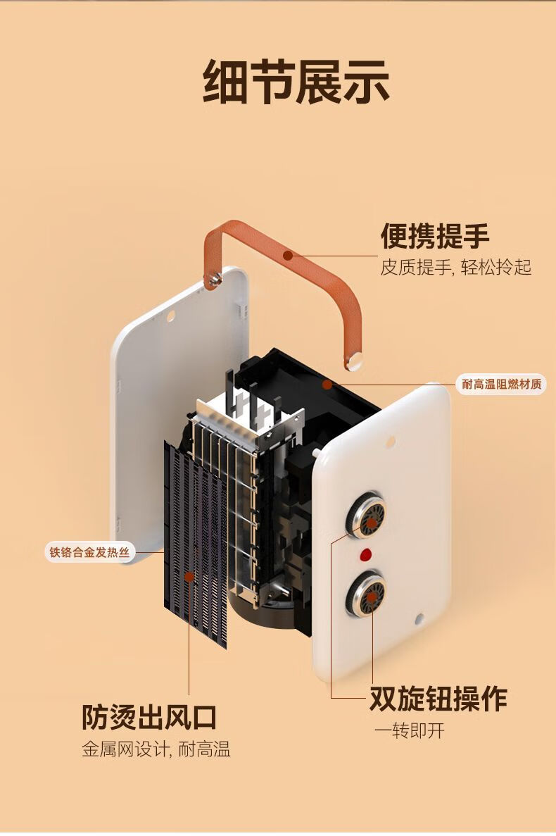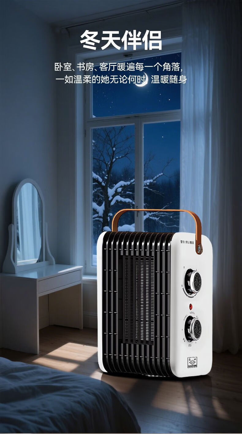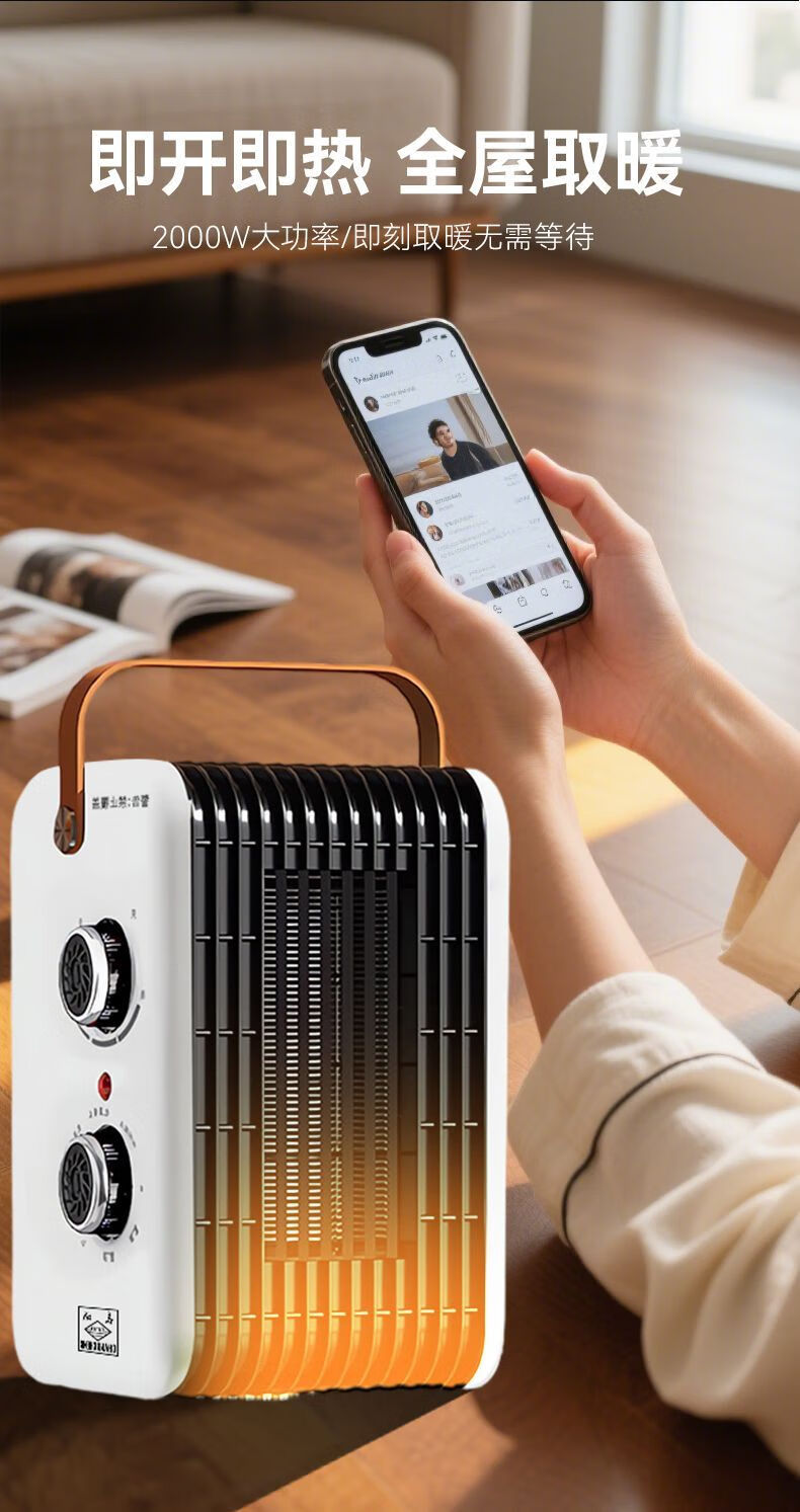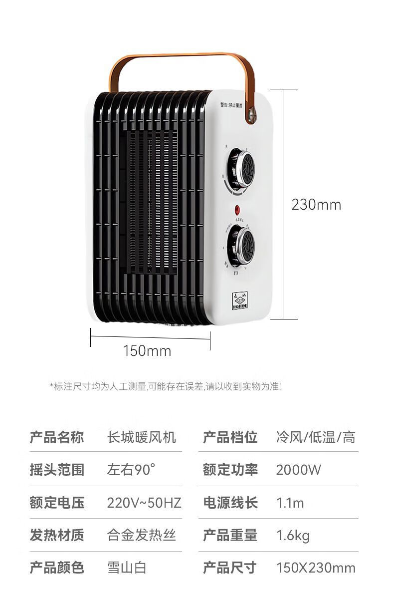 Great Wall Heater Electric Heater Home Small White Heater Small Sun Office Bathroom Energy Saving Small Hot Air Fan Single Knob Ordinary Model No Shaking Head Short Power Cord Light Sound and Low Noise
