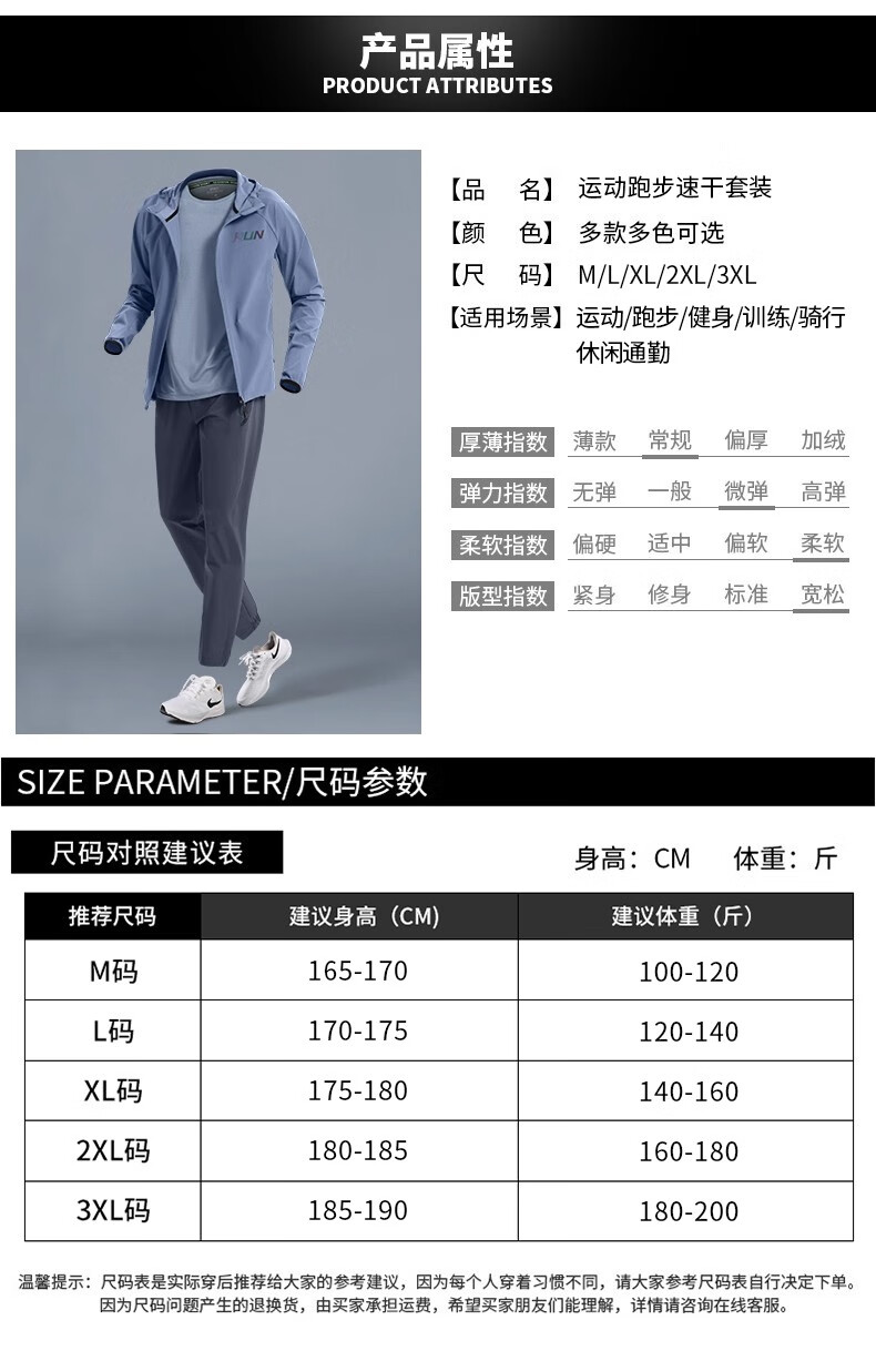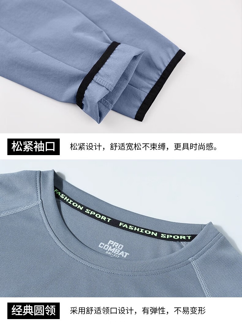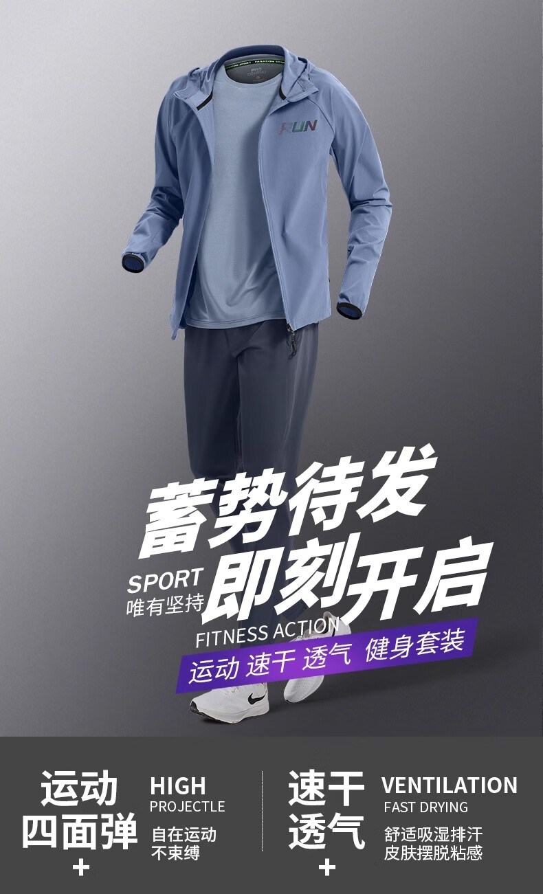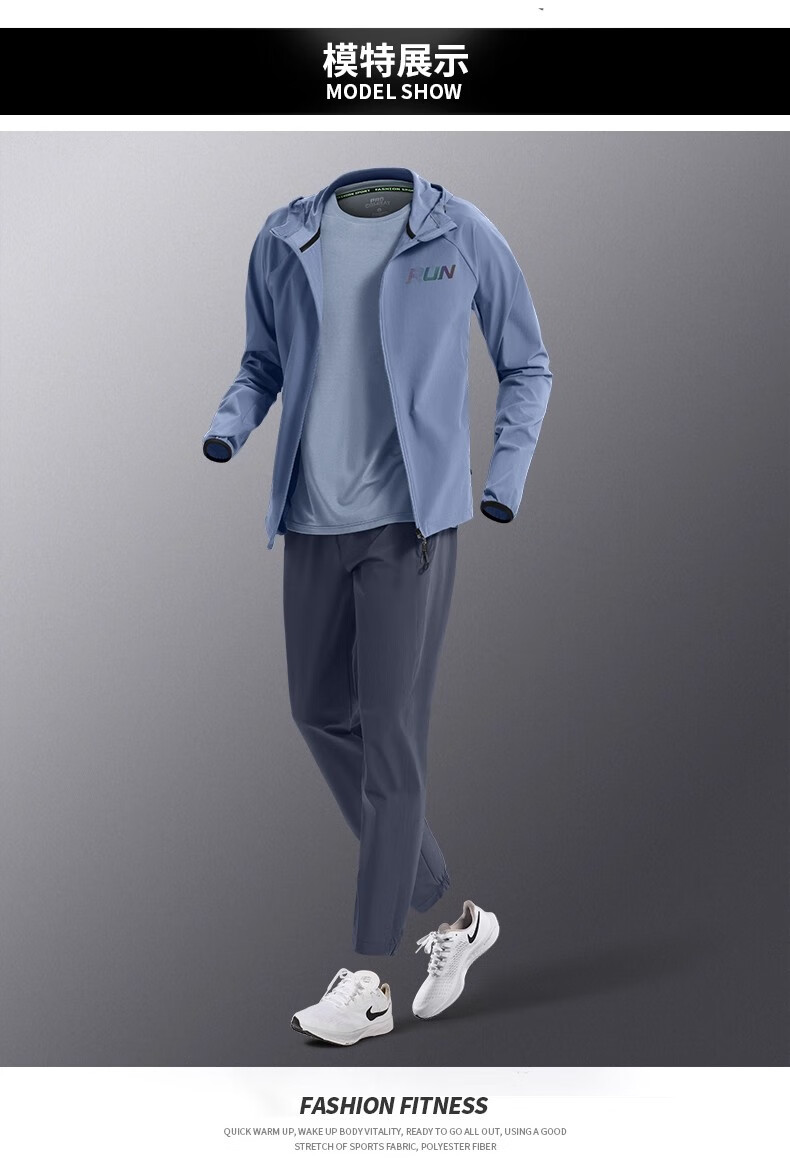 GPHF Japanese sportswear suit men's autumn and winter running jacket fitness clothes new quick-drying long-sleeved outdoor cycling suit blue and gray sports three-piece set quick-drying and breathable M 100-120Jin Jin equals 0.5 kg