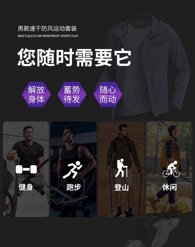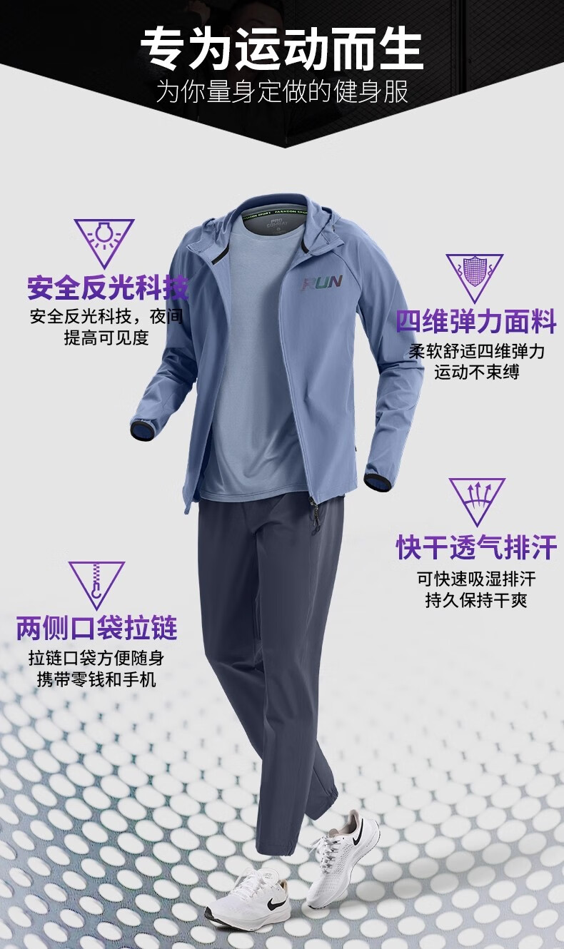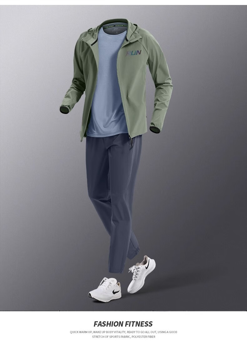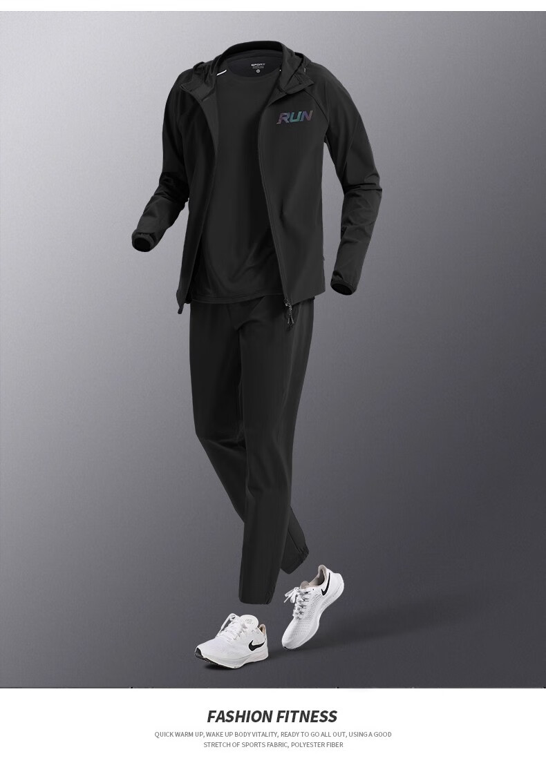 GPHF Japanese sportswear suit men's autumn and winter running jacket fitness clothes new quick-drying long-sleeved outdoor cycling suit blue and gray sports three-piece set quick-drying and breathable M 100-120Jin Jin equals 0.5 kg