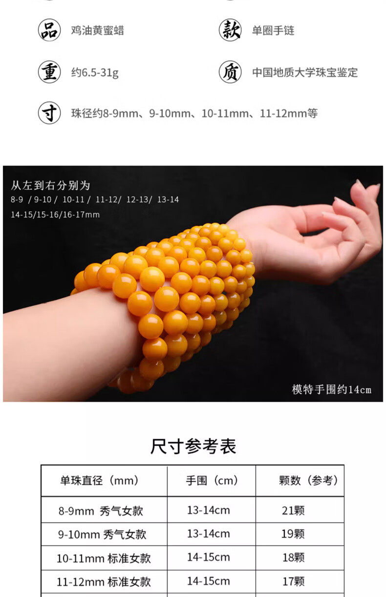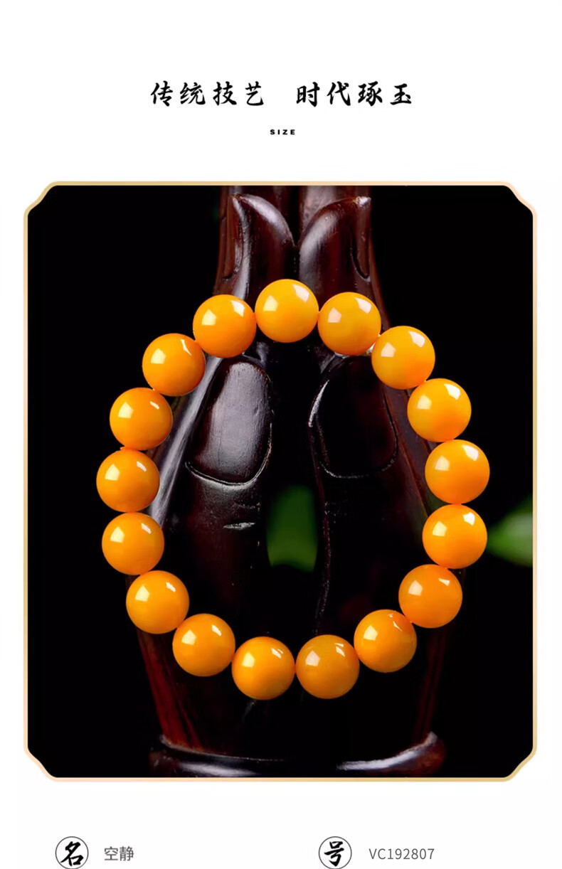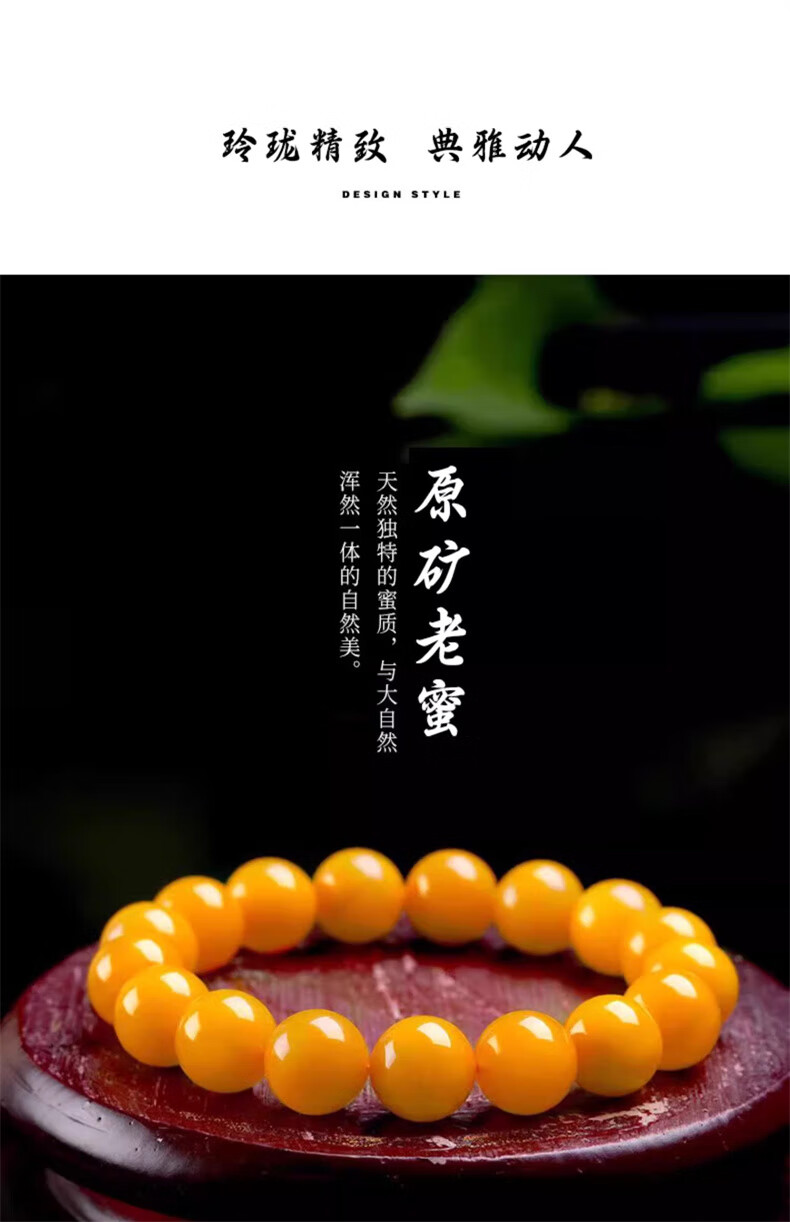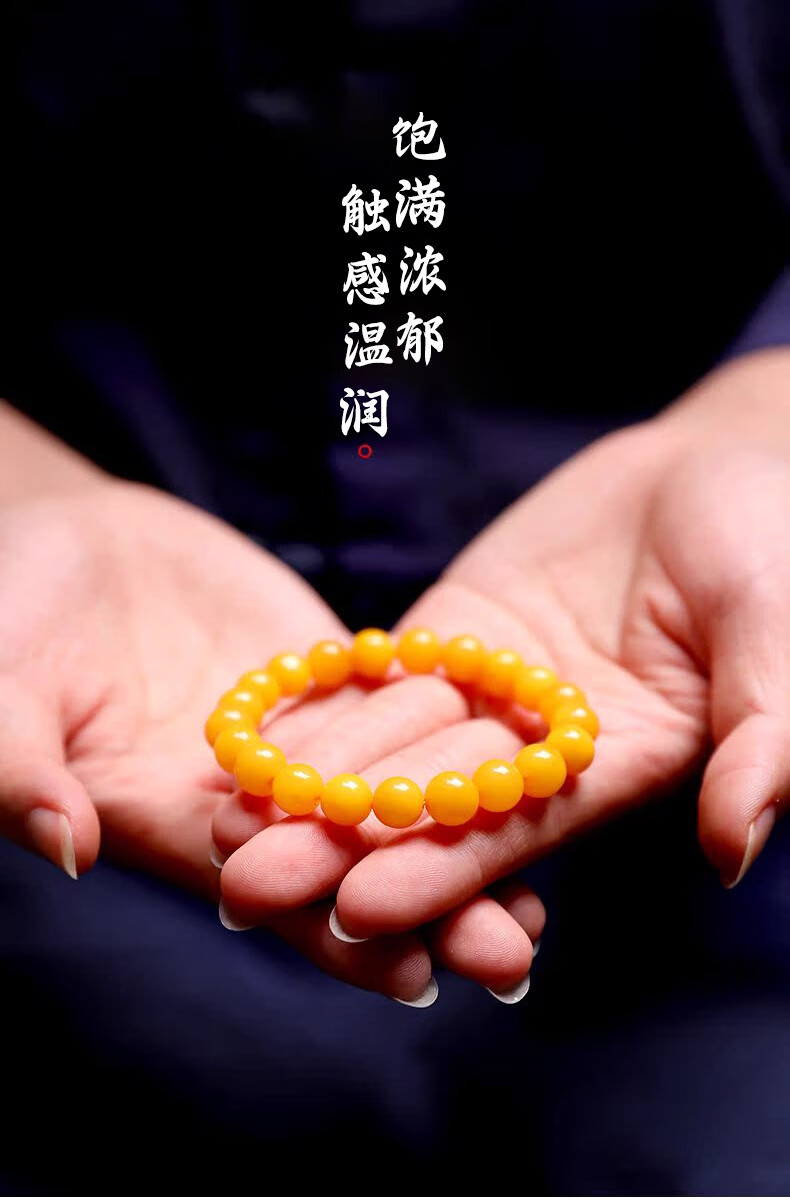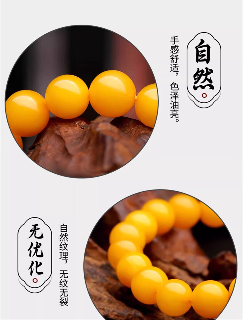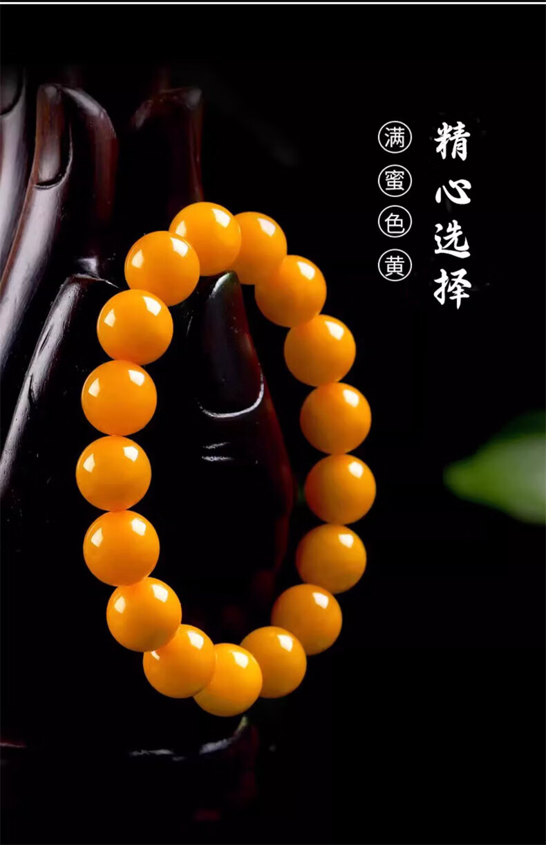Fan Jialun old beeswax bracelet for women full of honey chicken fat yellow amber bracelet for women round beads single circle men's transfer beads jade beads beeswax round beads 8-9MM 21 pieces