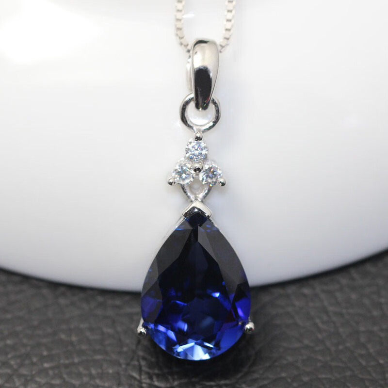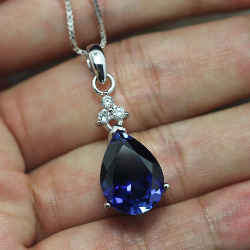 Junshi drop-shaped tanzanite blue gemstone pendant necklace, real silver inlaid with female colored gemstones, tanzanite necklace, white gold (12X16) with chain