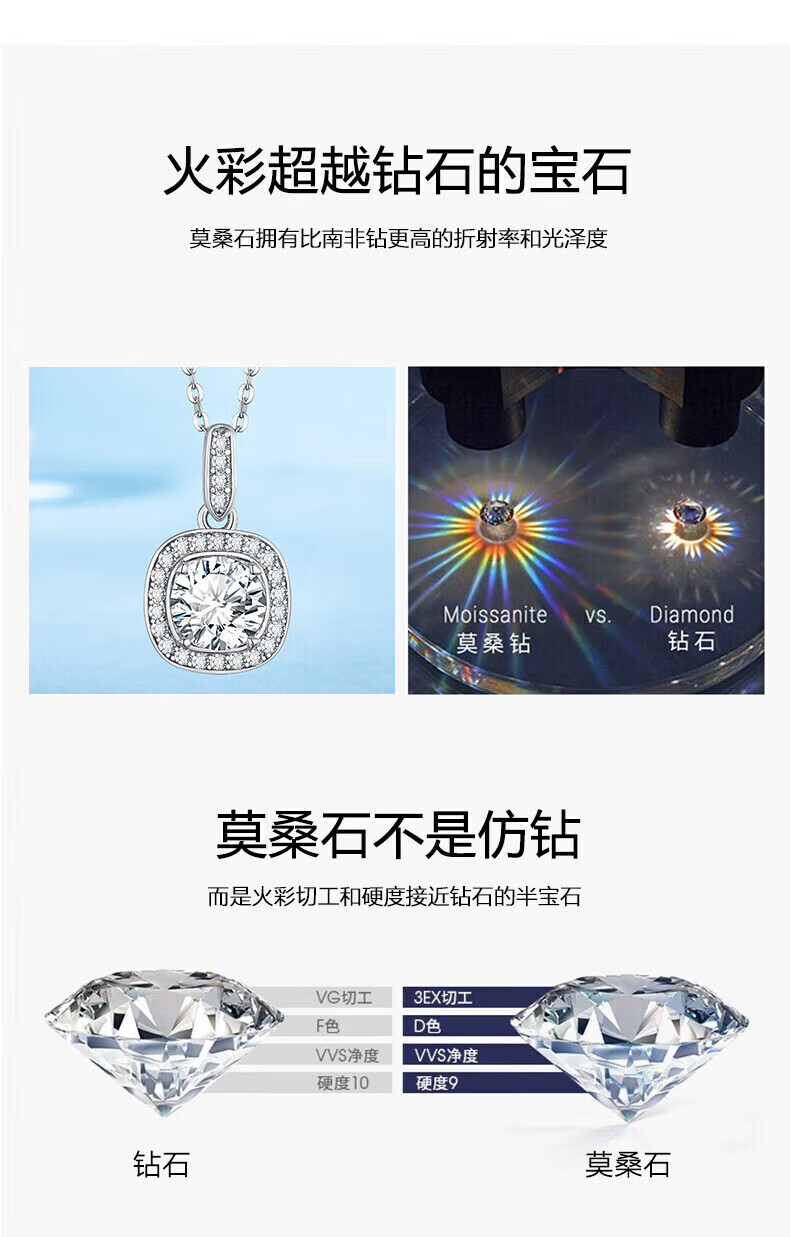 Ji Sifan Light Luxury Brand Fashion Accessories Light Luxury Fashion Women's Moissanite Necklace Clavicle Chain Pendant Jewelry Valentine's Day One Carat Snowflake Necklace Exclusive Gift Box