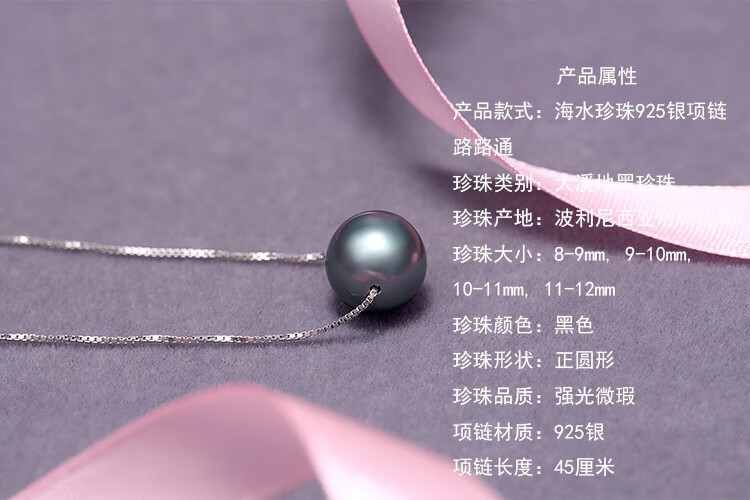 Bhiodha gift black pearl pendant 925 silver necklace Passepartout for girlfriend and mother 90-100mm Tahitian black pearl