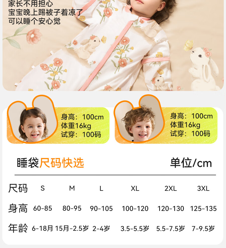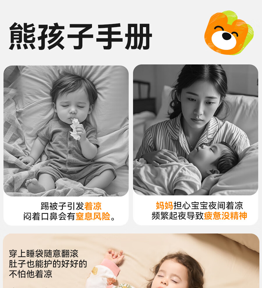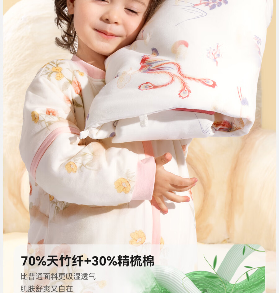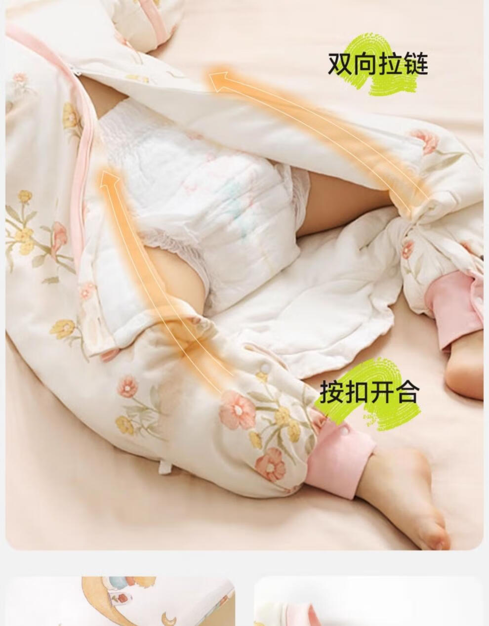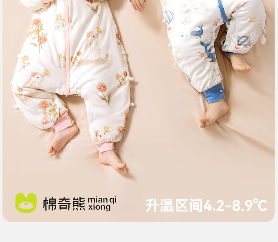 Mianqi Bear Baby Sleeping Bag Spring and Summer Cotton Baby Split Leg Quilt Children's Summer Nightgown Universal for All Seasons Qingzhu Panda-Cotton Skin_ Spring and Autumn Double Layer_ Recommended room temperature 20-26 M size Recommended height 80-95cm Recommended age 15 months-2