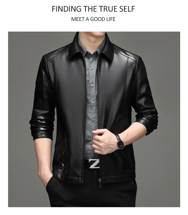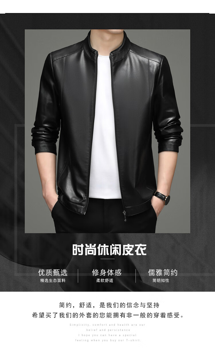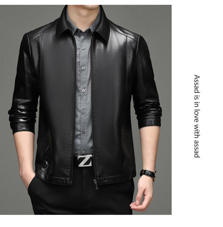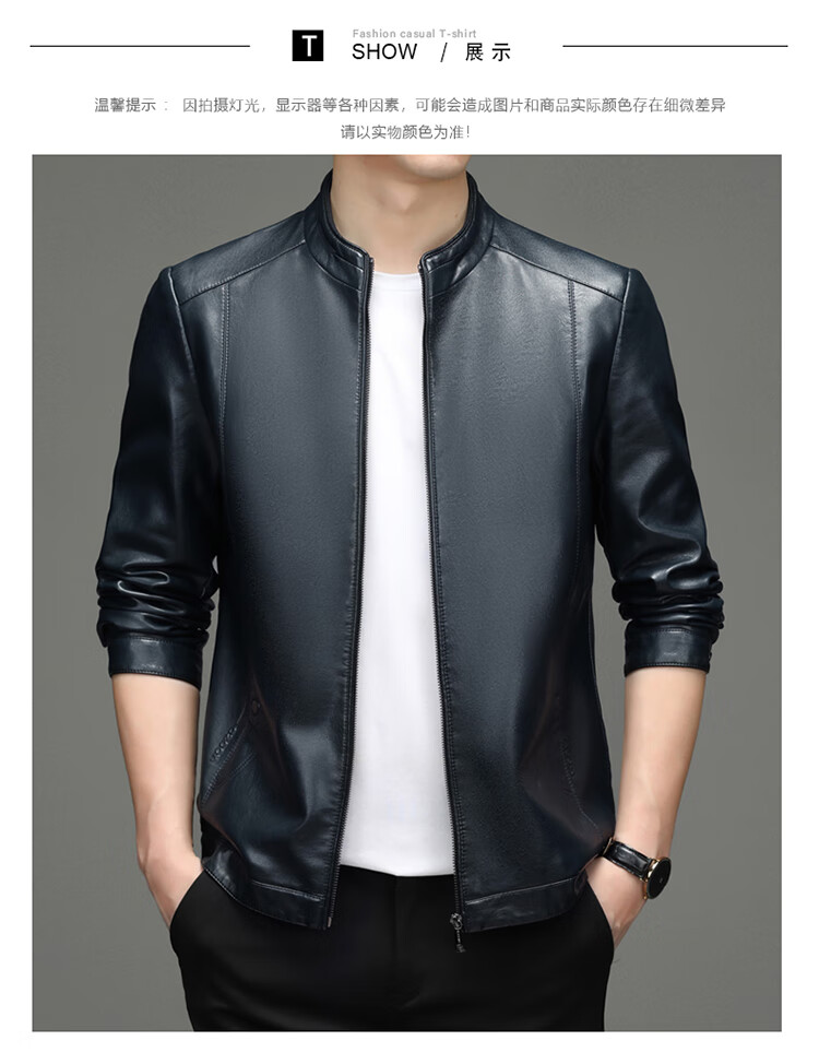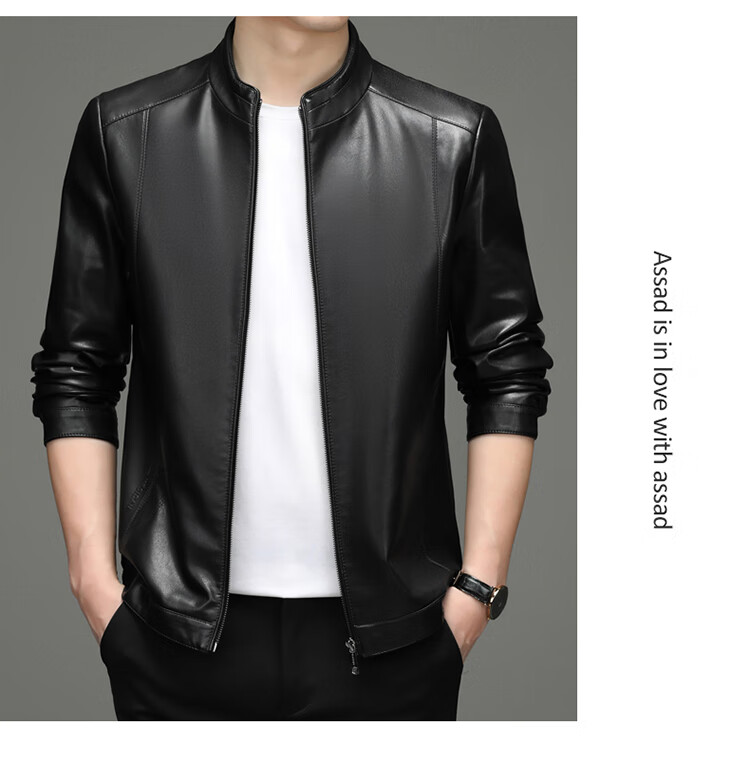 ARMANI EXCHANGE Armani autumn and winter new leather jacket men's father's business casual Haining sheepskin jacket black stand-up collar (single style) M 170 (95-120Jin Jin equals 0.5 kg)